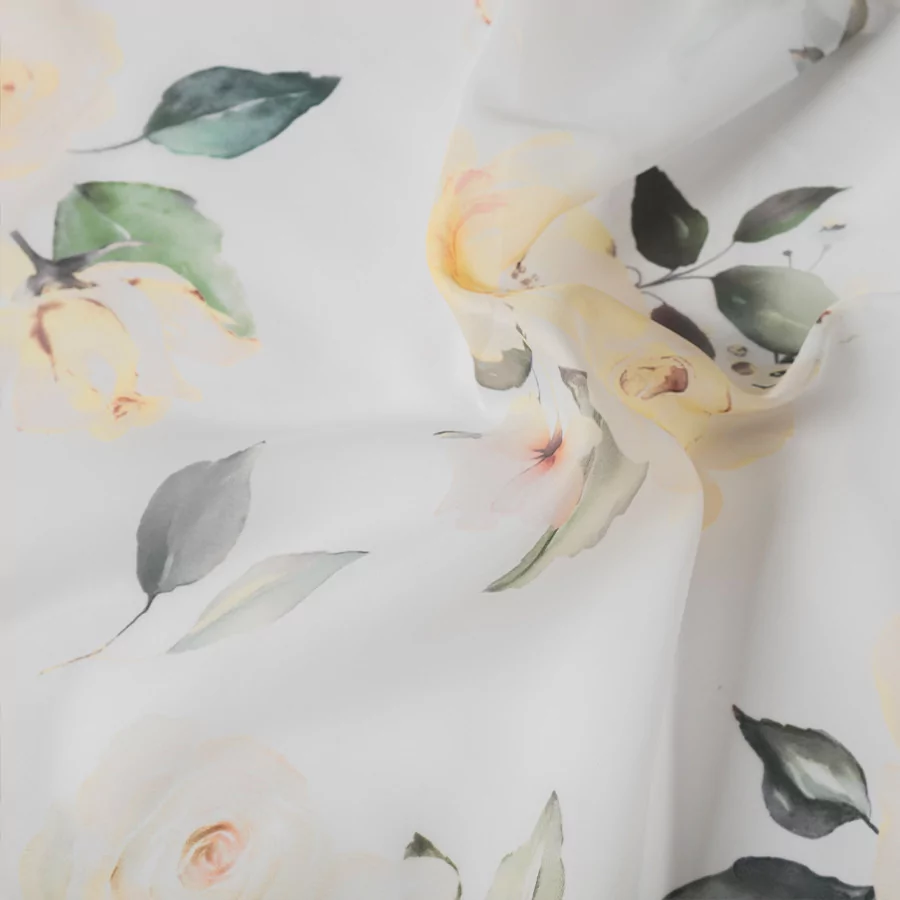 Fantazyjna dzianina, zwana też woalem, to niezwykle lekki, delikatnie połyskujący materiał, który znakomicie się układa – wszystko to sprawia, że tkanina doskonale nadaje się do szycia lambrekinów czy firanek. Tkanina w uniwersalnym, białym kolorze z kolorowym motywem roślinnym, świetnie sprawdzi się nie tylko w nowoczesnych, ale również tradycyjnych wnętrzach. Wystrój okien firankami z tkaniny LANOSA WOAL dopełnią zasłony, poszewki i obrus w takim samym wzorze. Pomyśl, jak rewelacyjnie będzie wyglądało Twoje wnętrze z dekoracjami, które do siebie pasują.