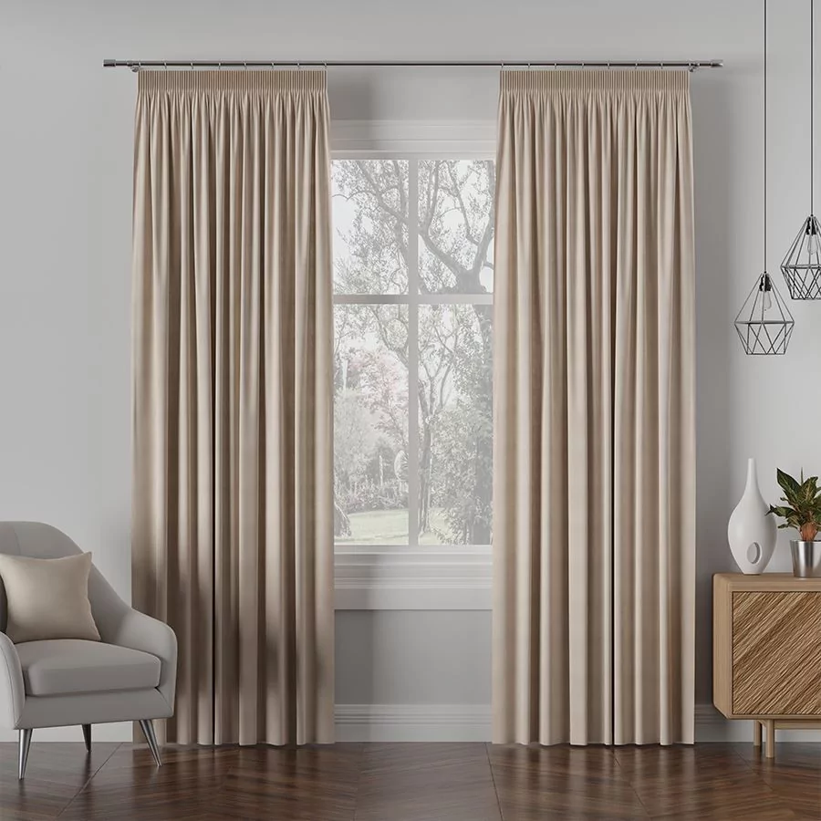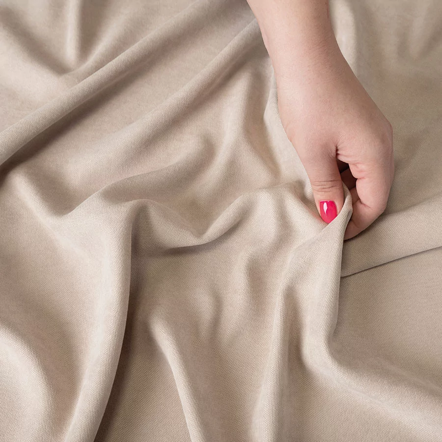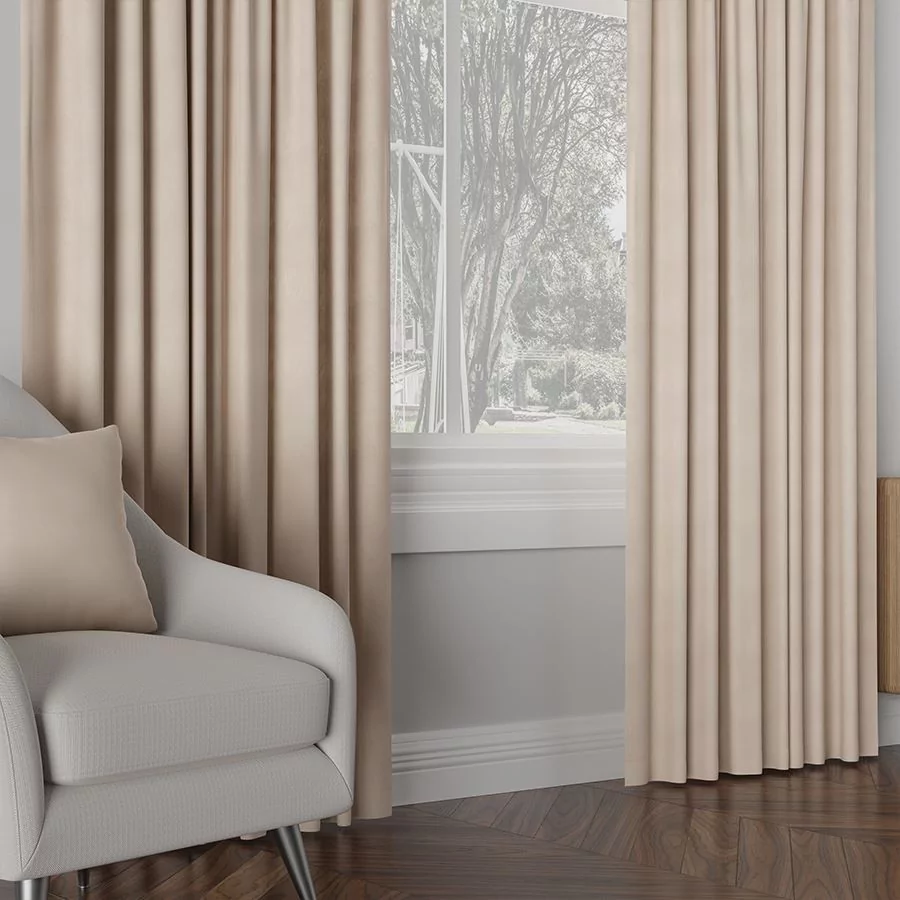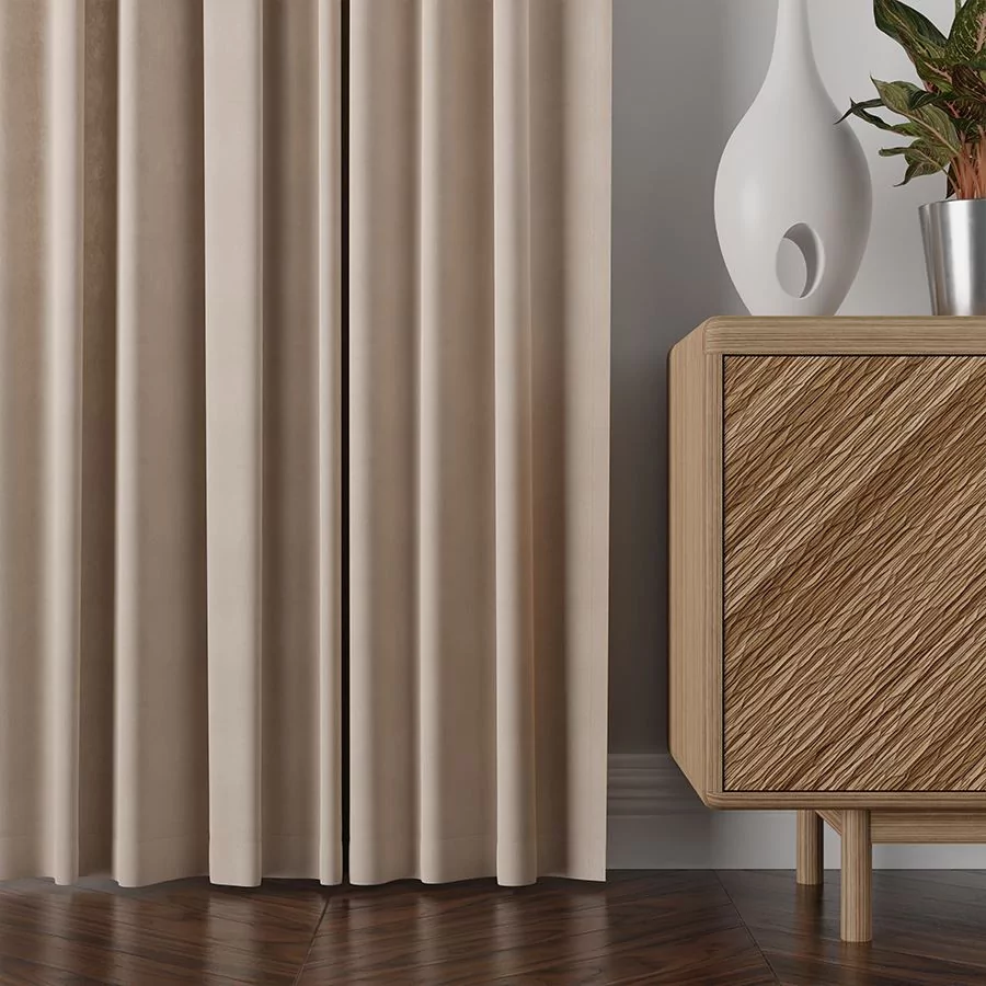 Gładka, miękka, aksamitna w dotyku tkanina dekoracyjna. Doskonale się układa, dlatego jest idealna na zasłony. Wysoka gramatura i gęstość materiału gwarantują dość mocne zaciemnienie. Materiał jest miękki i "lejący", dzięki czemu wspaniale się układa, tworząc piękną dekorację.