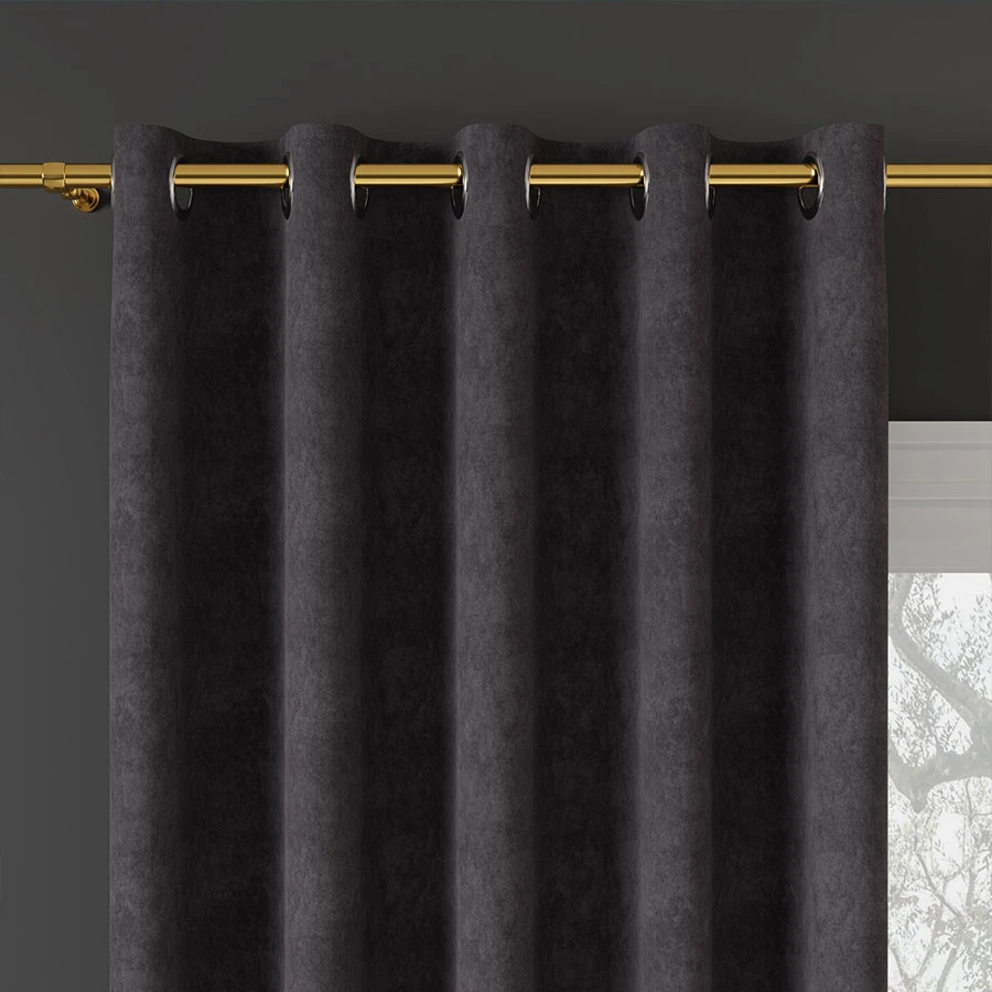 Gotowa do zawieszenia zasłona na przelotkach z gładkiej, miękkiej, aksamitnej w dotyku tkaniny dekoracyjnej.