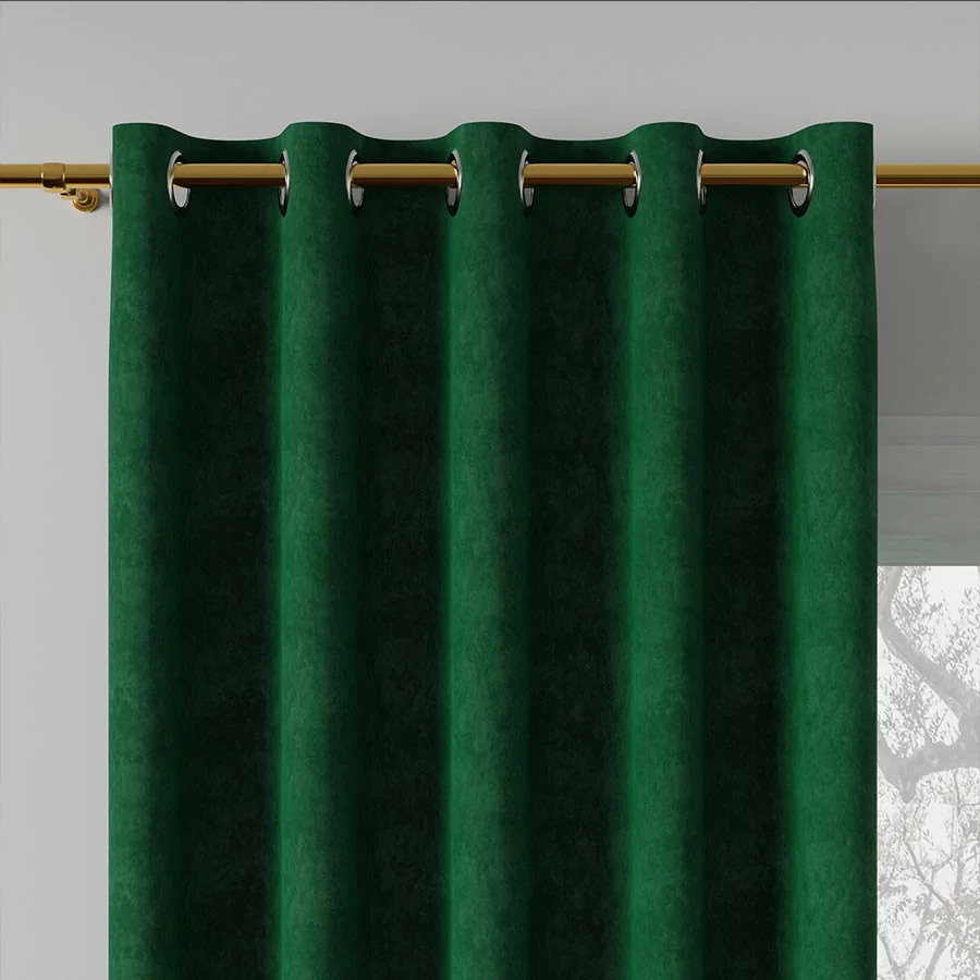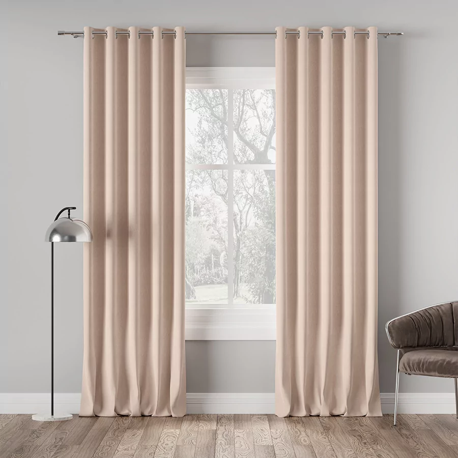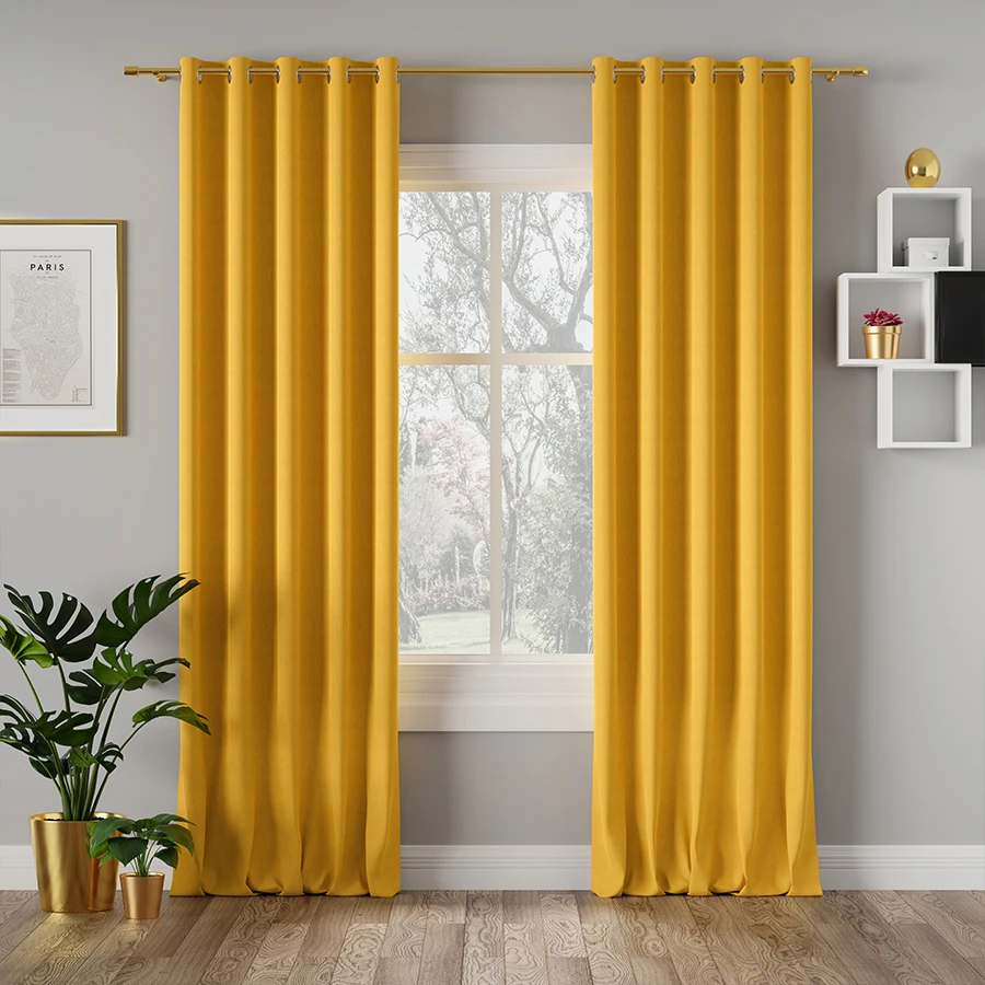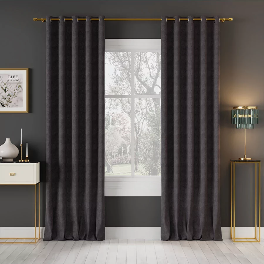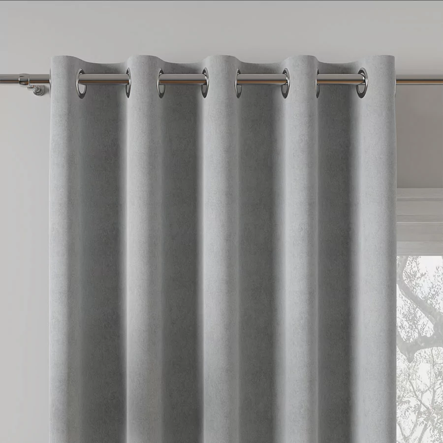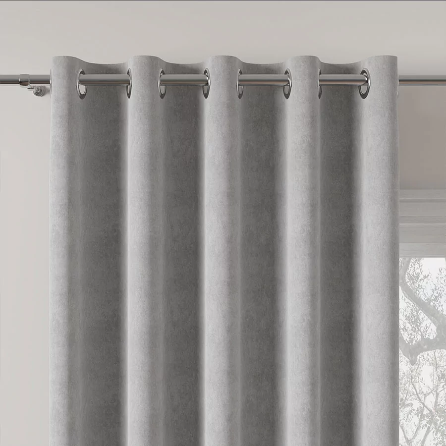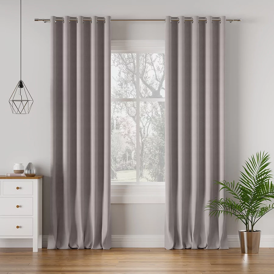 Gotowa do zawieszenia zasłona na przelotkach z gładkiej, miękkiej, aksamitnej w dotyku tkaniny dekoracyjnej.