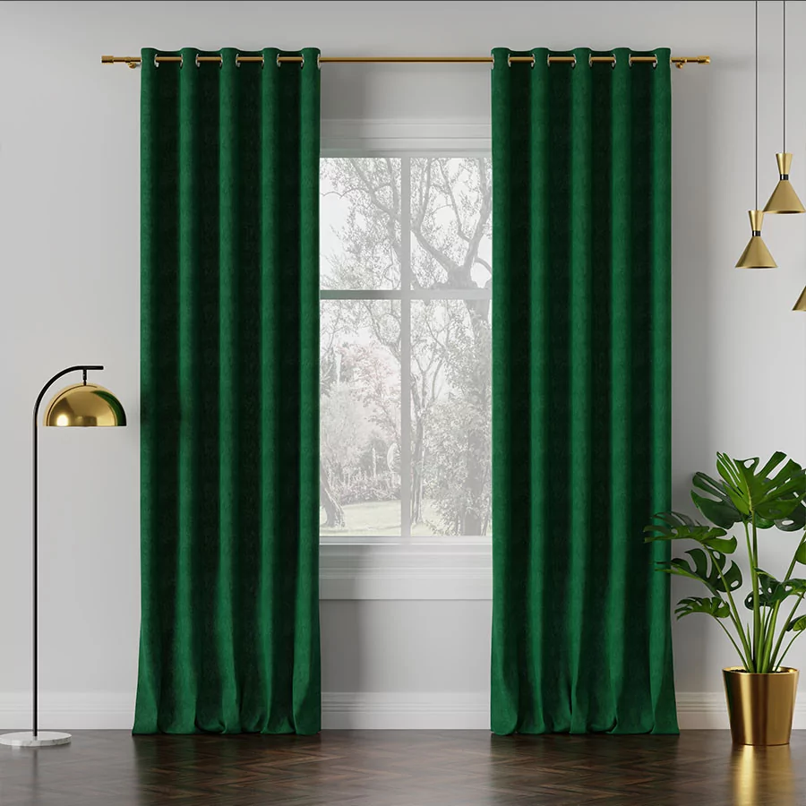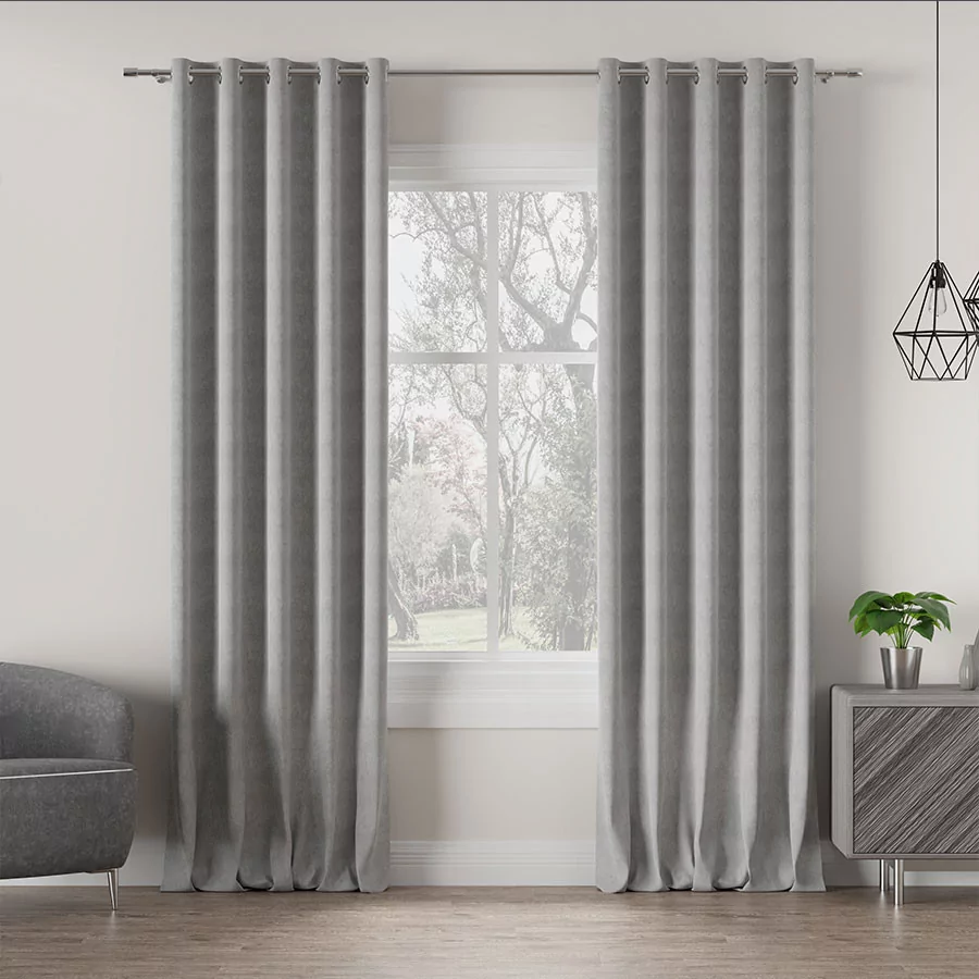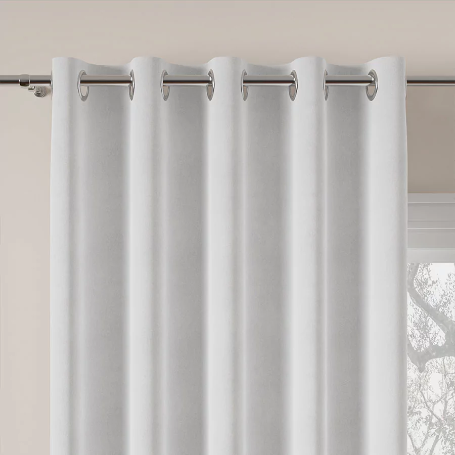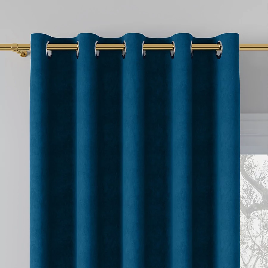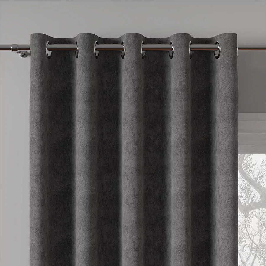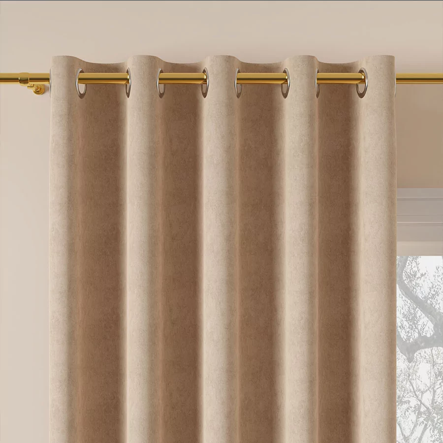 Gotowa do zawieszenia zasłona na przelotkach z gładkiej, miękkiej, aksamitnej w dotyku tkaniny dekoracyjnej.