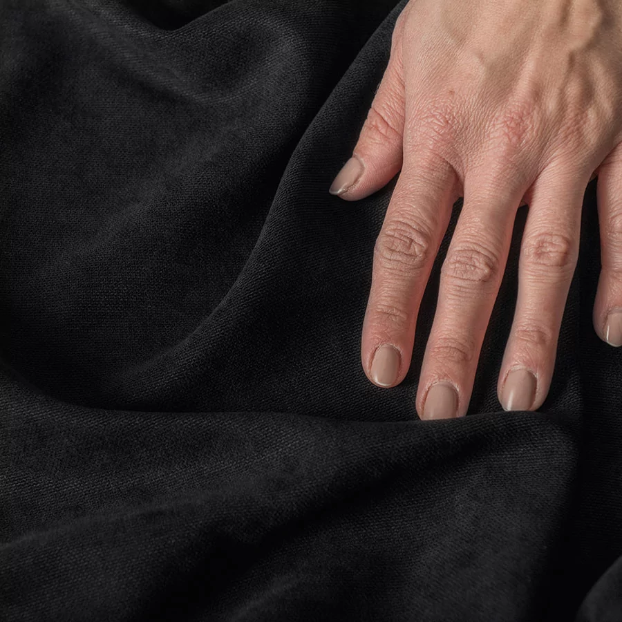 Gładka, miękka, aksamitna w dotyku tkanina dekoracyjna. Wysoka gramatura i gęstość materiału gwarantują dość mocne zaciemnienie. Materiał jest miękki i "lejący", dzięki czemu wspaniale się układa, tworząc piękną dekorację.