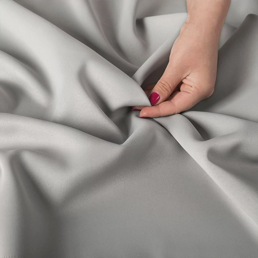 Tkanina dekoracyjna zaciemniająca, dwustronna. Miękki, velvetowy meszek nadaje jej ciekawą strukturę.