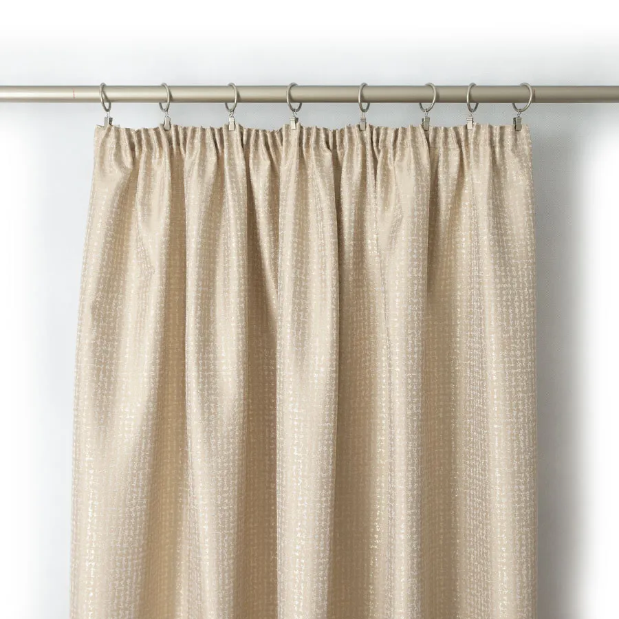Jednobarwna tkanina zasłonowa z delikatnym, lekko połyskującym żakardowym wzorem, o gęstym, satynowym splocie, wyprodukowana z najwyższej jakości przędzy. Doskonała tkanina do szycia zasłon i obrusów, jak również innych dekoracji tekstylnych, takich jak na przykład poszewki, pokrowce itp. Materiał jest lekko sztywny i dobrze się układa. Zasłony wykonane z tego materiału będą stanowić doskonałą dekorację niemal każdego wnętrza.