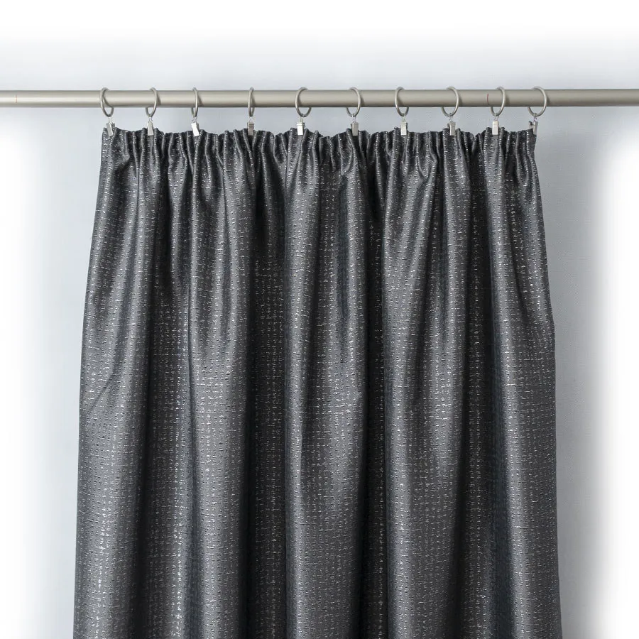 Jednobarwna tkanina zasłonowa z delikatnym, lekko połyskującym żakardowym wzorem, o gęstym, satynowym splocie, wyprodukowana z najwyższej jakości przędzy. Doskonała tkanina do szycia zasłon i obrusów, jak również innych dekoracji tekstylnych, takich jak na przykład poszewki, pokrowce itp. Materiał jest lekko sztywny i dobrze się układa. Zasłony wykonane z tego materiału będą stanowić doskonałą dekorację niemal każdego wnętrza.