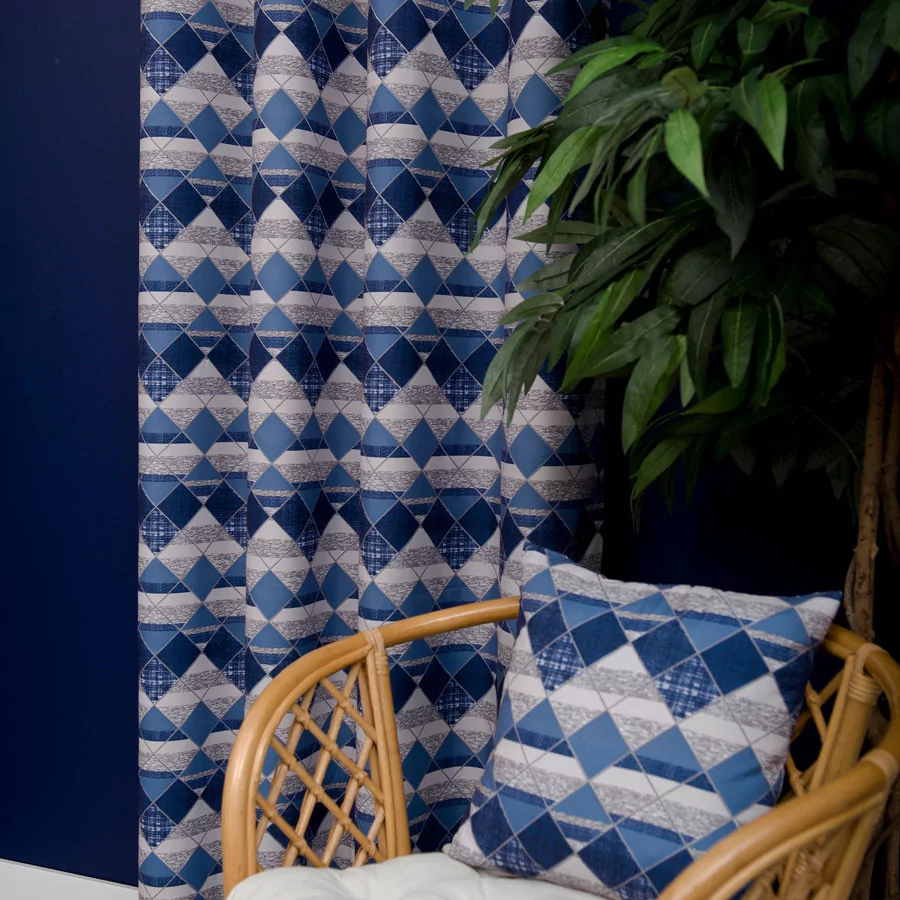 Nowoczesny, industrialny wzór z mocnym akcentem różnych odcieni granatu wpasuje się w każdą przestrzeń.