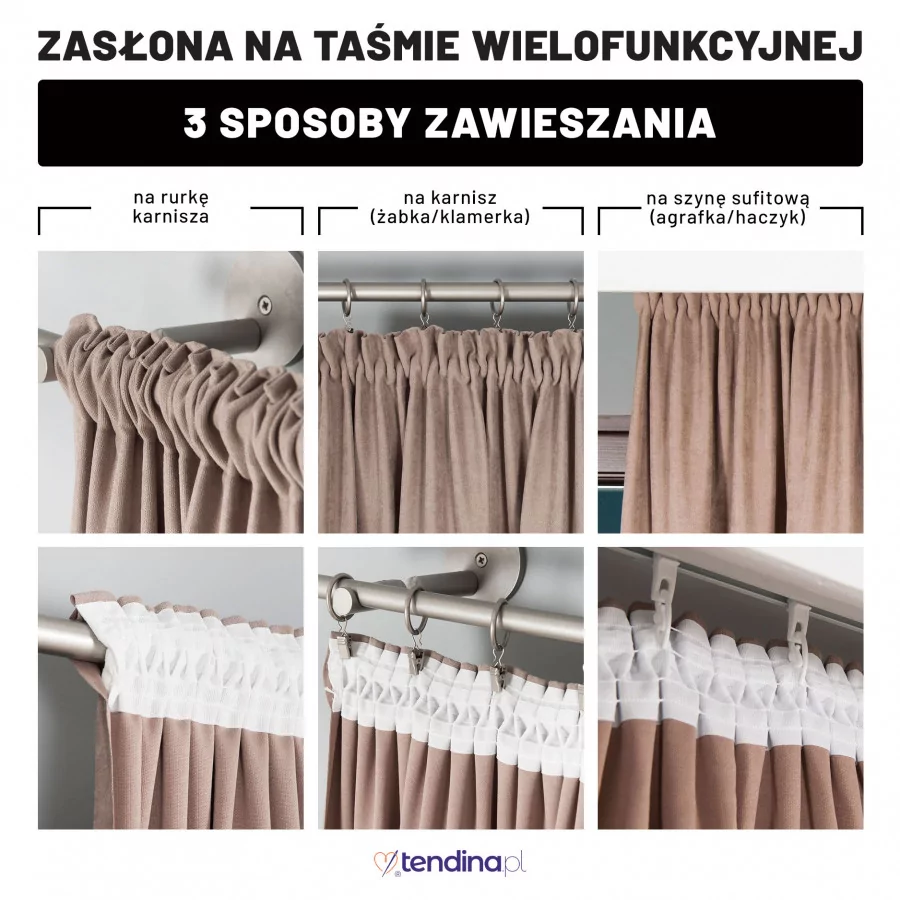 Podany rozmiar: szerokość (przed marszczeniem) x wysokość.