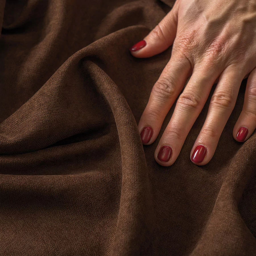 Gładka, miękka, aksamitna w dotyku tkanina dekoracyjna. Wysoka gramatura i gęstość materiału gwarantują dość mocne zaciemnienie. Materiał jest miękki i "lejący", dzięki czemu wspaniale się układa, tworząc piękną dekorację.