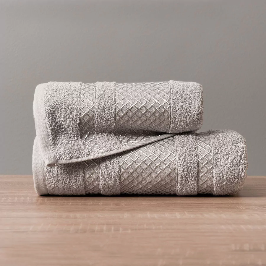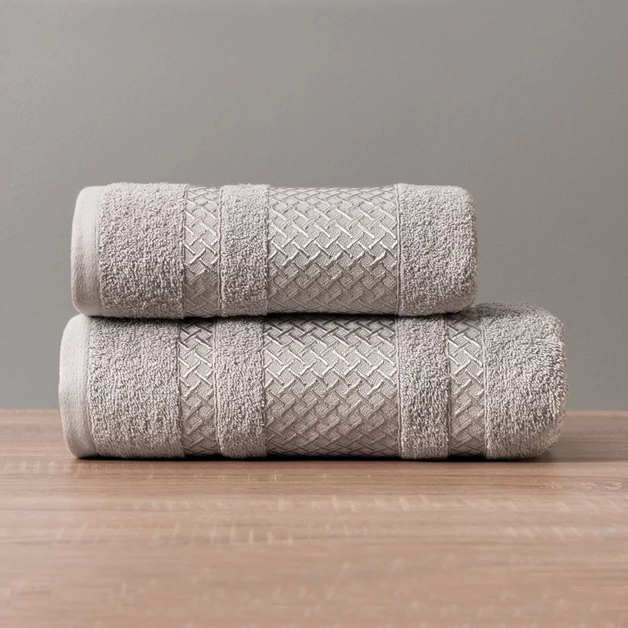 Przyglądając się designowi ręcznika kąpielowego Lionel, można odnieść wrażenie, że gładka struktura i wzór doskonale się uzupełniają. Główny element z frotte to niezwykle puszysty, przytulny materiał bawełniany. Z kolei kratkowany złoty wzór wykonany jest z włókna poliestrowego. Na ręczniku widoczne są dwa węższe i jeden szeroki pas z taką strukturą. Tworzy to wrażenie trójwymiarowości i doskonale się prezentuje. Świetnie współgra z połyskującymi złotymi elementami we wnętrzu, tworząc monochromatyczne połączenie w stylu glamour. ęcznik dostępny jest w wielu kolorach i rozmiarach.