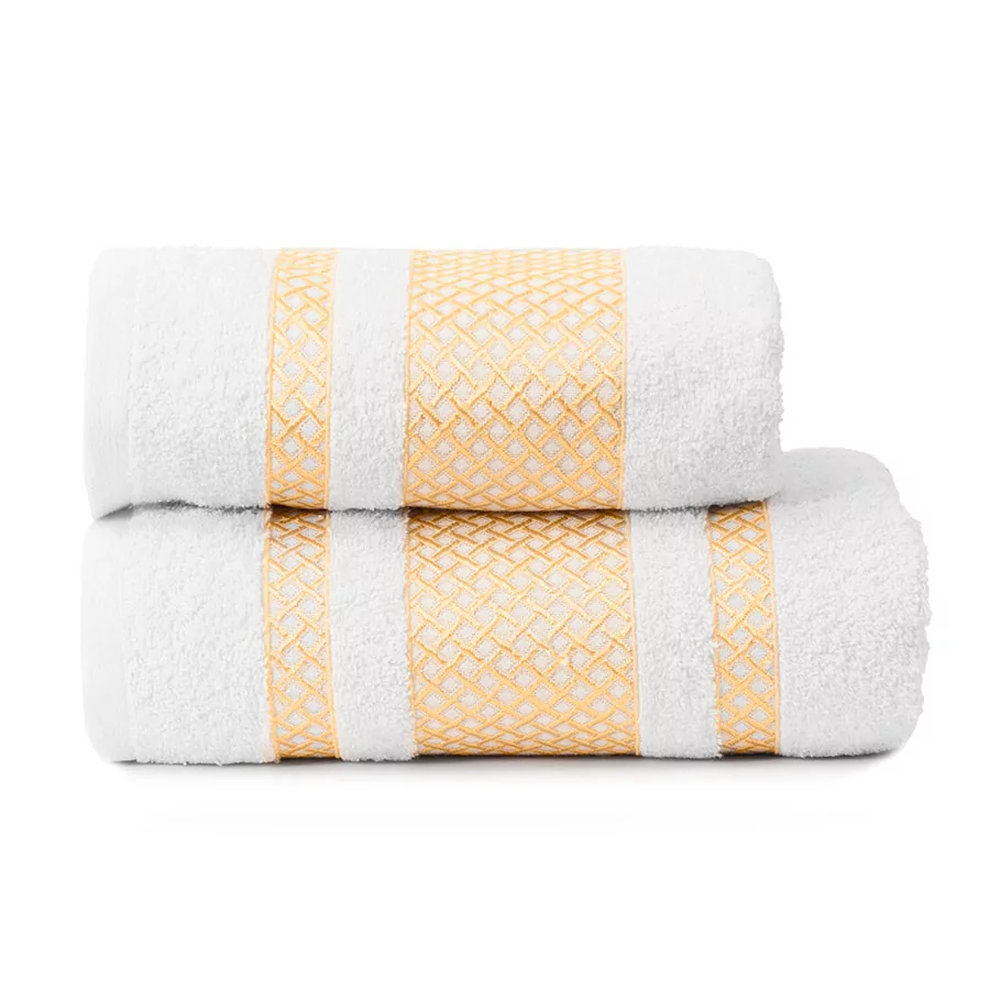 Szukasz funkcjonalnego ręcznika kąpielowego? Wybierz ręcznik Lionel biało-złoty i ciesz się połączeniem komfortu i designu na najwyższym poziomie.