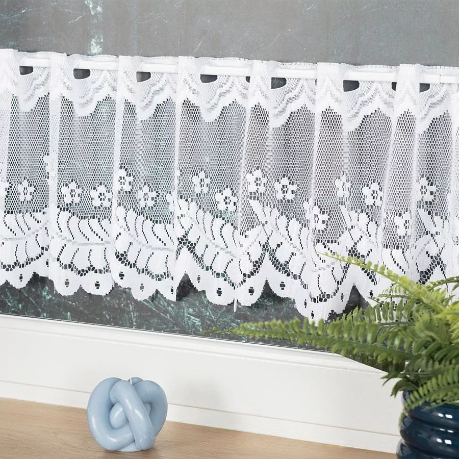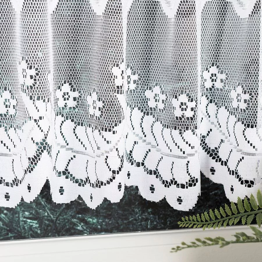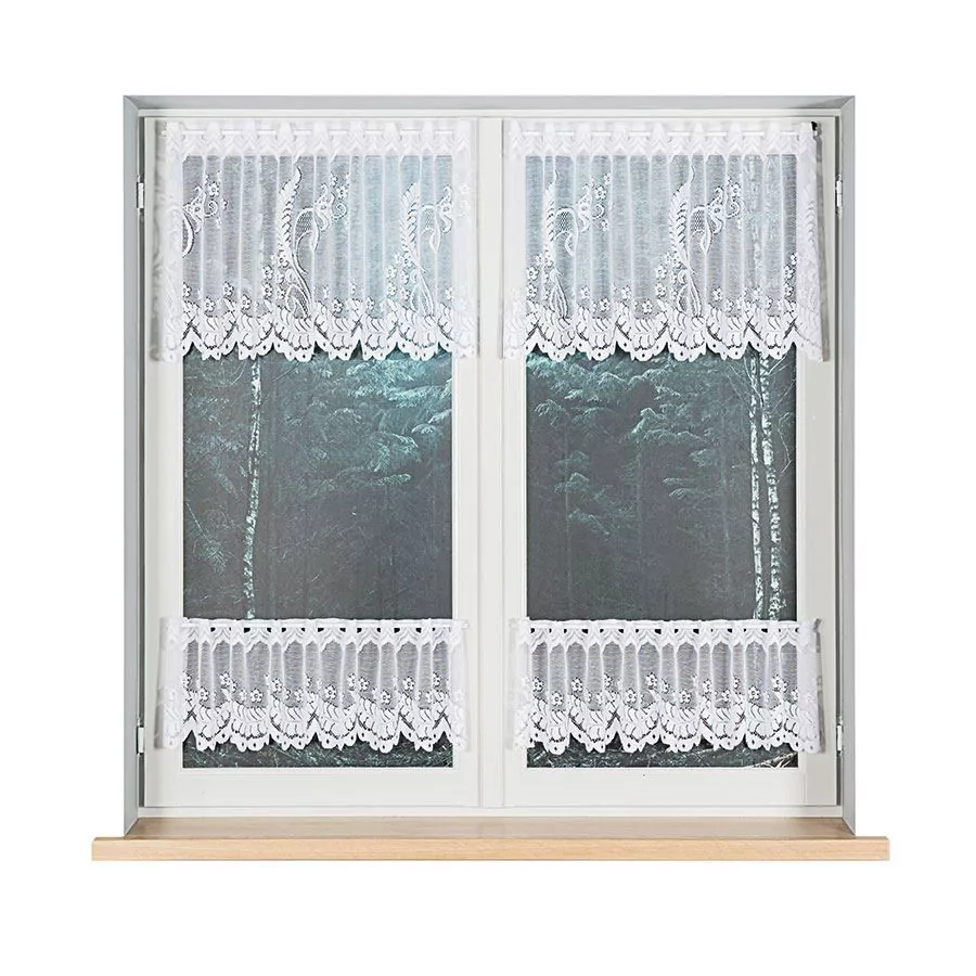 Firanka żakardowa dostępna w metrażu, w kolorze białym z pięknym ornamentem roślinnym. Wiele wysokości do wyboru, szerokość dowolna, dzięki czemu dopasujesz ją dokładnie do swojego okna. Firankę możesz zamówić z usługą szycia w naszej profesjonalnej szwalni - wybierz wykończenie, podaj wymiary, a otrzymasz uszytą i gotową do zawieszenia firankę. Wzór wykonany z najwyższej jakość przędzy żakardowej idealnie wkomponuje się w aranżację wnętrz nowoczesnych jak i tych urządzonych w klasycznym stylu. Firanka pięknie się układa, nie wymaga prasowania i można go prać w pralce w niskiej temperaturze. Cechuje ją dobra przepuszczalność powietrza i promieni słonecznych.