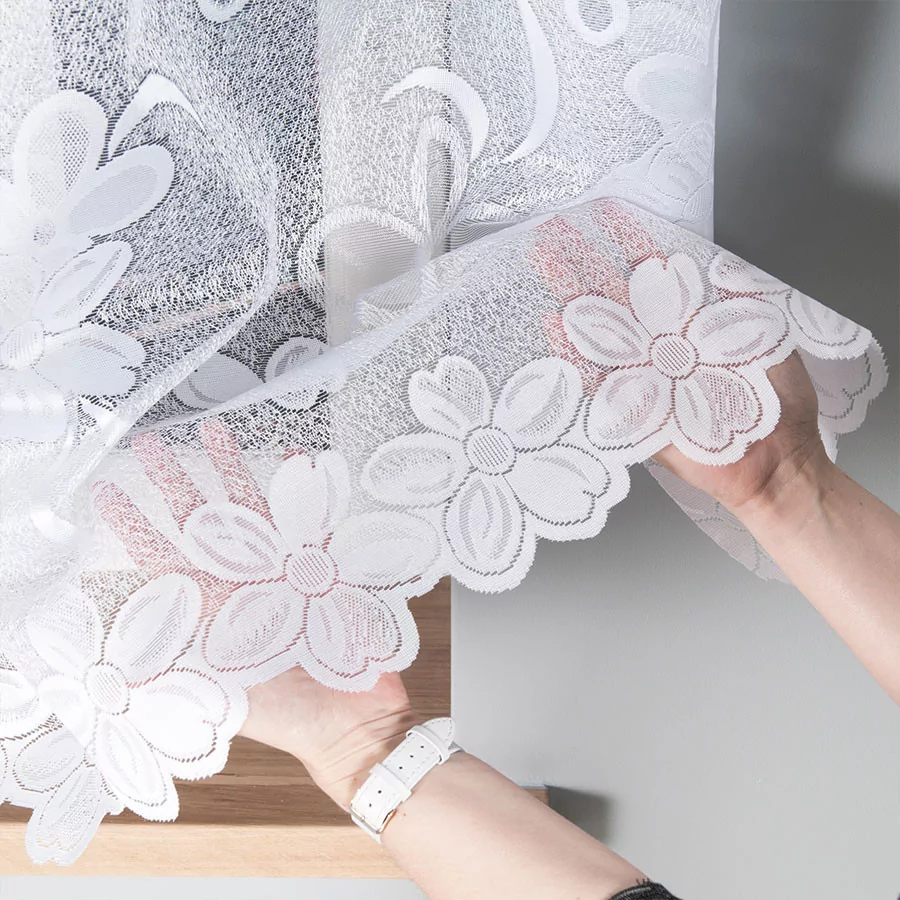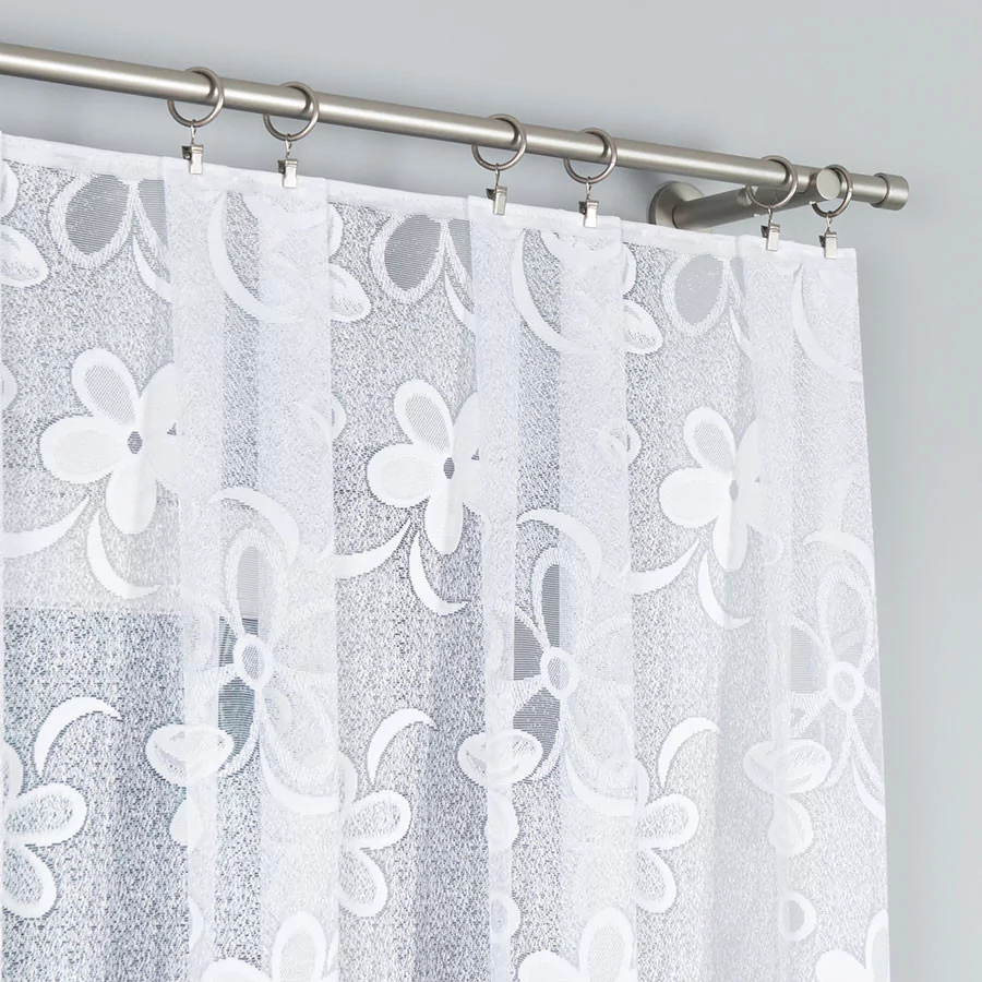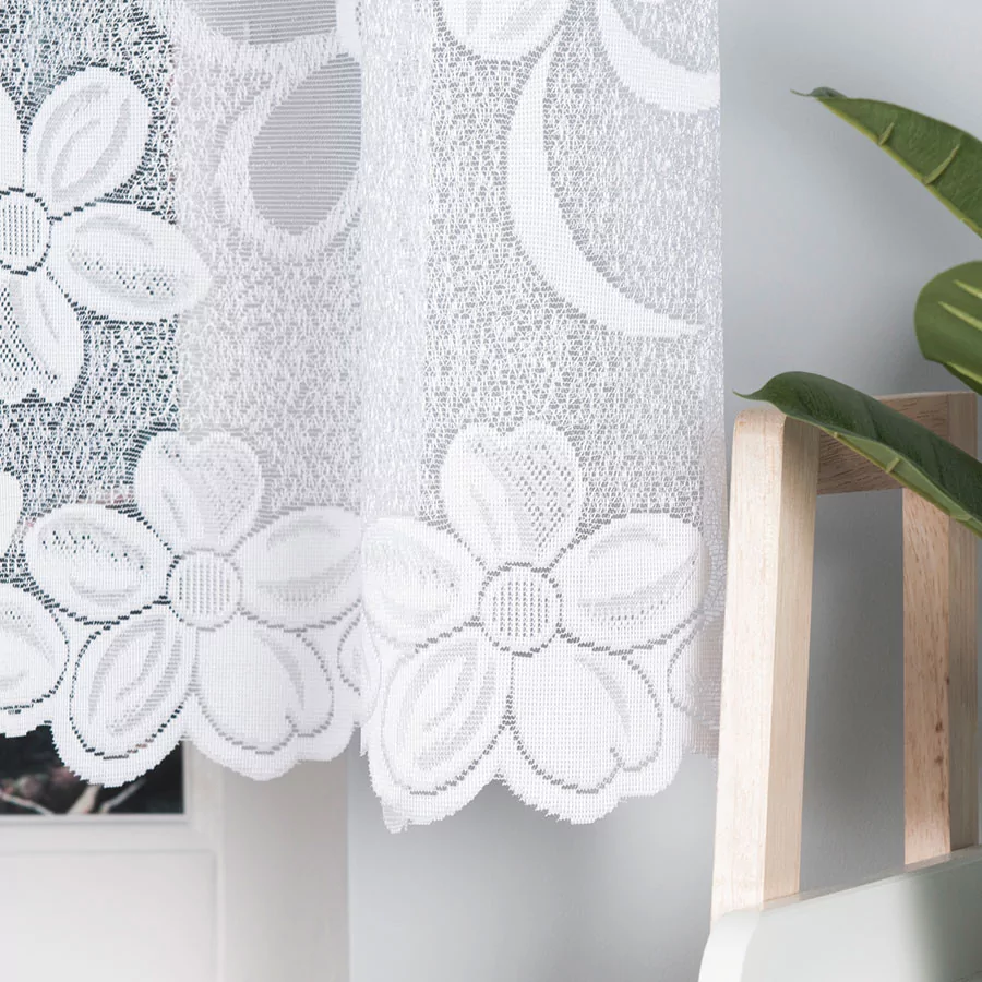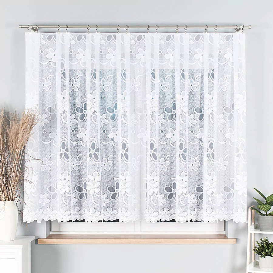 Firanka żakardowa dostępna w metrażu z gęstym motywem roślinnym. Wiele wysokości o wyboru, szerokość dowolna, dzięki czemu dopasujesz ją dokładnie do swojego okna. Firankę możesz zamówić z usługą szycia w naszej profesjonalnej szwalni - wybierz wykończenie, podaj wymiary, a otrzymasz uszytą i gotową do zawieszenia firankę. Najwyższa jakość przędzy żakardowej idealnie wkomponuje się w aranżację wnętrz nowoczesnych jak i tych urządzonych w klasycznym stylu. Firanka pięknie się układa, nie wymaga prasowania i można ją prać w pralce w niskiej temperaturze. Cechuje ją dobra przepuszczalność powietrza i promieni słonecznych.