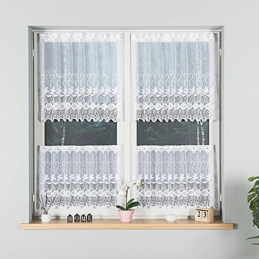 Firanka żakardowa dostępna w metrażu. Wiele wysokości o wyboru, szerokość dowolna, dzięki czemu dopasujesz ją dokładnie do swojego okna. Firankę możesz zamówić z usługą szycia w naszej profesjonalnej szwalni - wybierz wykończenie, podaj wymiary, a otrzymasz uszytą i gotową do zawieszenia firankę. Najwyższa jakość przędzy żakardowej idealnie wkomponuje się w aranżację wnętrz nowoczesnych jak i tych urządzonych w klasycznym stylu. Firanka pięknie się układa, nie wymaga prasowania i można ją prać w pralce w niskiej temperaturze. Cechuje ją dobra przepuszczalność powietrza i promieni słonecznych.
