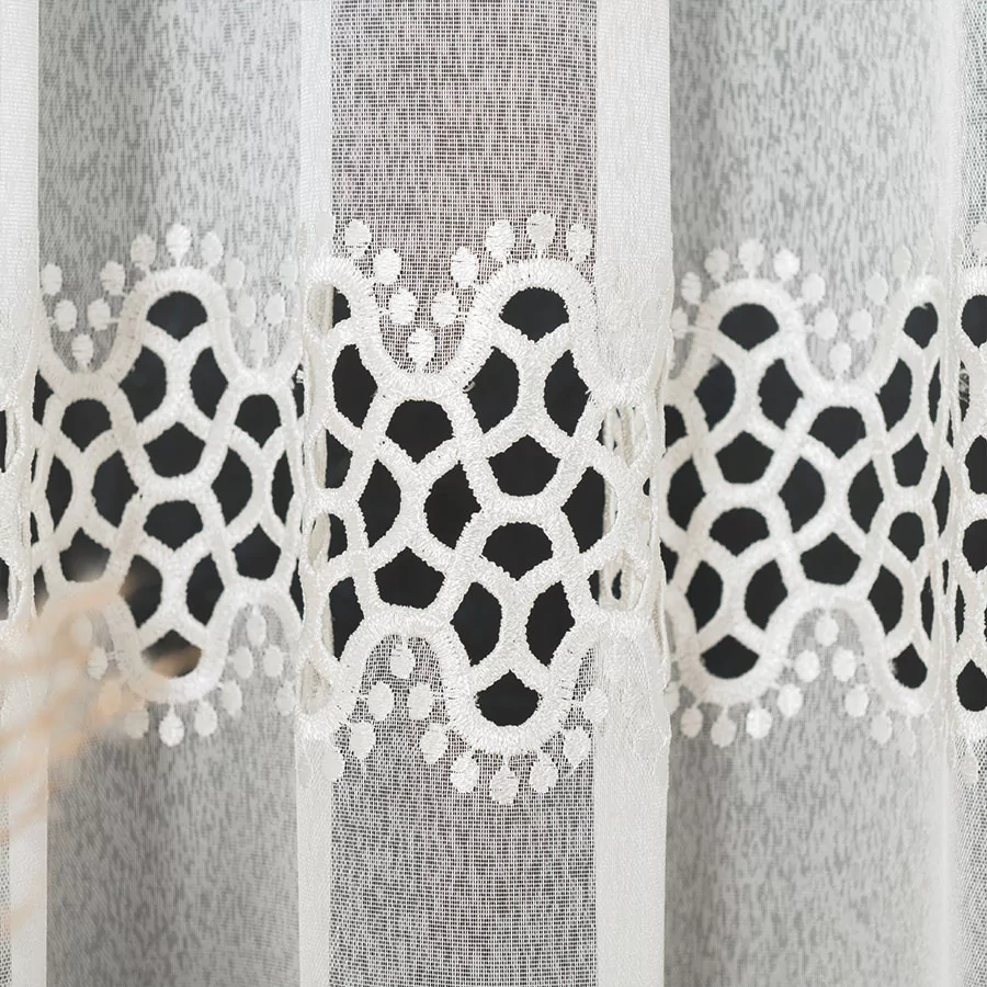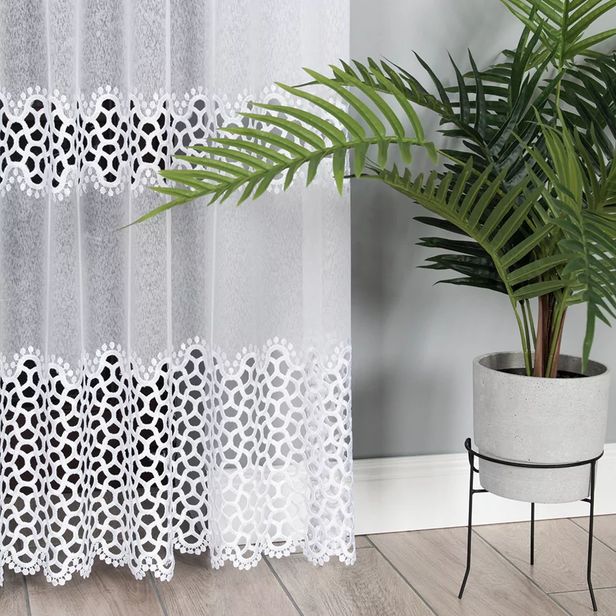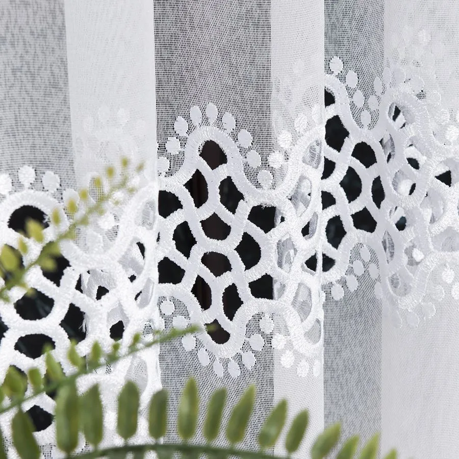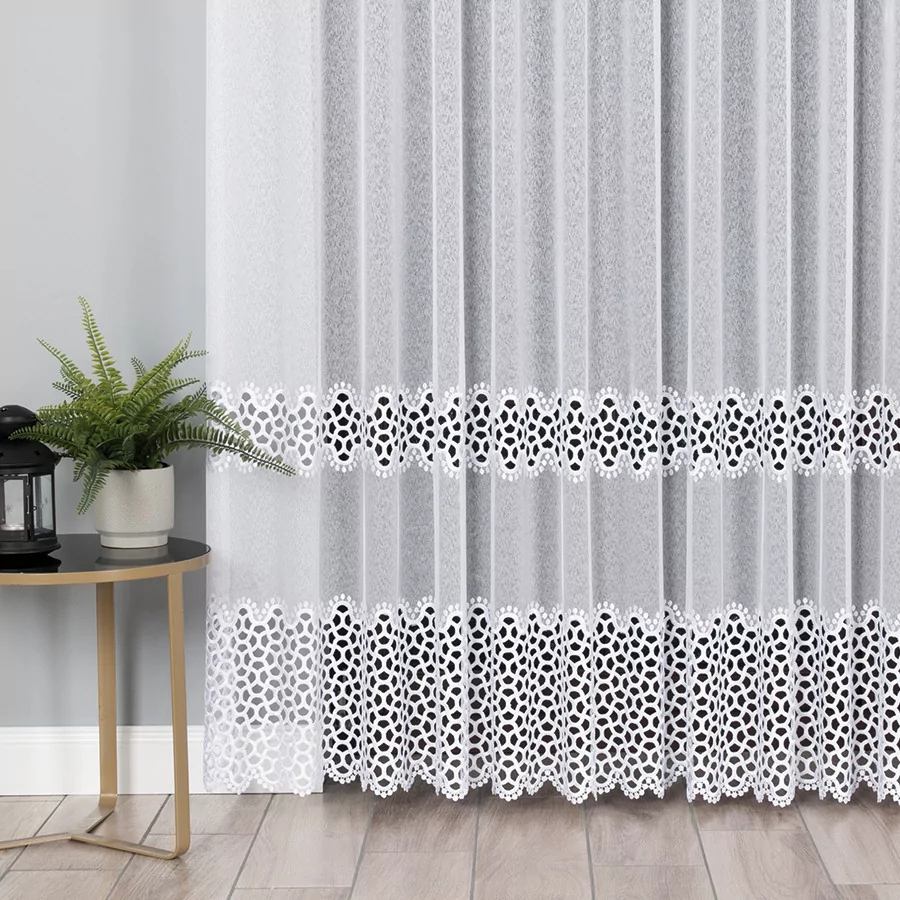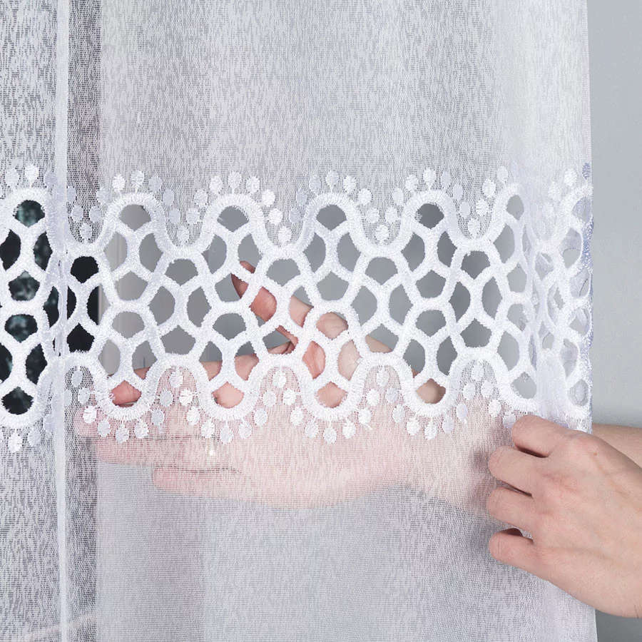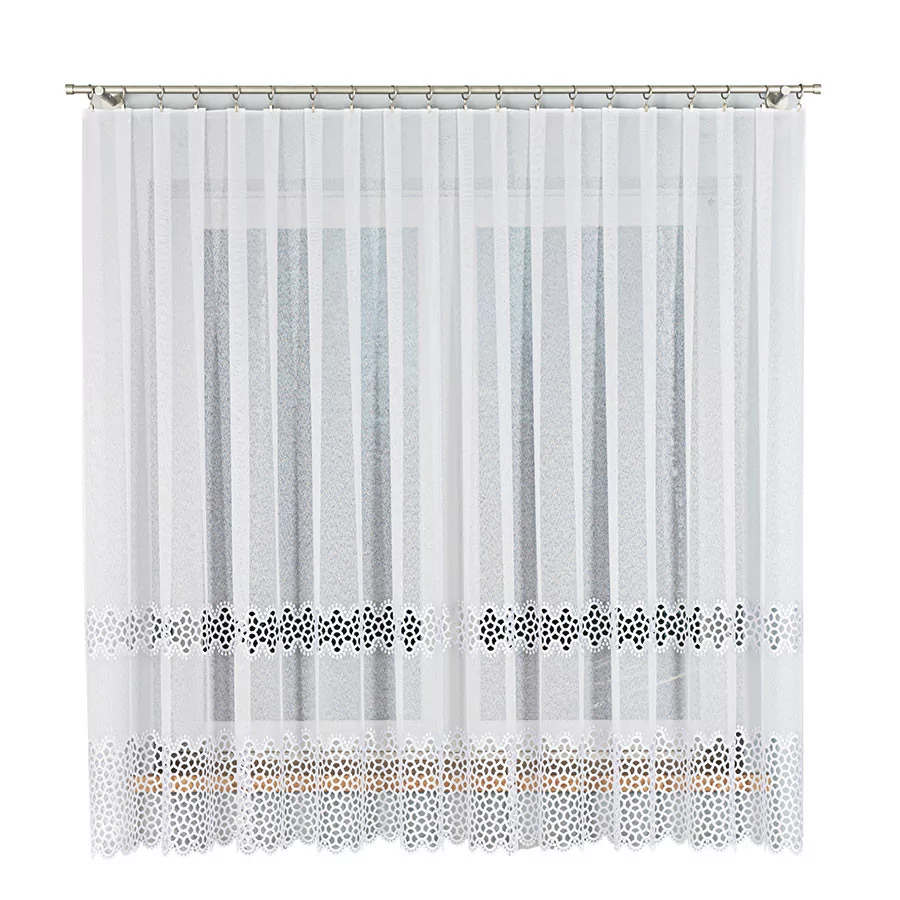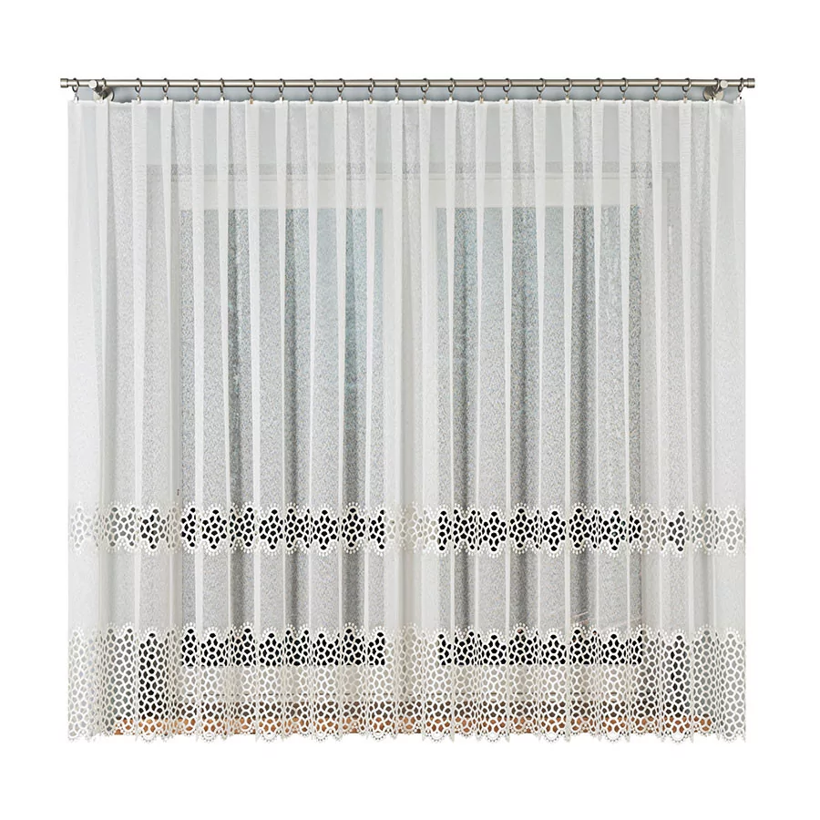 Poznaj naszą propozycję firanki metrażowej z aplikacją gipiurową. Wzór dostępny jest w kilku wysokościach, szerokość natomiast jest dowolna, dzięki czemu możemy uszyć firankę dopasowaną do Twoich potrzeb. Firanka została wykonana na delikatnym podkładzie z markizety. Pięknie się układa. Prosty i klasyczny akcent dekoracyjny z gipiurowymi wstawkami doda ciekawego charakteru i stylu w naszych wnętrzach. Tkaninę cechuje niezwykła lekkość i zwiewność.