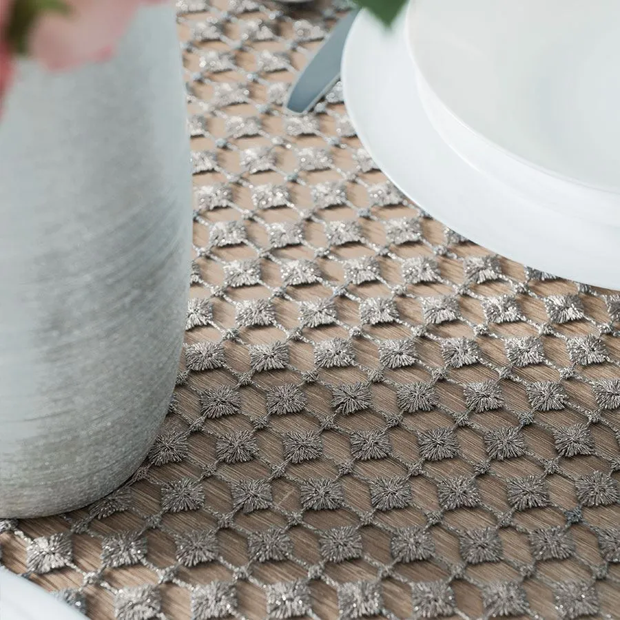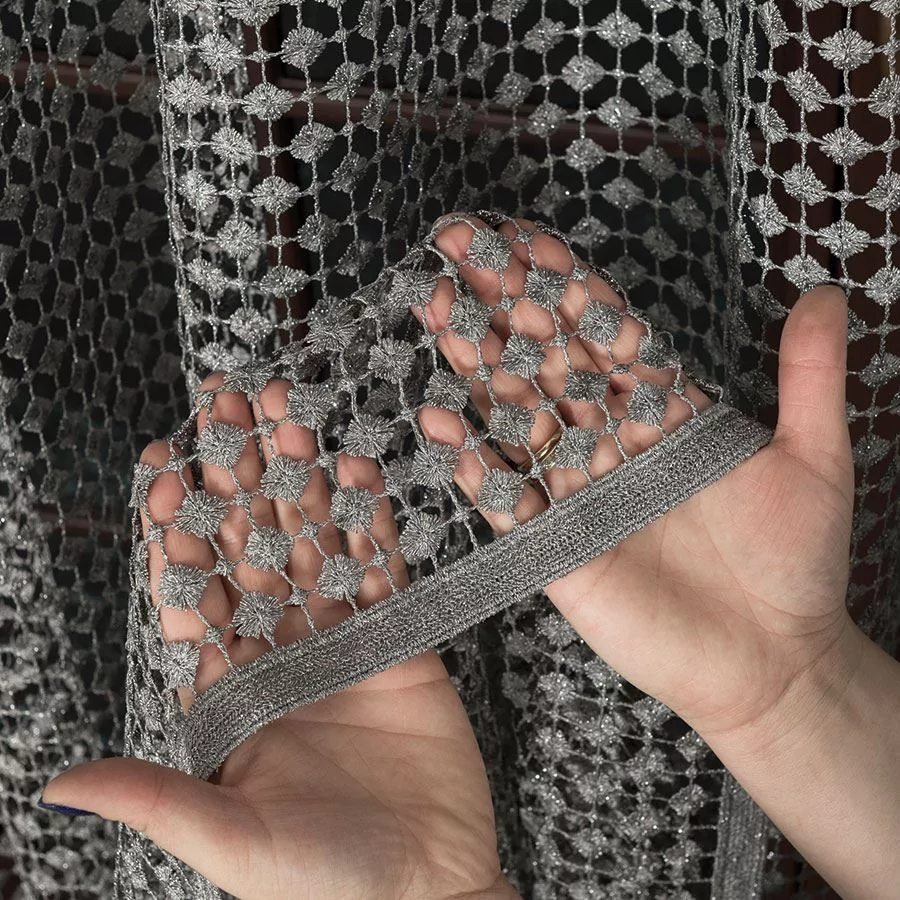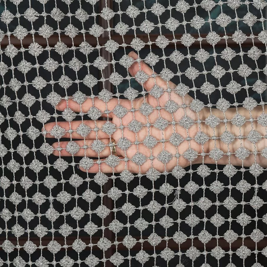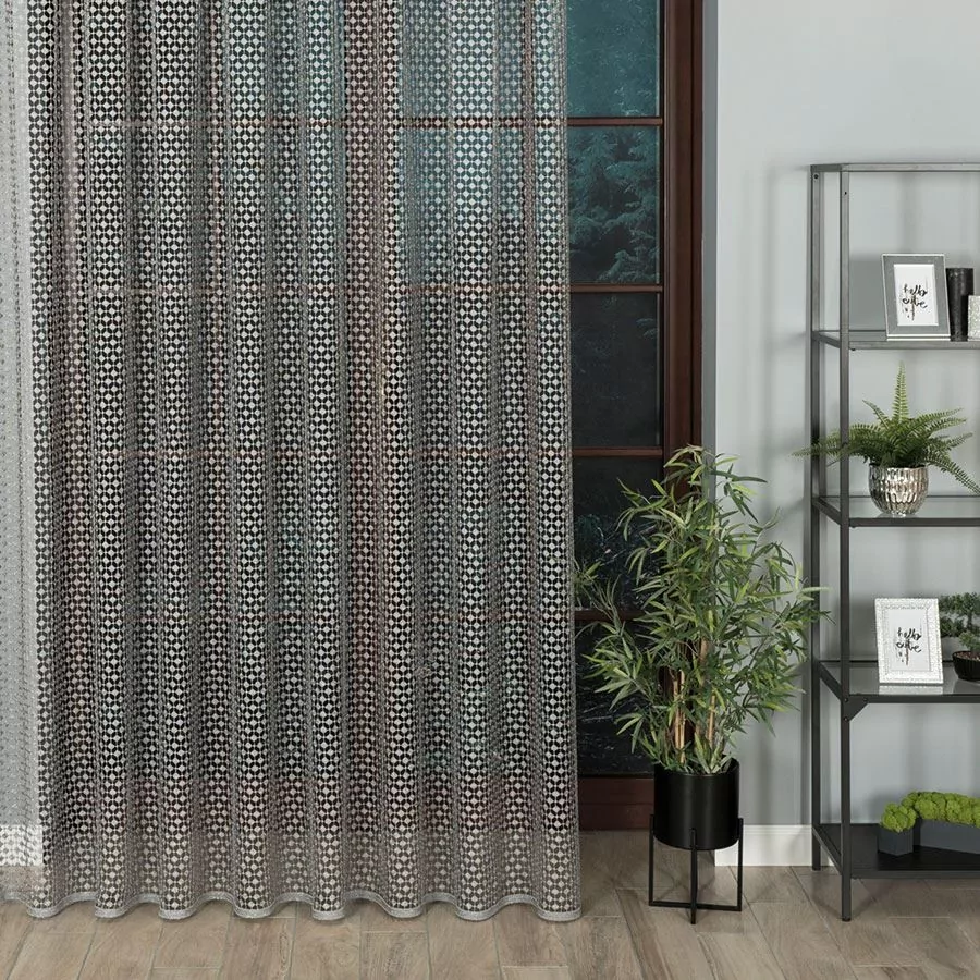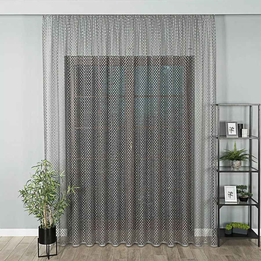 Bez wątpienia gipiura to materiał, który zachwyca swoją dekoracyjną strukturą. Mocne nitki, tworzą ozdobne sploty i wzory. W przypadku firanki metrażowej 061757 jest to 100% poliester, który jest trwały, ma mocny splot i jest odporny na uszkodzenia. Warto podkreślić, że żakard to materiał łatwy w pielęgnacji. Ponadto po praniu nie ma konieczności prasowania firany. Wystarczy drobne zagniecenia wygładzić parownicą. Materiał nie jest podatny na zgniecenia, co jest niewątpliwą zaletą. Bez wątpienia kolejnym atutem jest połyskująca struktura. Wszystko dzięki użytym nitkom z włókna poliestrowego.