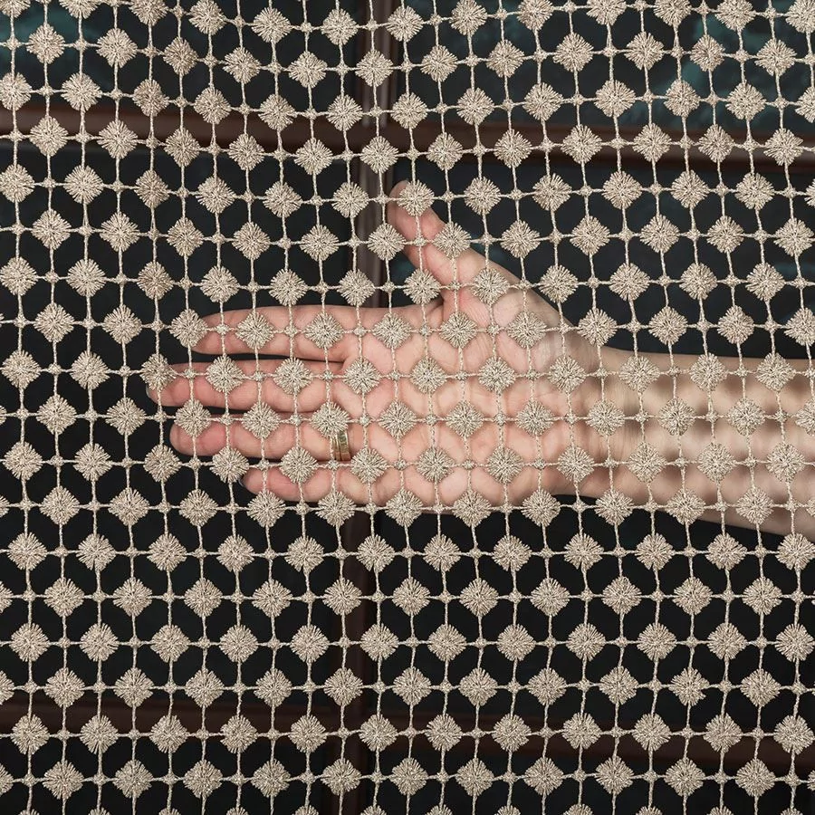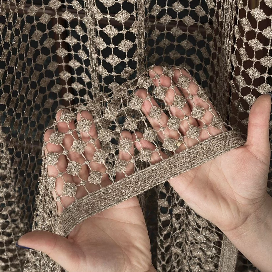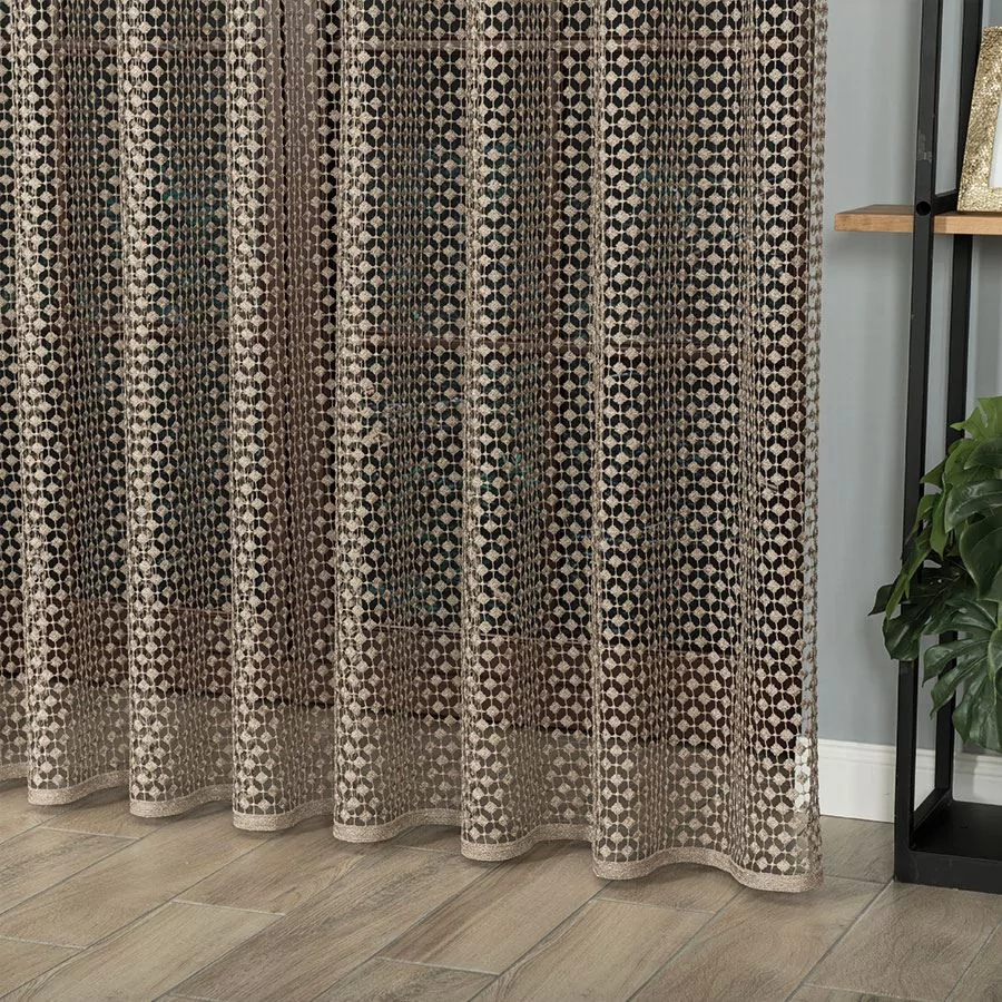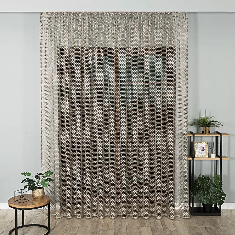 Bez wątpienia gipiura to materiał, który zachwyca swoją dekoracyjną strukturą. Mocne nitki, tworzą ozdobne sploty i wzory. W przypadku firanki metrażowej 061757 jest to 100% poliester, który jest trwały, ma mocny splot i jest odporny na uszkodzenia. Warto podkreślić, że żakard to materiał łatwy w pielęgnacji. Ponadto po praniu nie ma konieczności prasowania firany. Wystarczy drobne zagniecenia wygładzić parownicą. Materiał nie jest podatny na zgniecenia, co jest niewątpliwą zaletą. Bez wątpienia kolejnym atutem jest połyskująca struktura. Wszystko dzięki użytym nitkom z włókna poliestrowego.