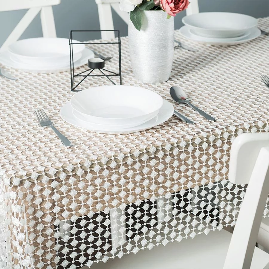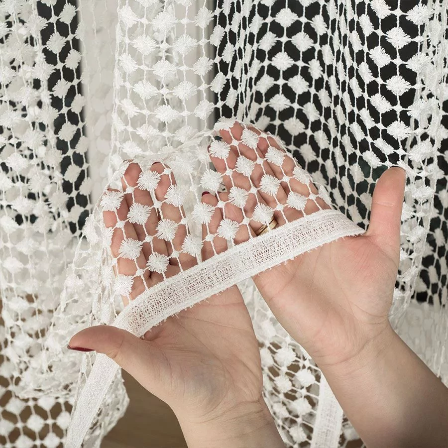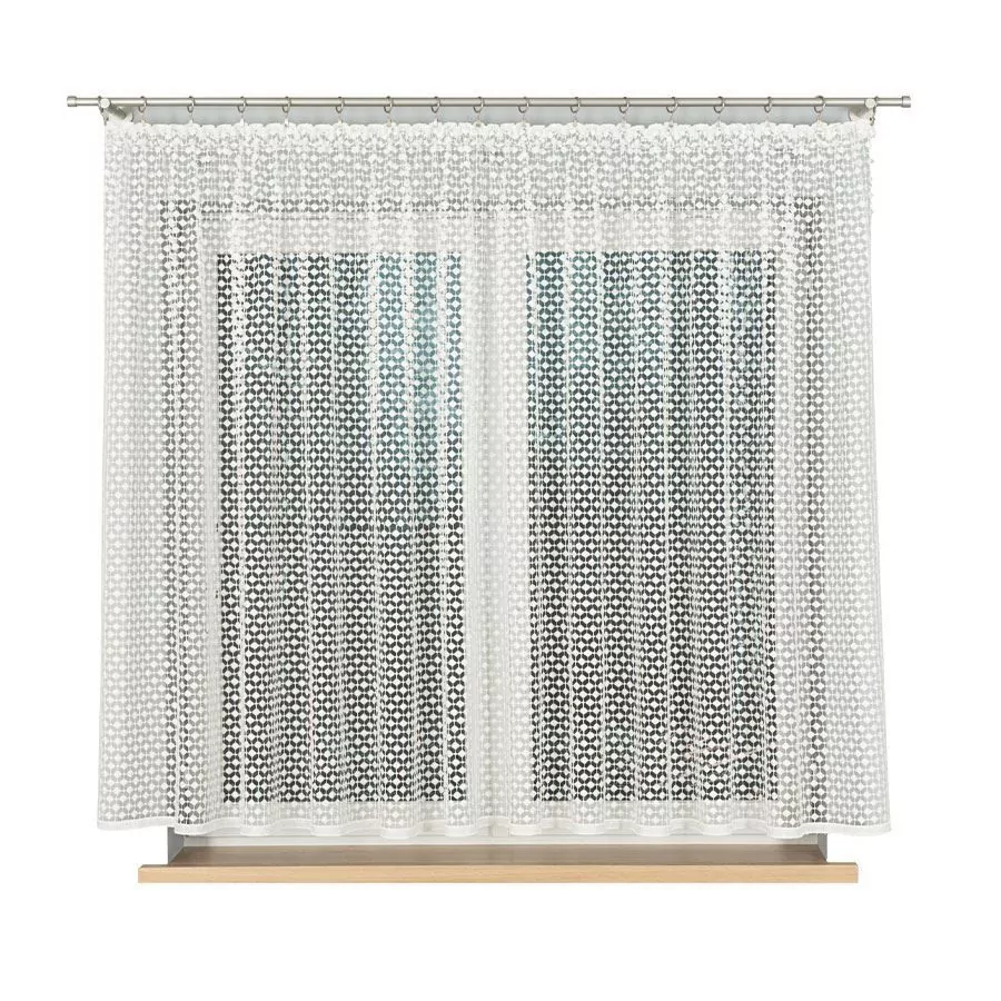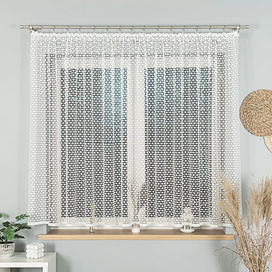 Bez wątpienia gipiura to materiał, który zachwyca swoją dekoracyjną strukturą. Mocne nitki, tworzą ozdobne sploty i wzory. W przypadku firanki metrażowej 061757 jest to 100% poliester, który jest trwały, ma mocny splot i jest odporny na uszkodzenia. Warto podkreślić, że żakard to materiał łatwy w pielęgnacji. Ponadto po praniu nie ma konieczności prasowania firany. Wystarczy drobne zagniecenia wygładzić parownicą. Materiał nie jest podatny na zgniecenia, co jest niewątpliwą zaletą. Bez wątpienia kolejnym atutem jest połyskująca struktura. Wszystko dzięki użytym nitkom z włókna poliestrowego.