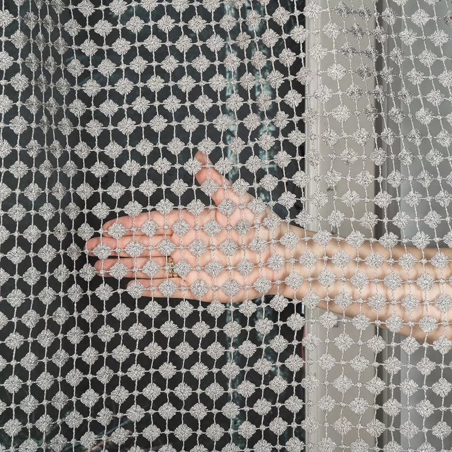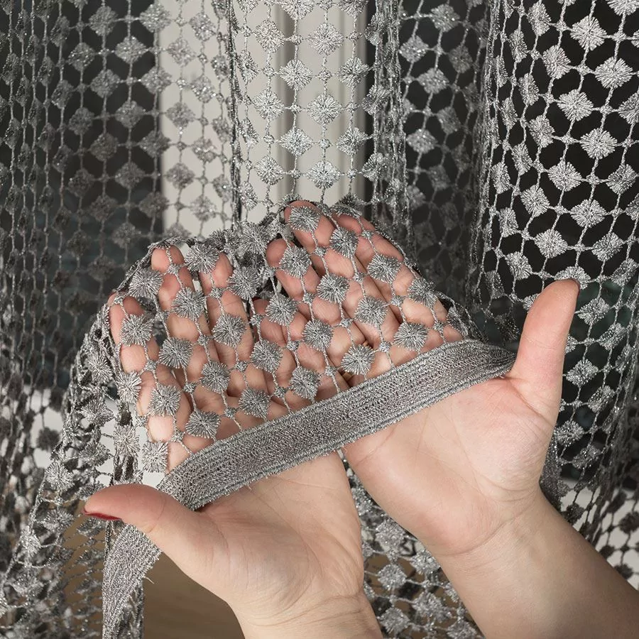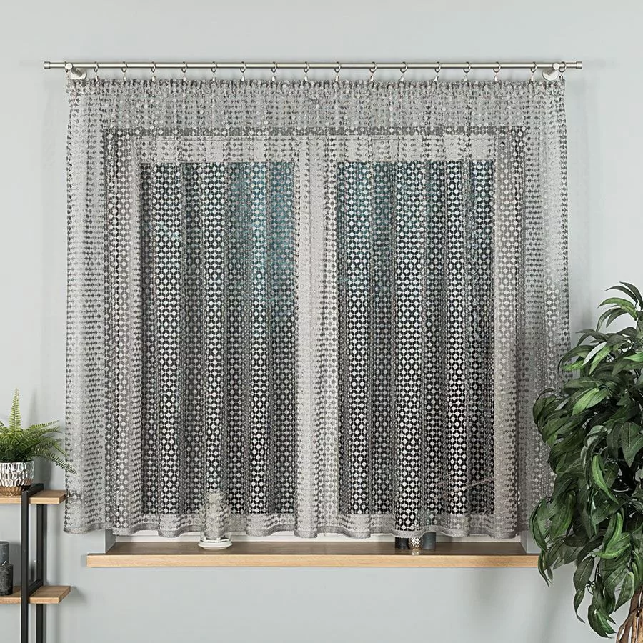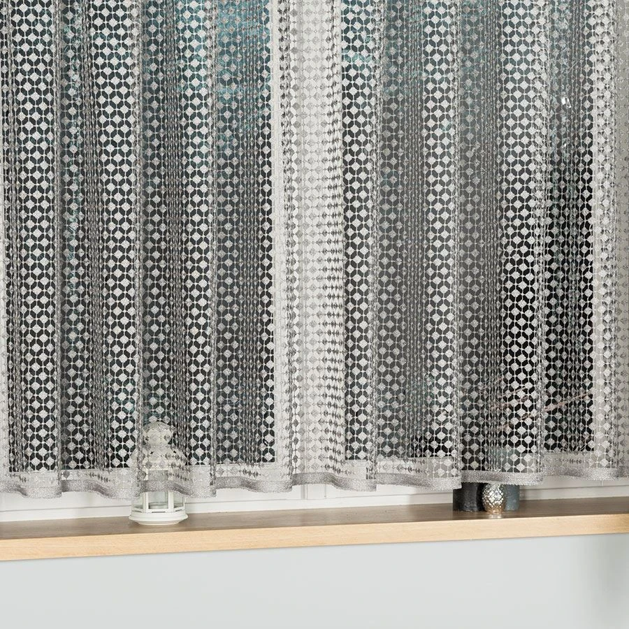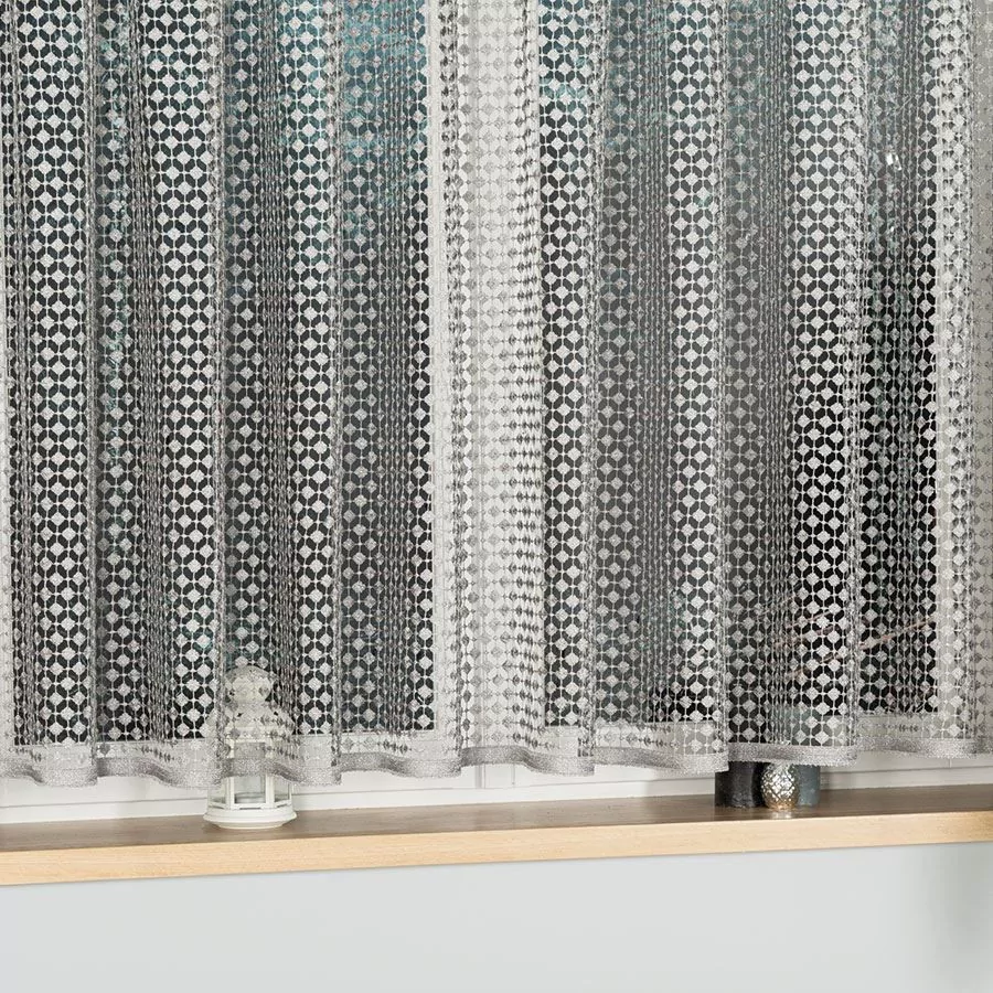 Bez wątpienia gipiura to materiał, który zachwyca swoją dekoracyjną strukturą. Mocne nitki, tworzą ozdobne sploty i wzory. W przypadku firanki metrażowej 061757 jest to 100% poliester, który jest trwały, ma mocny splot i jest odporny na uszkodzenia. Warto podkreślić, że żakard to materiał łatwy w pielęgnacji. Ponadto po praniu nie ma konieczności prasowania firany. Wystarczy drobne zagniecenia wygładzić parownicą. Materiał nie jest podatny na zgniecenia, co jest niewątpliwą zaletą. Bez wątpienia kolejnym atutem jest połyskująca struktura. Wszystko dzięki użytym nitkom z włókna poliestrowego.