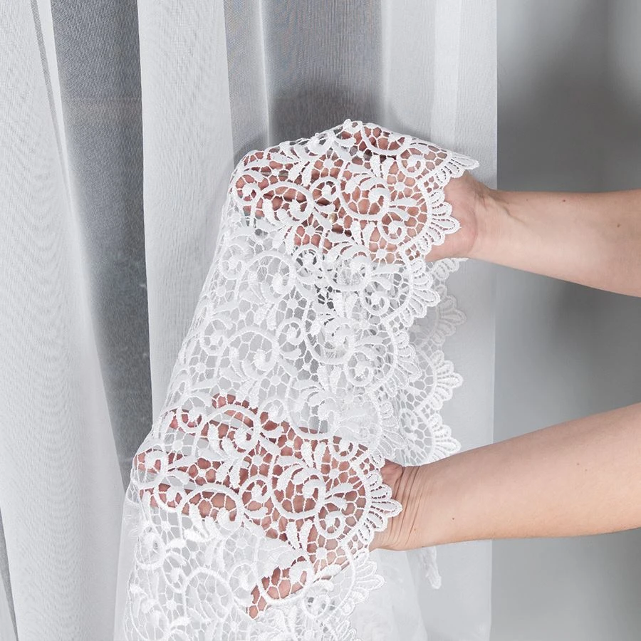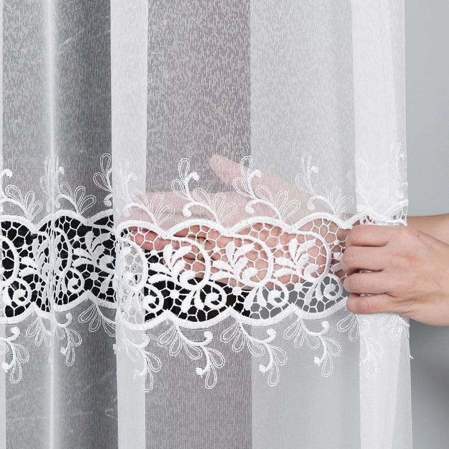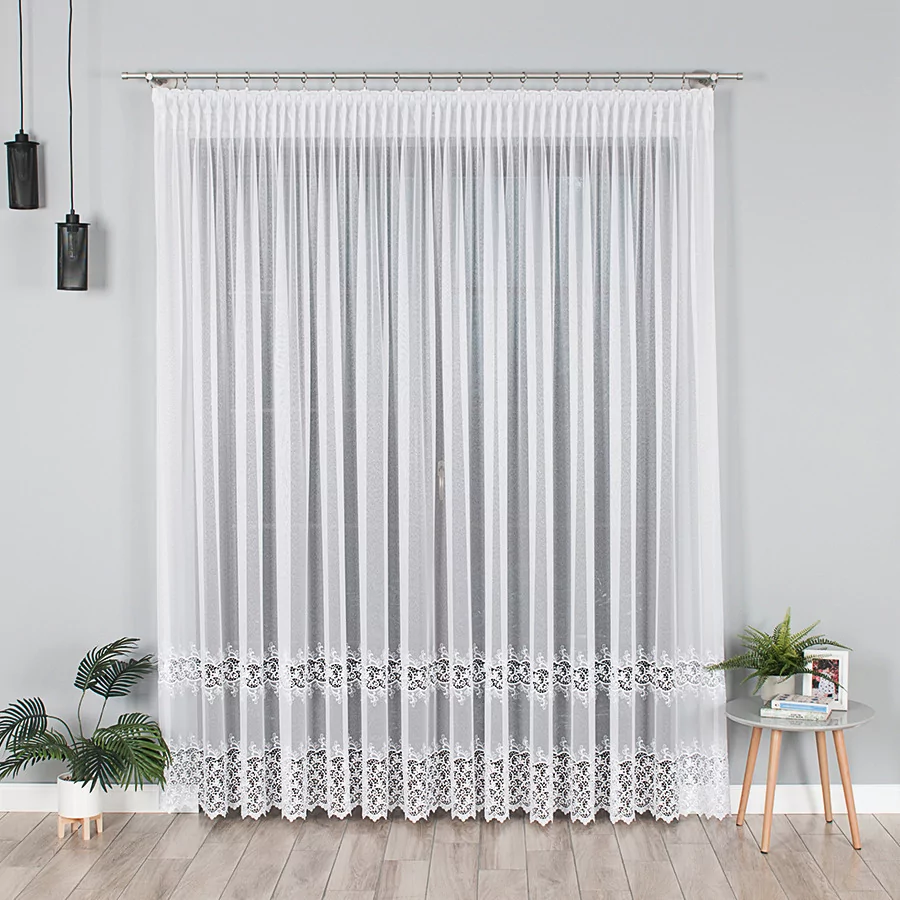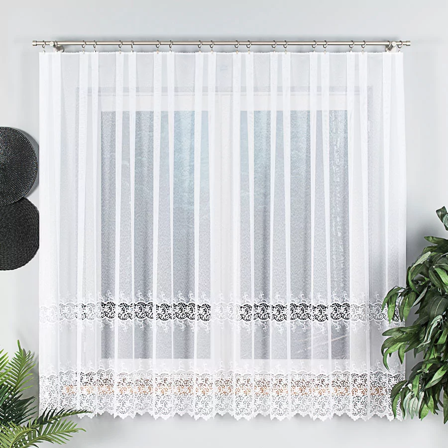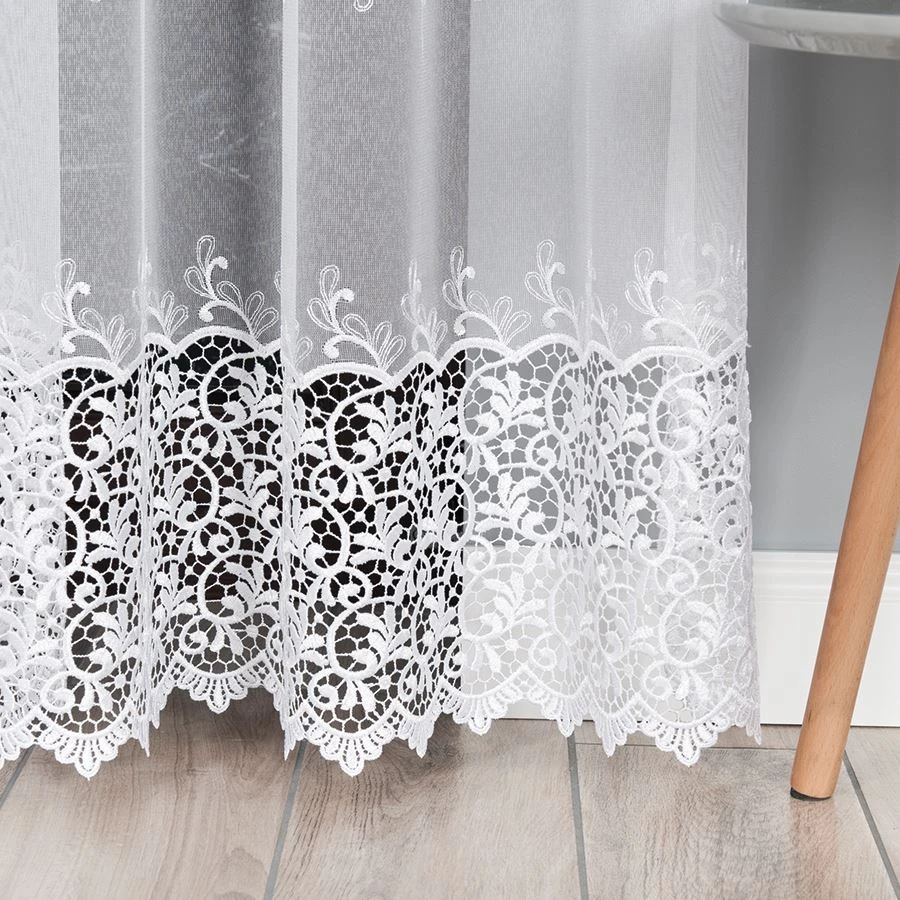 Firanka metrażowa z delikatną aplikacją gipiurową, dostępna w dwóch wysokościach, szerokość natomiast jest dowolna, dzięki czemu bez problemu dopasujemy ją do swoich potrzeb. Oferowana przez nas firanka wykonana na delikatnym podkładzie z markizety pięknie się układa. Tak prosty i klasyczny akcent dekoracyjny z gipiurowymi wstawkami doda ciekawego charakteru i stylu w naszych wnętrzach. Tkaninę cechuje niezwykła lekkość i zwiewność.
