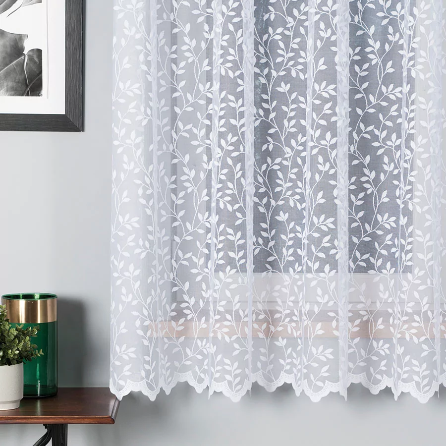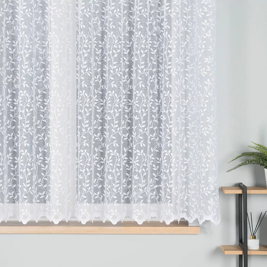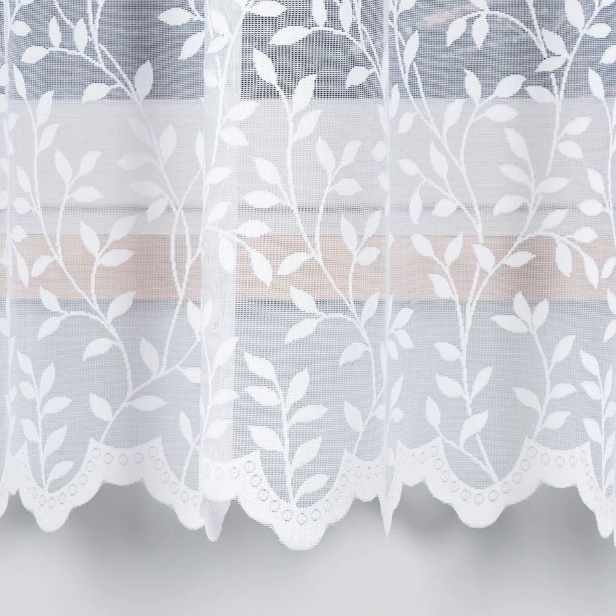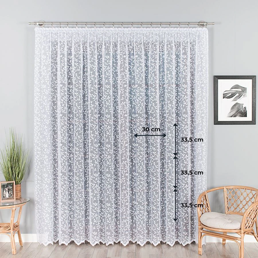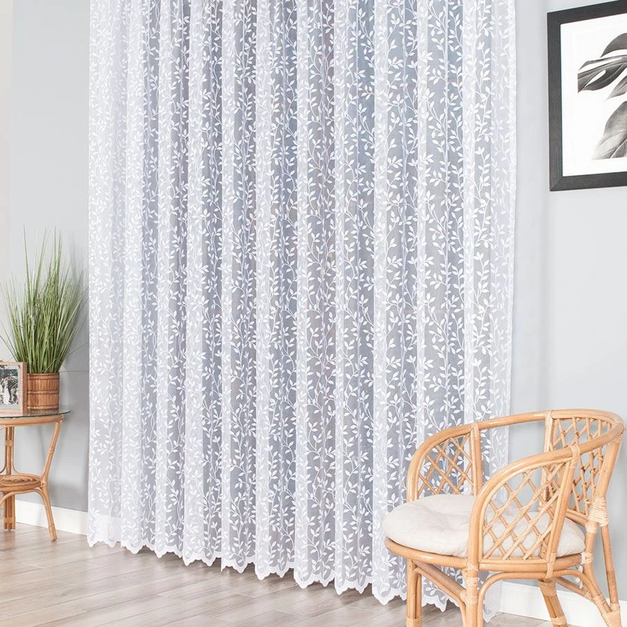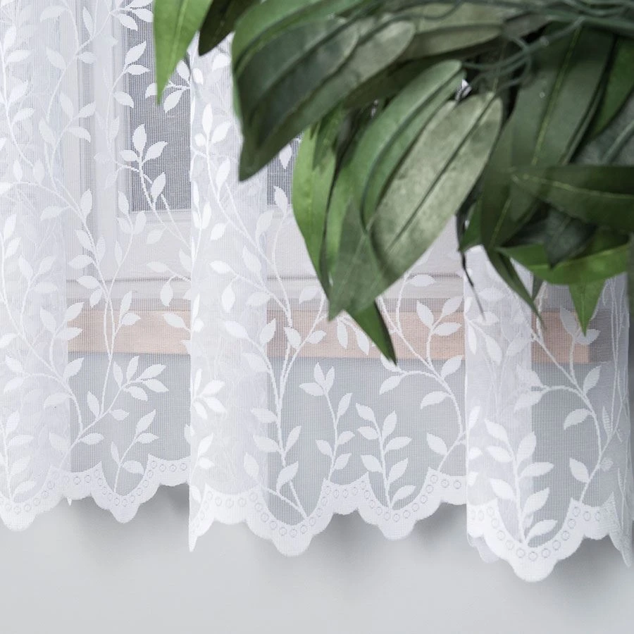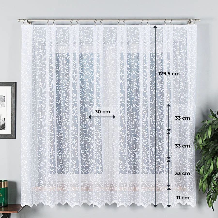 Firanka żakardowa dostępna w metrażu. Wiele wysokości o wyboru, szerokość dowolna, dzięki czemu dopasujesz ją dokładnie do swojego okna. Firankę możesz zamówić z usługą szycia w naszej profesjonalnej szwalni - wybierz wykończenie, podaj wymiary, a otrzymasz uszytą i gotową do zawieszenia firankę. Najwyższa jakość przędzy żakardowej idealnie wkomponuje się w aranżację wnętrz nowoczesnych jak i tych urządzonych w klasycznym stylu. Firanka pięknie się układa, nie wymaga prasowania i można ją prać w pralce w niskiej temperaturze. Cechuje ją dobra przepuszczalność powietrza i promieni słonecznych.