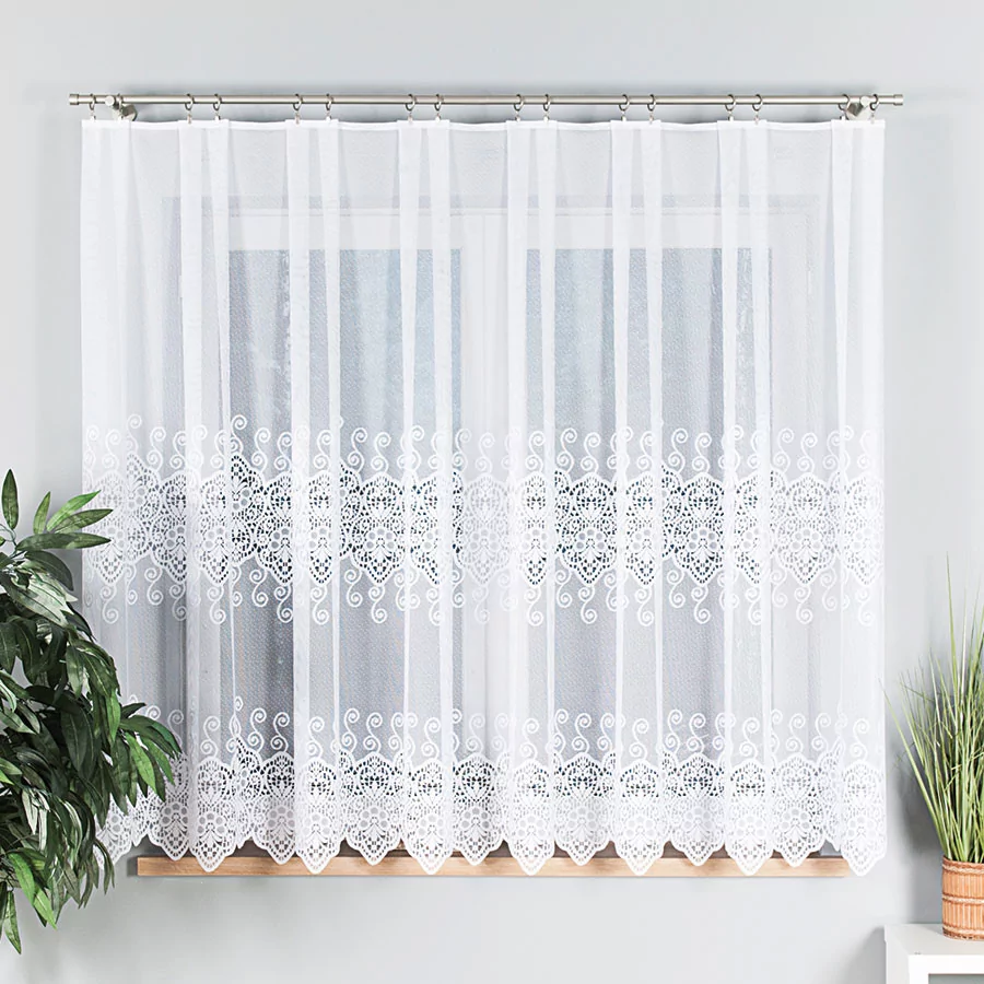 Efektowna, metrażowa firanka żakardowa z motywem szlakowym. Wiele wysokości do wyboru a szerokość jest dowolna, dzięki czemu dopasujesz ją dokładnie do swojego okna. Firankę możesz zamówić z usługą szycia w naszej profesjonalnej szwalni - wybierz wykończenie, podaj wymiary, a otrzymasz uszytą i gotową do zawieszenia firankę. Wykonana z najwyższej jakości przędzy żakardowej firanka idealnie wkomponuje się w aranżację wnętrz nowoczesnych jak i tych urządzonych w klasycznym stylu. Cechuje ją dobra przepuszczalność powietrza i promieni słonecznych. Firanka pięknie się układa, nie wymaga prasowania i można ją prać w pralce w niskiej temperaturze.