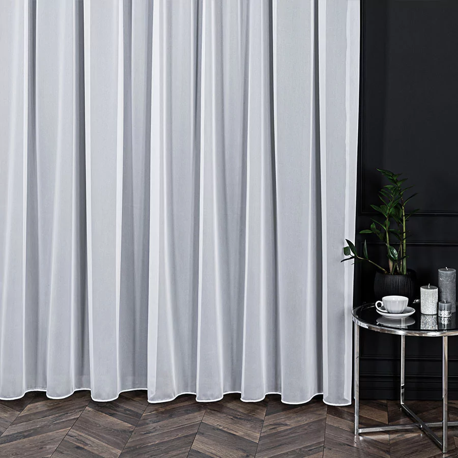 Firana gładka w stylu GLAMOUR wykończona ołowianką. Średni stopień przepuszczalności światła i promieni słonecznych. Pięknie się układa. Idealna propozycja na zwieńczenie procesów aranżacyjnych w pokojach dziennych i salonach. Zagęszczony splot delikatnego, siateczkowego podkładu to prosty i minimalistyczny wzór, który doda subtelności i przytulności wnętrzom.