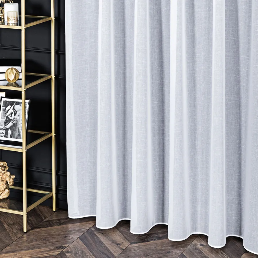 Firana gładka o delikatnym chwycie i lnianym splocie. Wykończona ołowianką. Znakomicie układająca się dzianina fantazyjna, z efektem "natural look" idealnie nadaje się do szycia firan, rolet rzymskich lub lambrekinów. Stosowana jest również samodzielnie jako prosta i bardzo elegancka firana. Materiał średnio przepuszcza powietrze i promienie słoneczne, dzięki czemu wnętrze nabiera niesamowitego charakteru i staje się przytulne. Firanka doskonale się układa i z pewnością będzie idealną ozdobą Twojego okna.