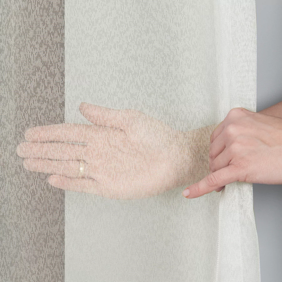 Firana wykonana została na cienkim, delikatnym, siatkowym podkładzie, zwanym markizetą. Tkaninę cechuje niezwykła lekkość i zwiewność. Pomimo swojej prostej formy jest niebywale efektowną tkaniną.
