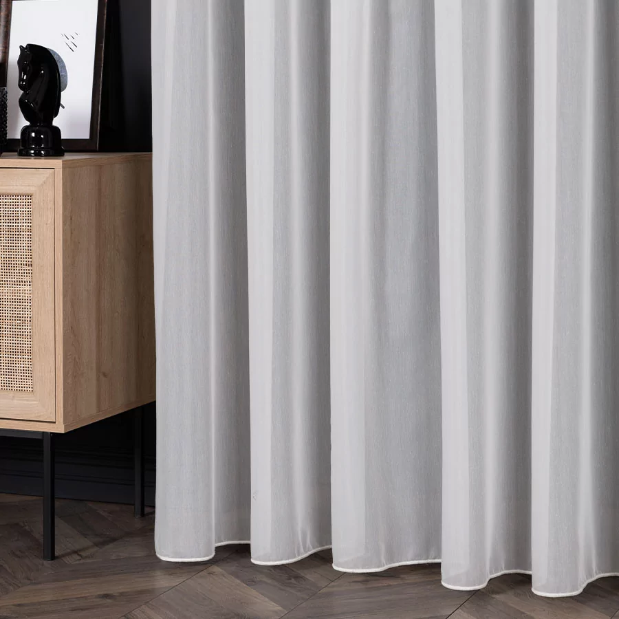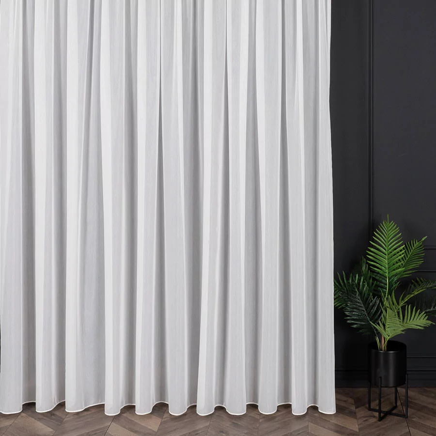 Gładka firanka metrażowa o delikatnym chwycie. Wykończona ołowianką. Firankę możesz zamówić z usługą szycia w naszej profesjonalnej szwalni - wybierz taśmę lub przelotki, podaj wymiary, a otrzymasz uszytą i gotową do zawieszenia firankę.