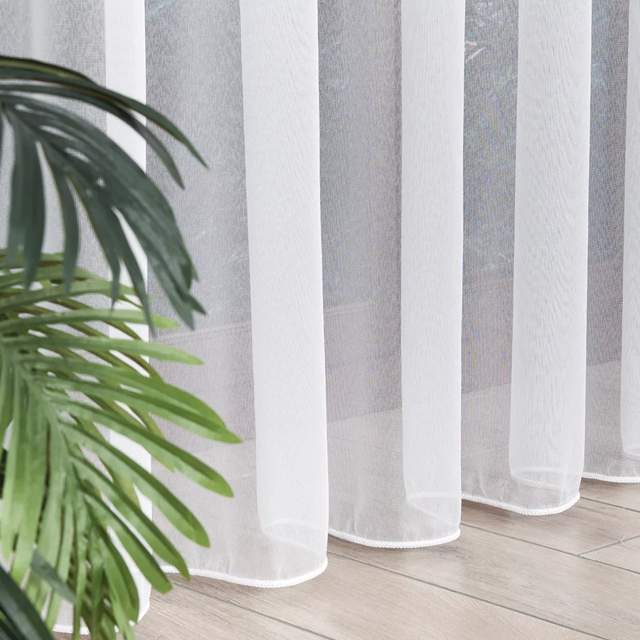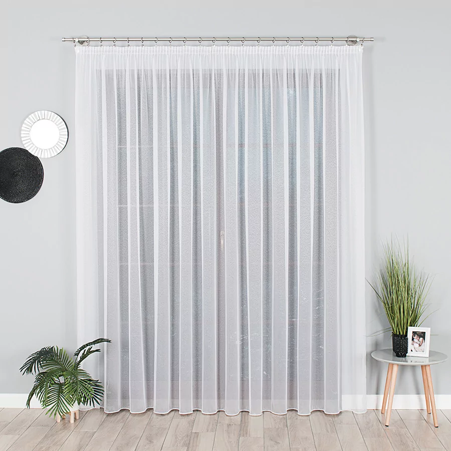 Prosta, aczkolwiek niebywale efektowna firana wykonana została na cienkim, delikatnym, siatkowym podkładzie, zwanym markizetą. Tkaninę cechuje niezwykła lekkość i zwiewność. Naszą propozycją na zwieńczenie procesów aranżacyjnych w pokojach dziennych i salonach jest klasyczna, delikatna i przejrzysta firanka. Przepuszcza powietrze i promienie słoneczne. Pięknie się układa, można ją prać w pralce w niskiej temperaturze. Dostępna wysokość firanki wynosi 330 cm. Szerokość natomiast jest dowolna, dzięki czemu bez problemu dopasujemy ją do Twoich potrzeb i różnych wymiarów okien.