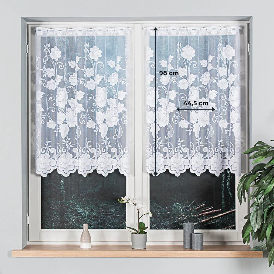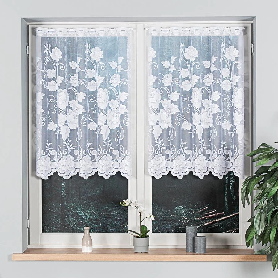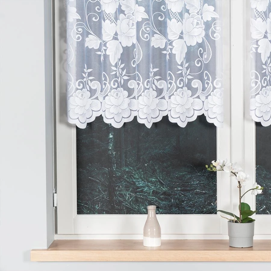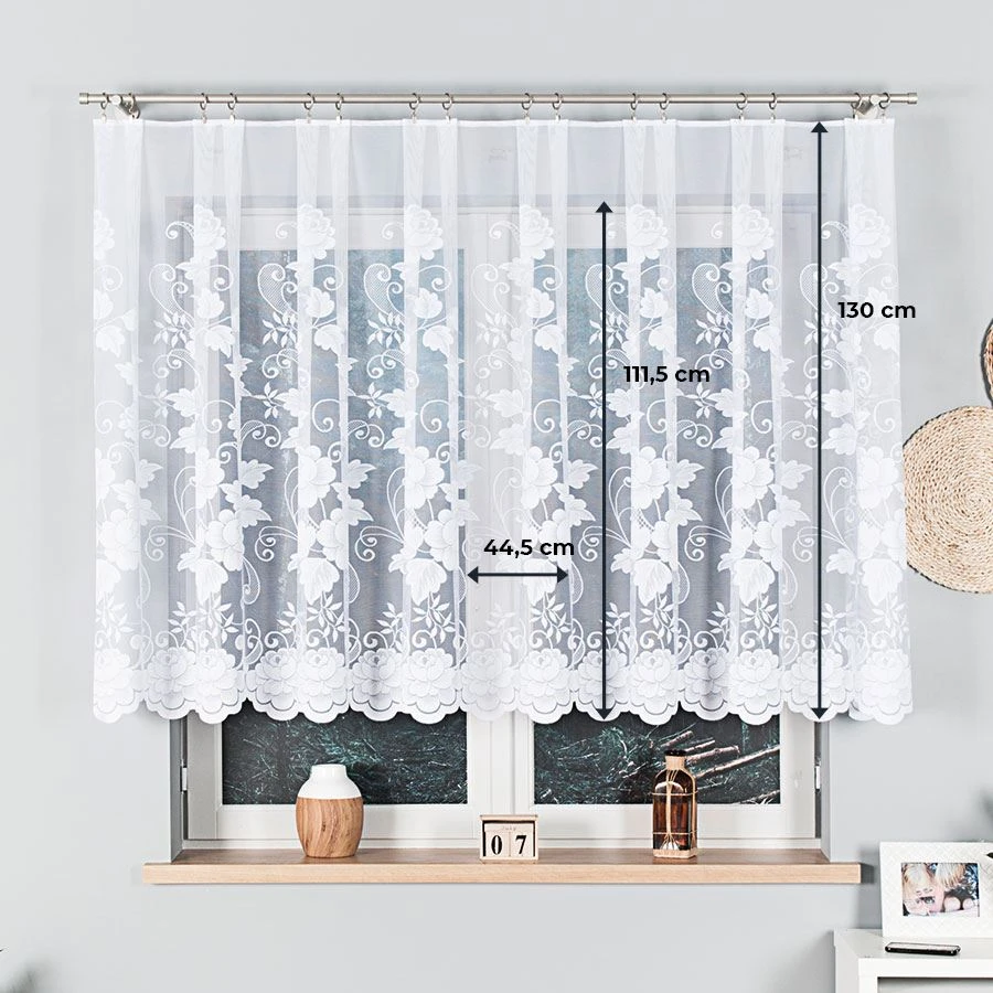 Firanka żakardowa dostępna w metrażu, w kolorze białym, z motywem kwiatowym. Wiele wysokości do wyboru a szerokość jest dowolna, dzięki czemu dopasujesz ją dokładnie do swojego okna. Firankę możesz zamówić z usługą szycia w naszej profesjonalnej szwalni - wybierz wykończenie, podaj wymiary, a otrzymasz uszytą i gotową do zawieszenia firankę.