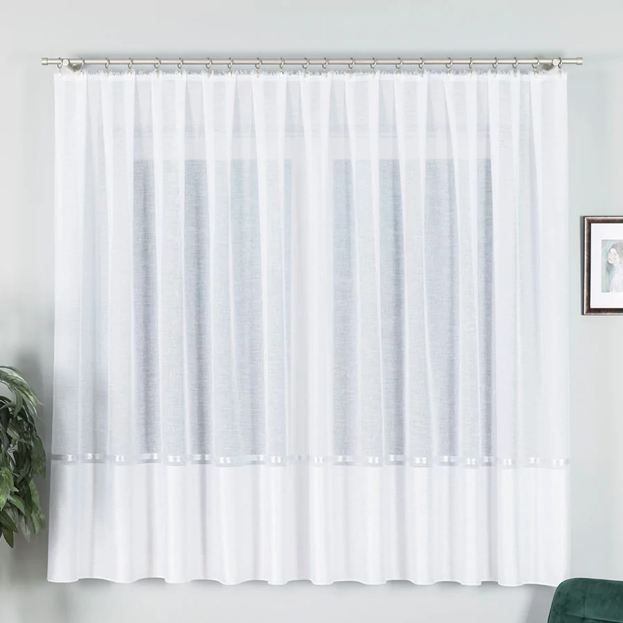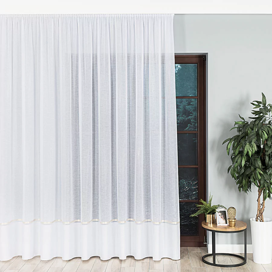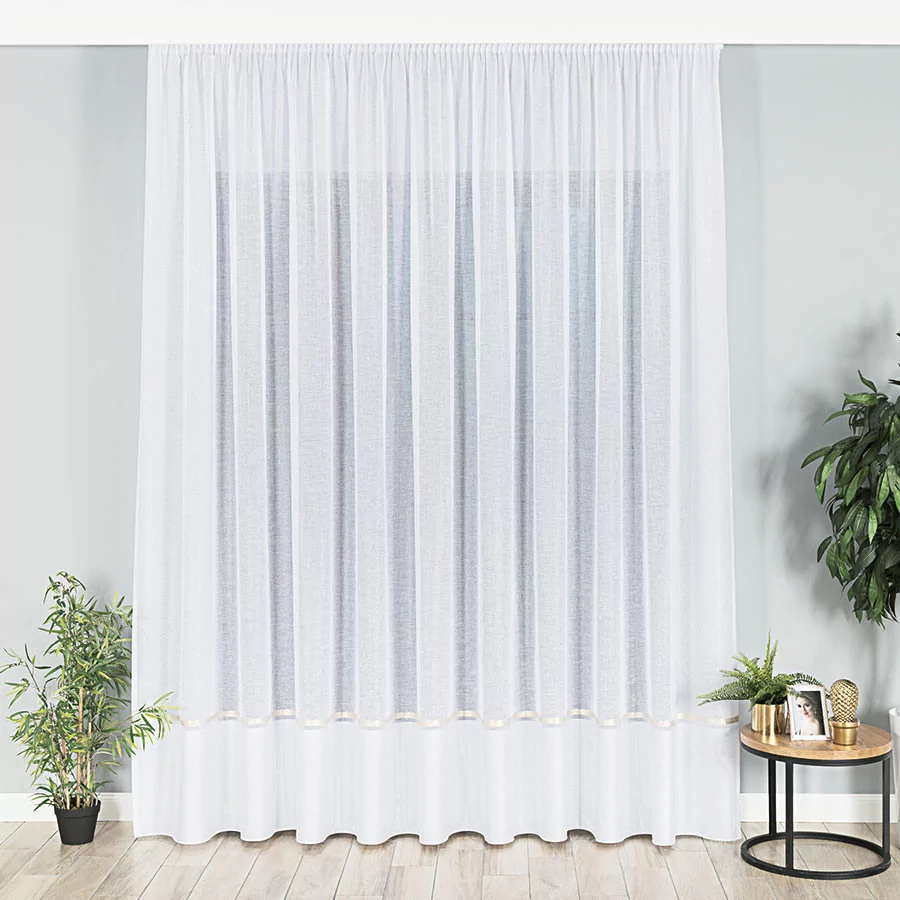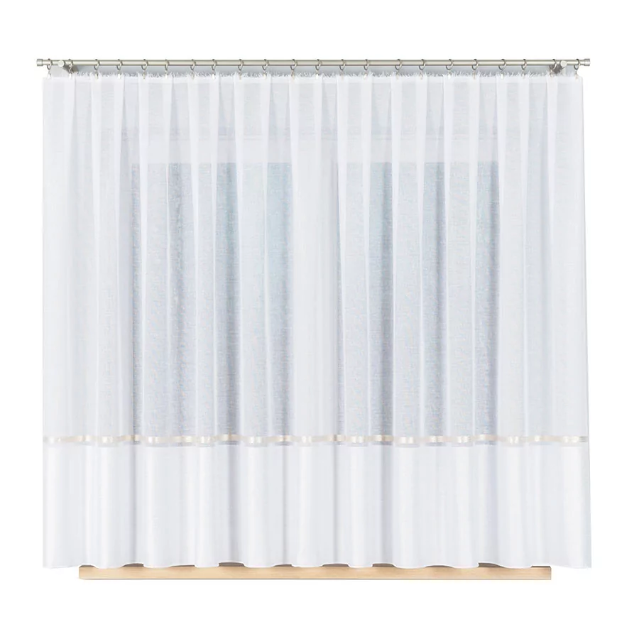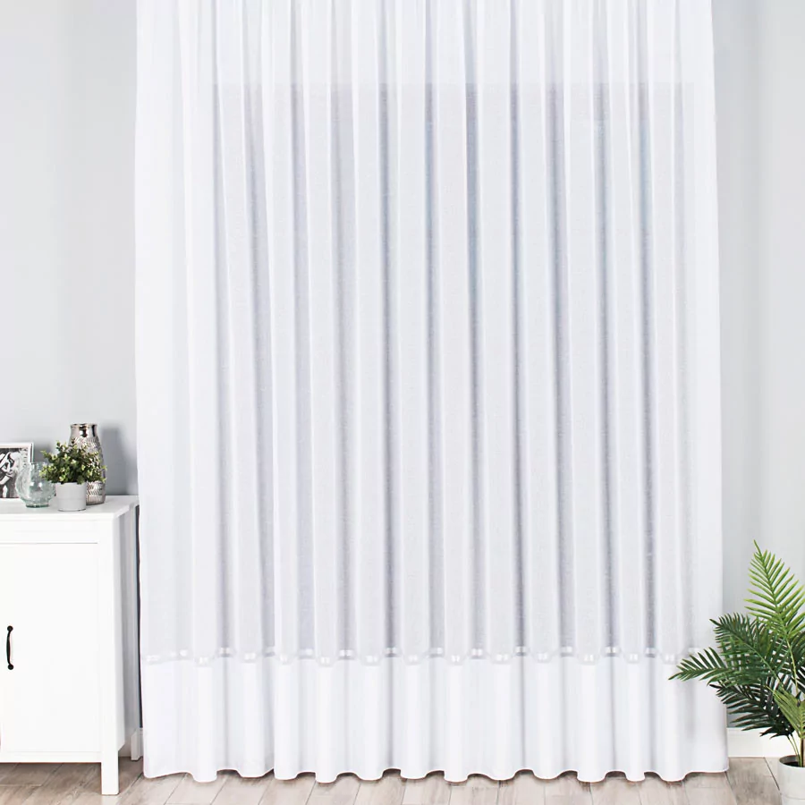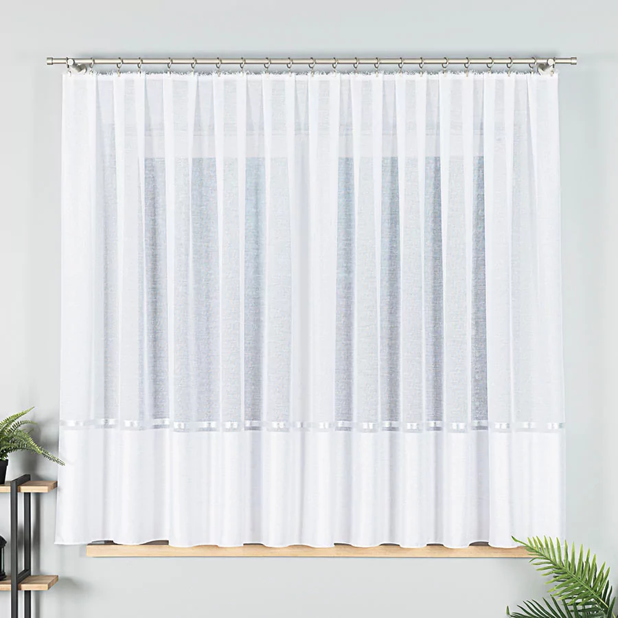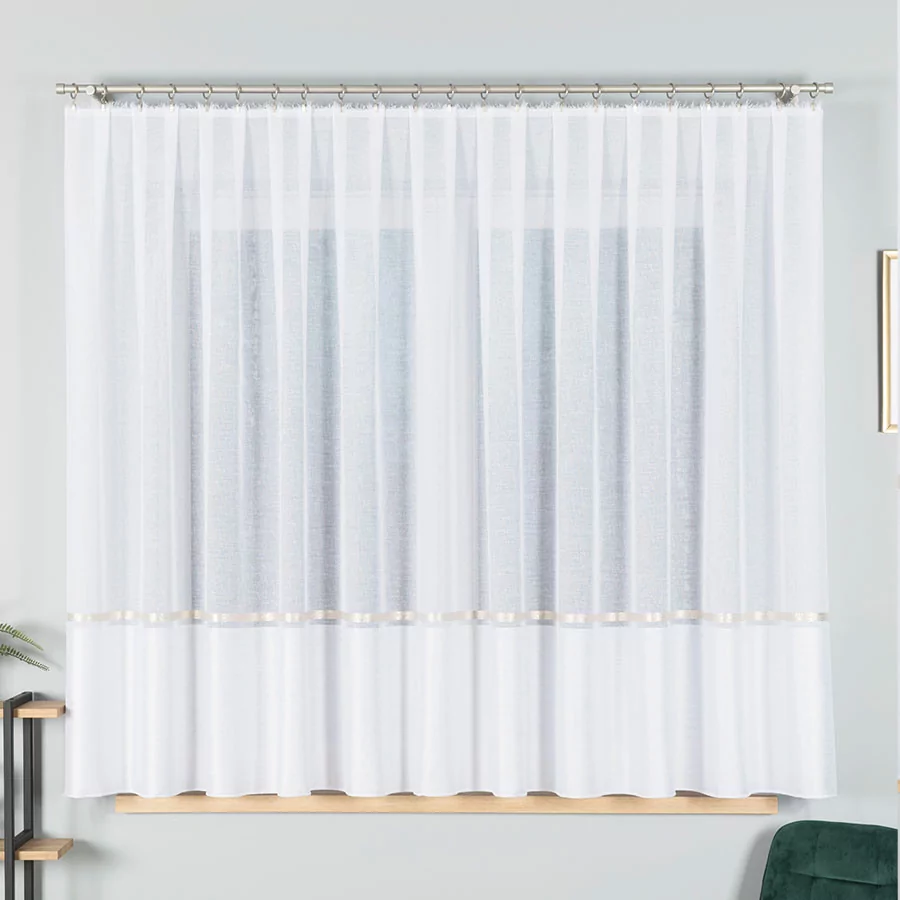 Firana 000641 to fantastyczny materiał, który można łatwo przyciąć na dowolną długość i szerokość, dzięki czemu bez problemu uszyjemy firankę idealnie dopasowaną do wymiaru Twoich okien.