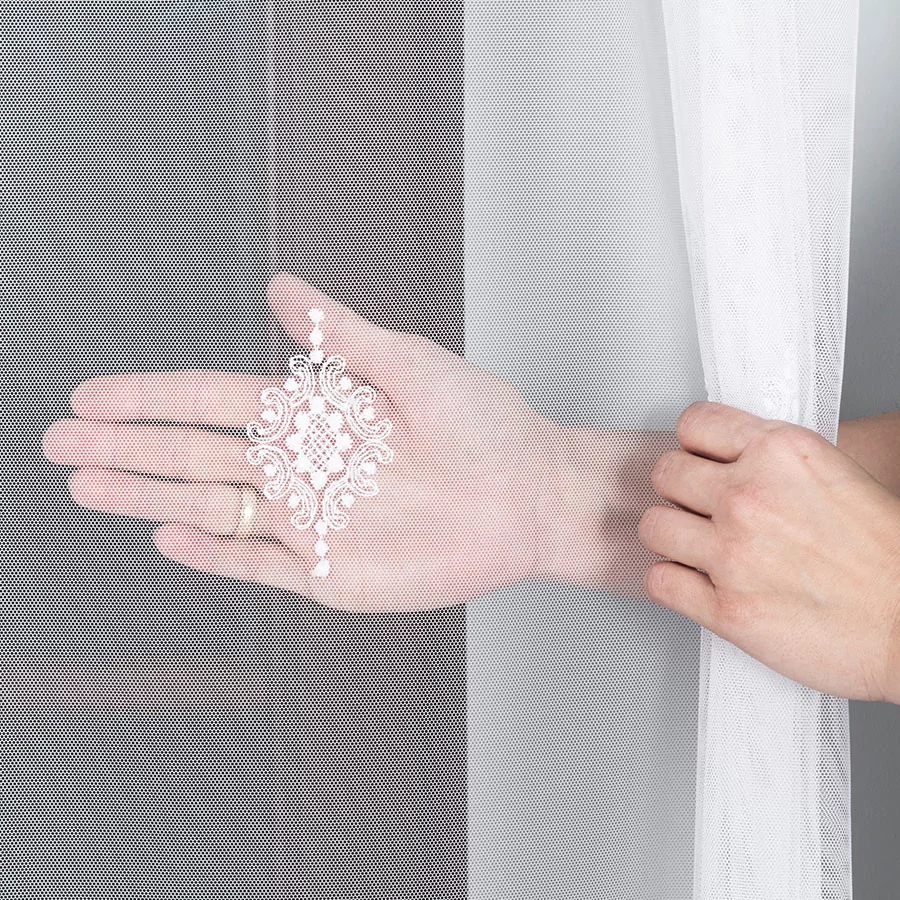 Firankę możemy skrócić i uszyć na dowolną szerokość, dzięki czemu bez problemu dopasujemy ją do Twoich potrzeb i różnych wymiarów okien. Możesz wybrać taśmę lub przelotki i zamówić obszytą, gotową do zawieszenia firankę.