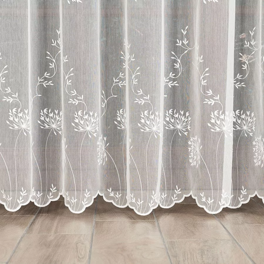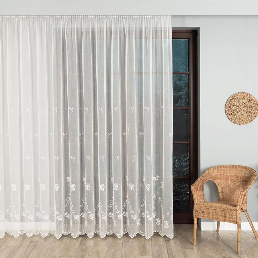 Naszą propozycją na zwieńczenie procesów aranżacyjnych w pokojach dziennych i salonach jest klasyczna, delikatna i przejrzysta firanka. Firanki haftowane, w zależności od wzoru, będą doskonałą dekoracją okna w każdym pomieszczeniu. Haft kojarzy się zwykle z luksusem i elegancją, ale różnorodne formy haftu będą doskonale komponować się w modernistycznych wnętrzach. Bardzo przejrzysta firanka została wykonana na drobnym, siateczkowym podkładzie. Siateczka, na której wyhaftowany jest wzór tej firanki doskonale przepuszcza powietrze i wpuszcza do pomieszczenia dużo promieni słonecznych. Firanka doskonale się układa i z pewnością będzie idealną ozdobą Twojego okna.