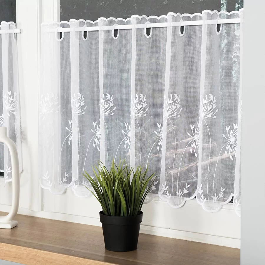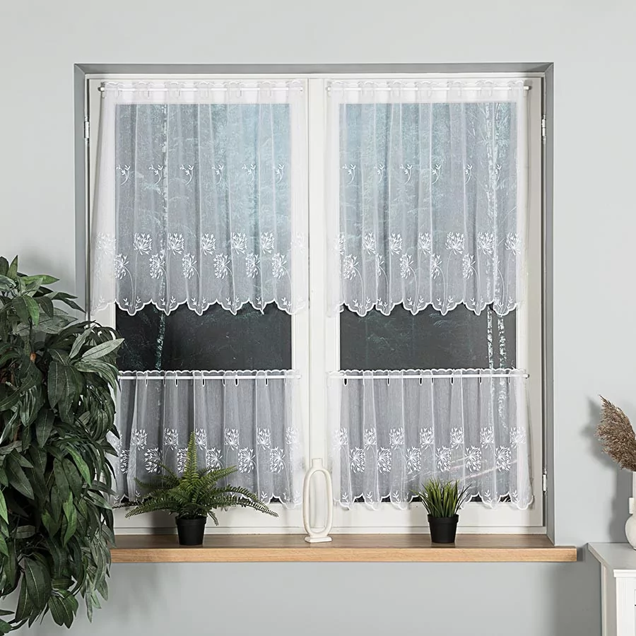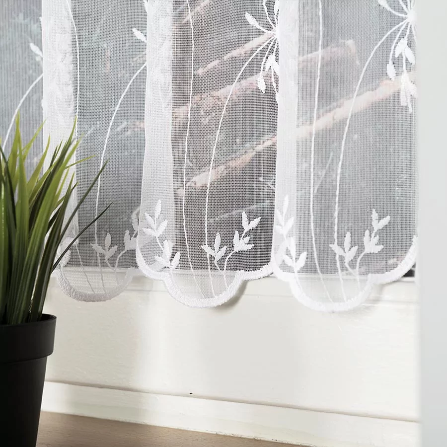 Naszą propozycją na zwieńczenie procesów aranżacyjnych w pokojach dziennych i salonach jest klasyczna, delikatna i przejrzysta firanka. Firanki haftowane, w zależności od wzoru, będą doskonałą dekoracją okna w każdym pomieszczeniu. Haft kojarzy się zwykle z luksusem i elegancją, ale różnorodne formy haftu będą doskonale komponować się w modernistycznych wnętrzach. Bardzo przejrzysta firanka została wykonana na drobnym, siateczkowym podkładzie. Siateczka, na której wyhaftowany jest wzór tej firanki doskonale przepuszcza powietrze i wpuszcza do pomieszczenia dużo promieni słonecznych. Firanka doskonale się układa i z pewnością będzie idealną ozdobą Twojego okna.