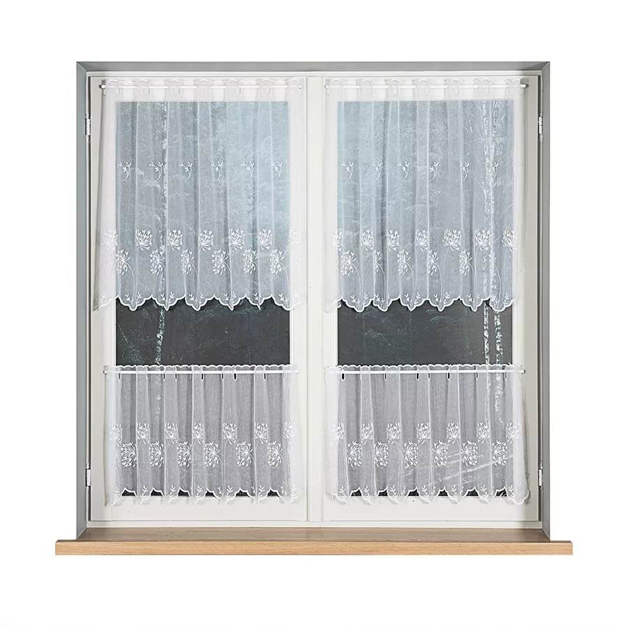 Firanka haftowana, dostępna w metrażu, kolor: biały lub kremowy, motyw: rośliny/kwiat. Cztery wysokości do wyboru, szerokość natomiast jest dowolna, dzięki czemu dopasujesz ją dokładnie do swojego okna. Firankę możesz zamówić z usługą szycia w naszej profesjonalnej szwalni - wybierz taśmę lub przelotki, podaj wymiary, a otrzymasz uszytą i gotową do zawieszenia firankę.
