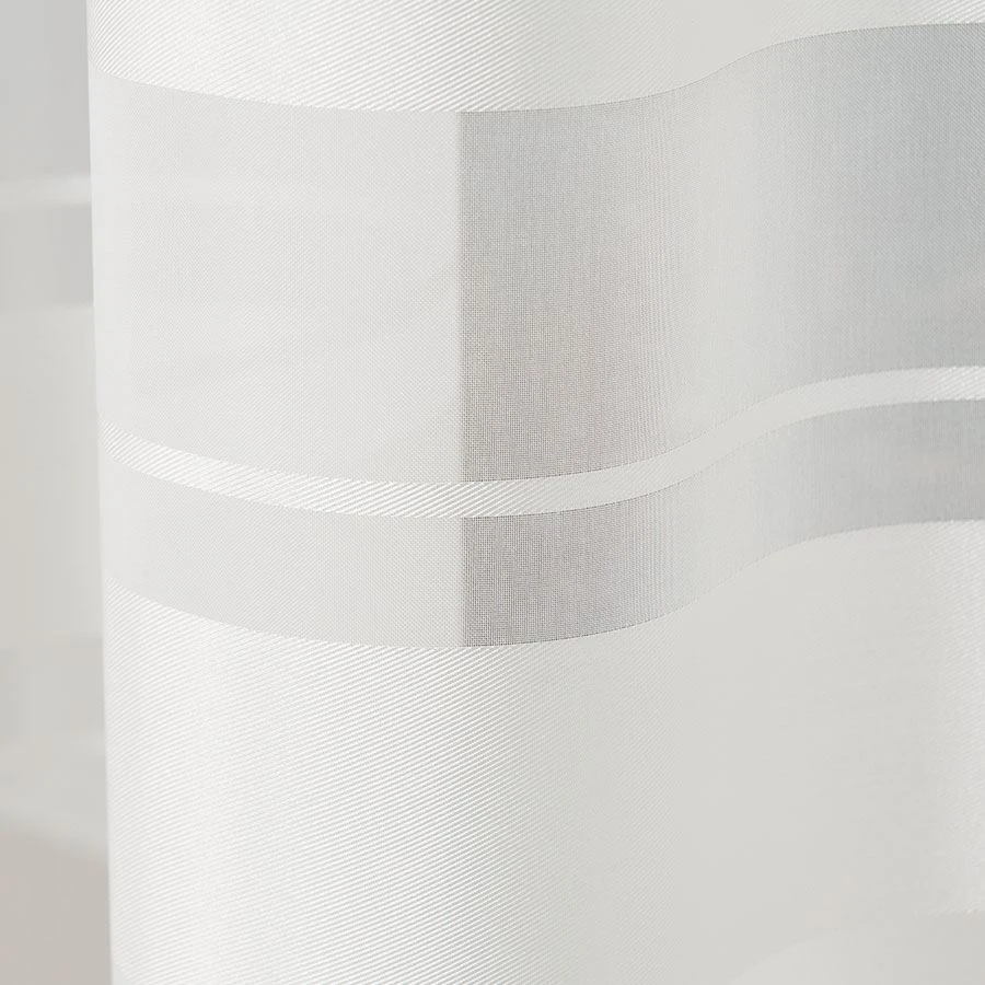Delikatnie połyskująca tkanina woalowa, zdobiona atłasowymi pasami to jedna z wielu propozycji dostępnych w ofercie naszego sklepu internetowego. Prezentowany model dzięki minimalistycznemu wzornictwu doskonale nadaje się zarówno do nowoczesnych, jak i tradycyjnych pomieszczeń.