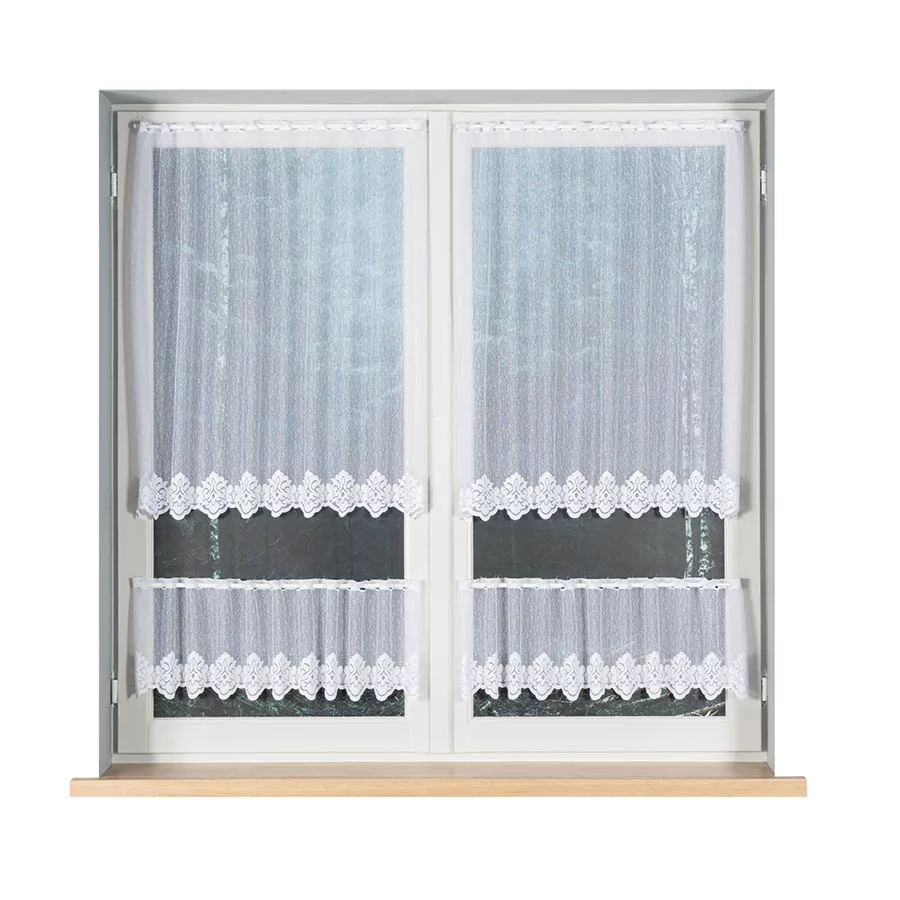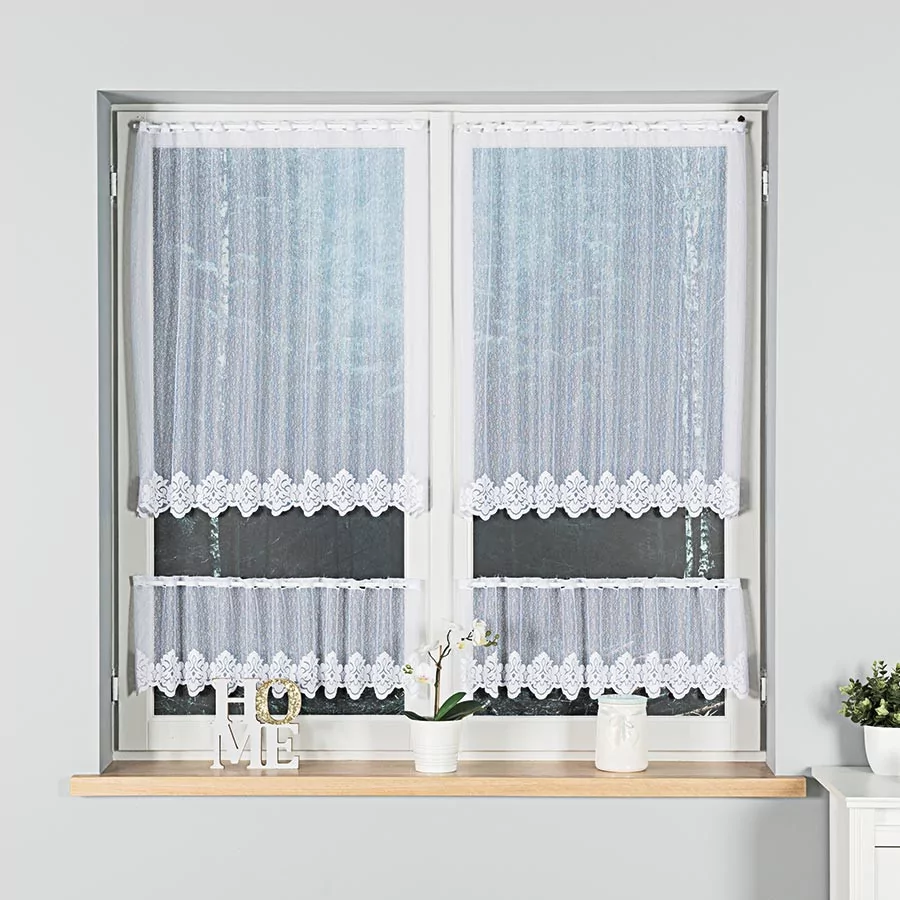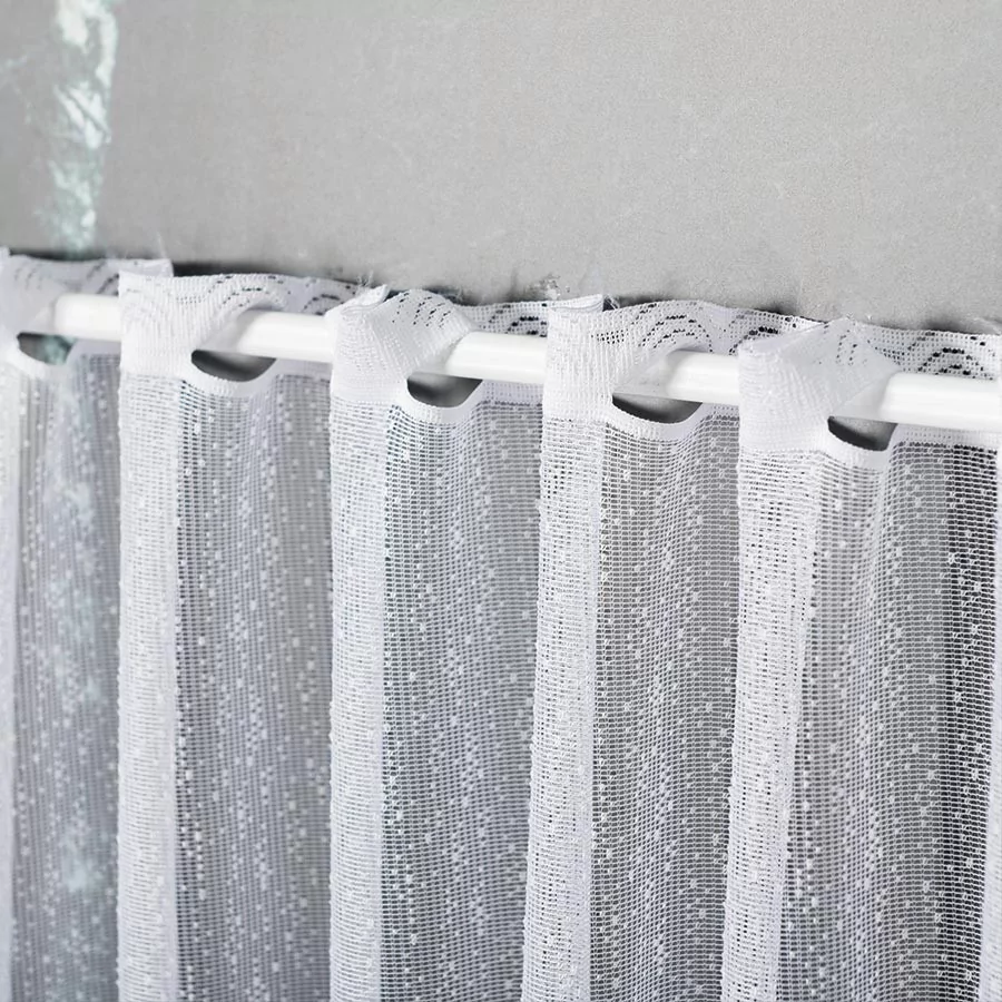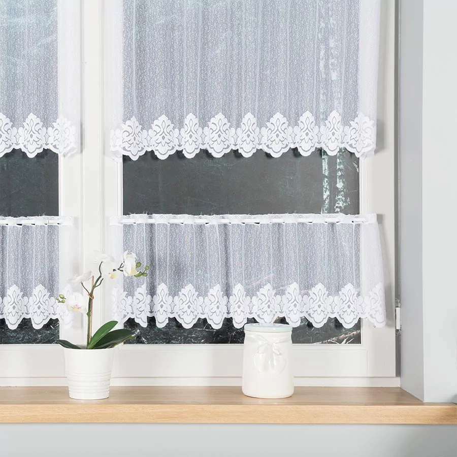 Firanka żakardowa dostępna w metrażu, którą możesz zamówić z usługą szycia w naszej profesjonalnej szwalni - wybierz wykończenie, podaj wymiary, a otrzymasz uszytą i gotową do zawieszenia firankę. Najwyższa jakość przędzy żakardowej sprawia, że materiał pięknie się układa, nie wymaga prasowania i można go prać w pralce w niskiej temperaturze. Cechuje go dobra przepuszczalność powietrza i promieni słonecznych.