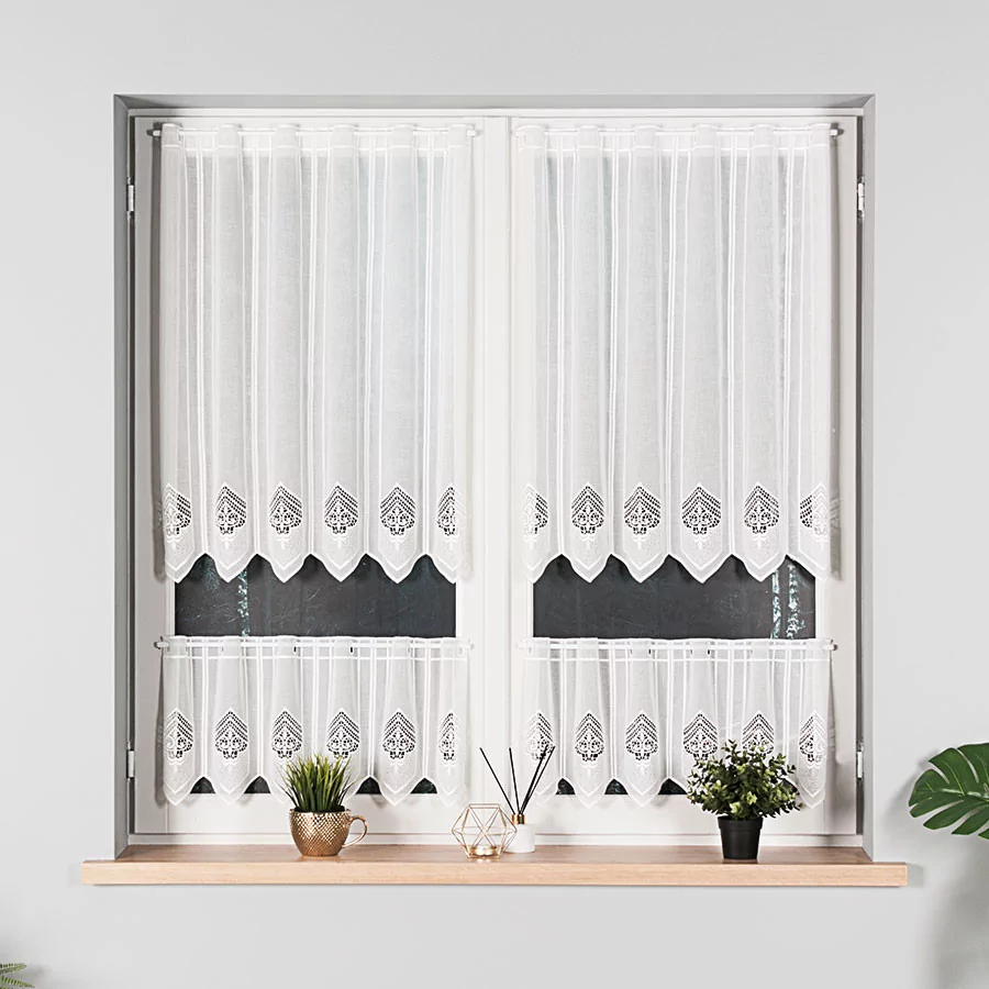 Zazdrostka panelowa z aplikacją haftowaną, dostępna w metrażu w kilku wysokościach do wyboru.