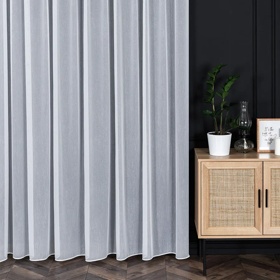 ✂️ Firankę możemy skrócić i uszyć na dowolną szerokość, dzięki czemu bez problemu dopasujemy ją do Twoich potrzeb i różnych wymiarów okien. Możesz wybrać taśmę lub przelotki i zamówić obszytą, gotową do zawieszenia firankę.