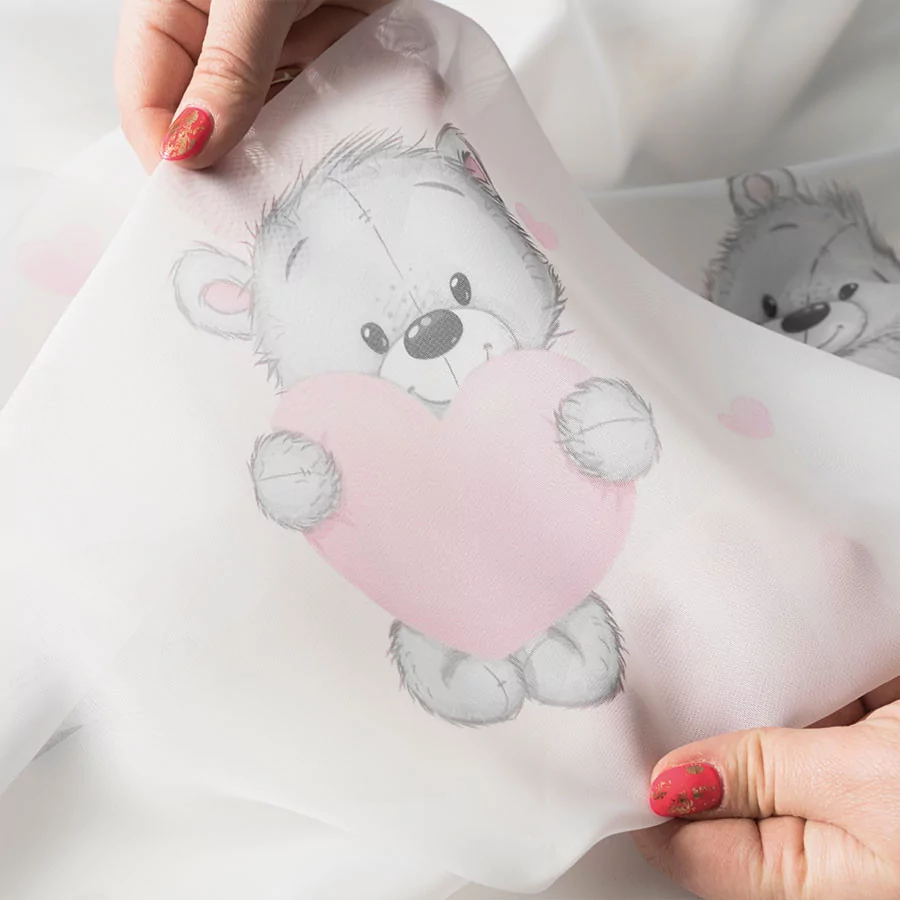 Chcesz wprowadzić trochę dziecięcej energii do pokoju swojego dziecka? Zrób to dzięki firance MISIAKI. Wykonana z wzorzystego, lekkiego i mięciutkiego w dotyku woalu, świetnie zaprezentuje się w każdym pokoju naszych najmłodszych pociech. Niezwykle lekki, delikatnie połyskujący materiał, który znakomicie się układa – wszystko to sprawia, że tkanina doskonale nadaje się do szycia lambrekinów czy firanek. Tkanina w uniwersalnym, białym kolorze z dziecięcym motywem w dwóch wersjach kolorystycznych do wyboru.