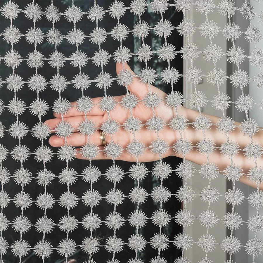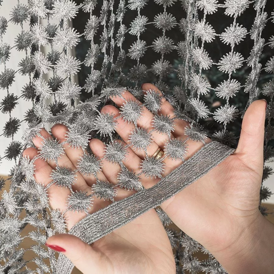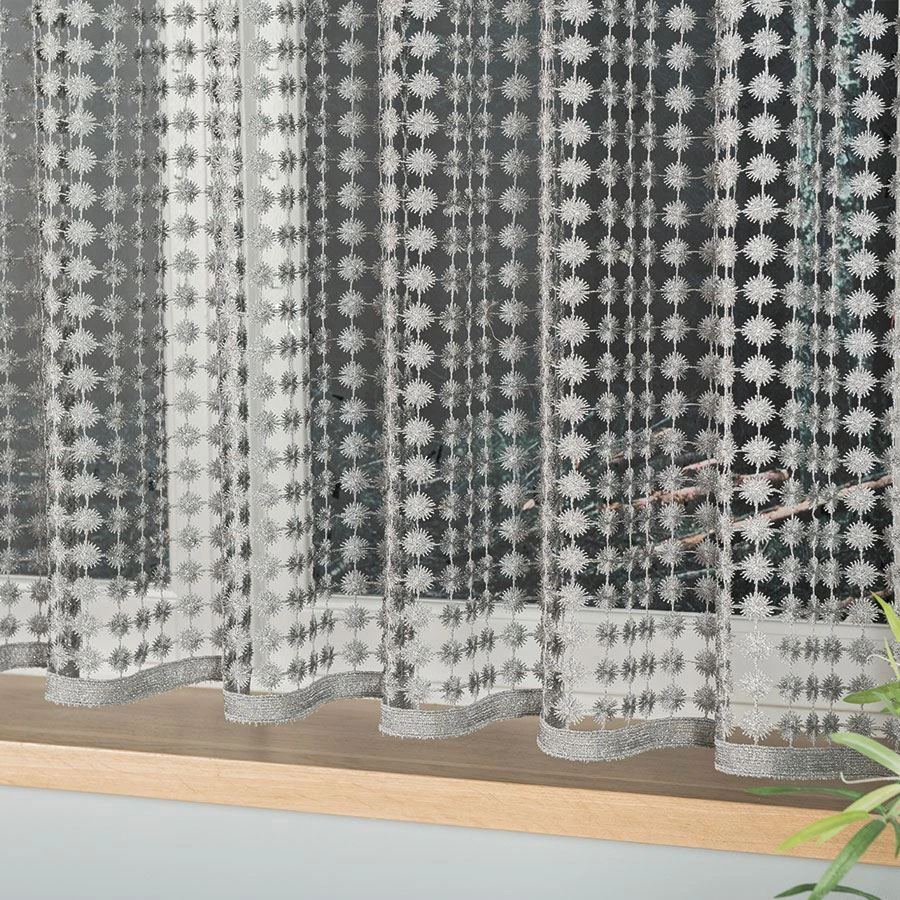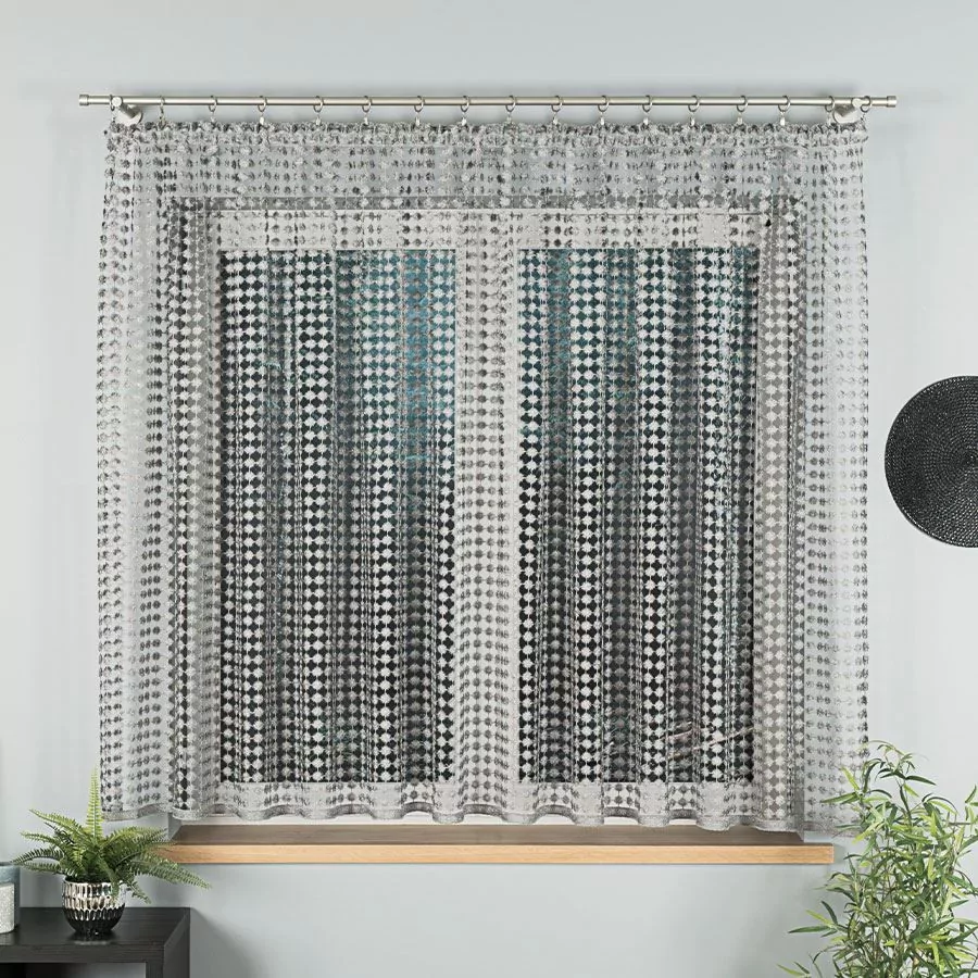 Bez wątpienia gipiura to materiał, który zachwyca swoją dekoracyjną strukturą. Mocne nitki, tworzą ozdobne sploty i wzory. W przypadku firanki metrażowej 061789 jest to 100% poliester, który jest trwały, ma mocny splot i jest odporny na uszkodzenia. Warto podkreślić, że żakard to materiał łatwy w pielęgnacji. Ponadto po praniu nie ma konieczności prasowania firany. Wystarczy drobne zagniecenia wygładzić parownicą. Materiał nie jest podatny na zgniecenia, co jest niewątpliwą zaletą. Bez wątpienia kolejnym atutem jest połyskująca struktura. Wszystko dzięki użytym nitkom z włókna poliestrowego.