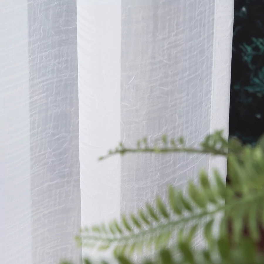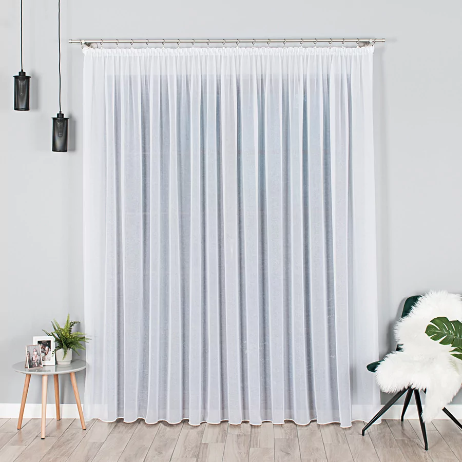 Stworzymy nowoczesną firankę z woalu kreszowanego. Dostępna wysokość firanki wynosi 290 cm. Szerokość natomiast jest dowolna, dzięki czemu bez problemu dopasujemy ją do swoich potrzeb i różnych wymiarów okien.