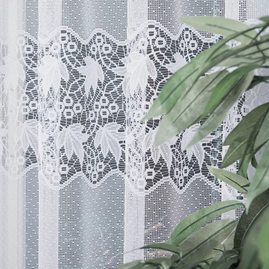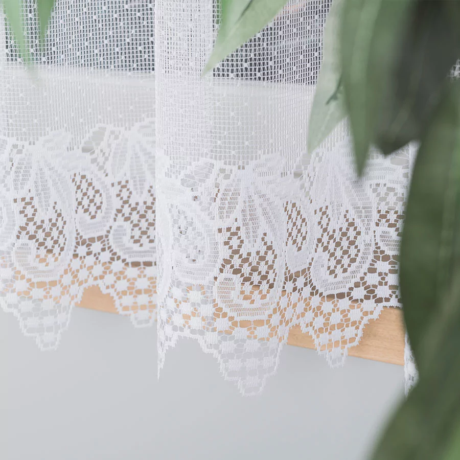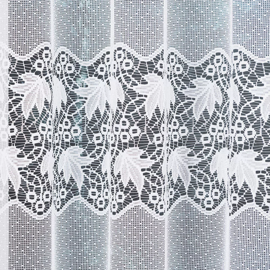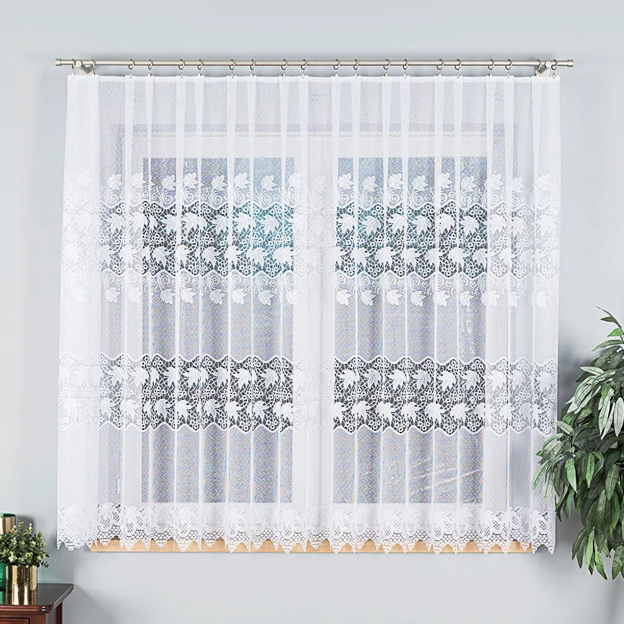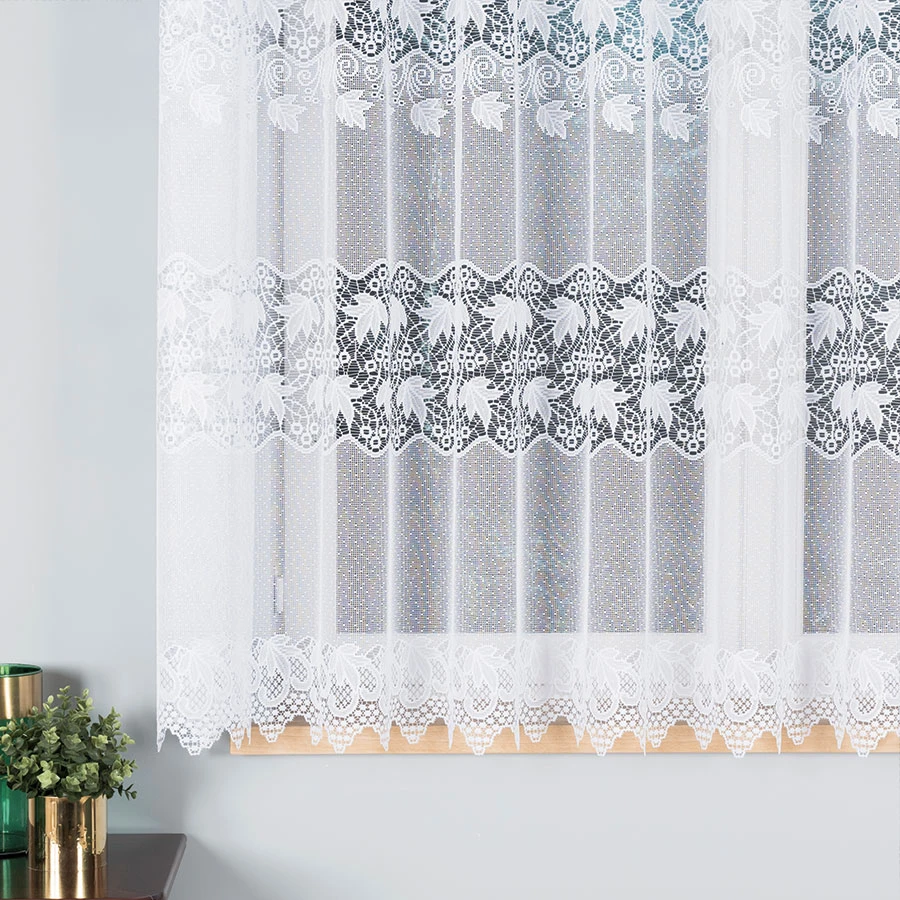Firanka żakardowa dostępna w metrażu, kolor: biały, motyw: rośliny / kwiaty, wiele wysokości o wyboru, szerokość dowolna, dzięki czemu dopasujesz ją dokładnie do swojego okna. Firankę możesz zamówić z usługą szycia w naszej profesjonalnej szwalni - wybierz wykończenie, podaj wymiary, a otrzymasz uszytą i gotową do zawieszenia firankę. Najwyższa jakość przędzy żakardowej idealnie wkomponuje się w aranżację wnętrz nowoczesnych jak i tych urządzonych w klasycznym stylu. Firanka pięknie się układa, nie wymaga prasowania i można go prać w pralce w niskiej temperaturze. Cechuje ją dobra przepuszczalność powietrza i promieni słonecznych.