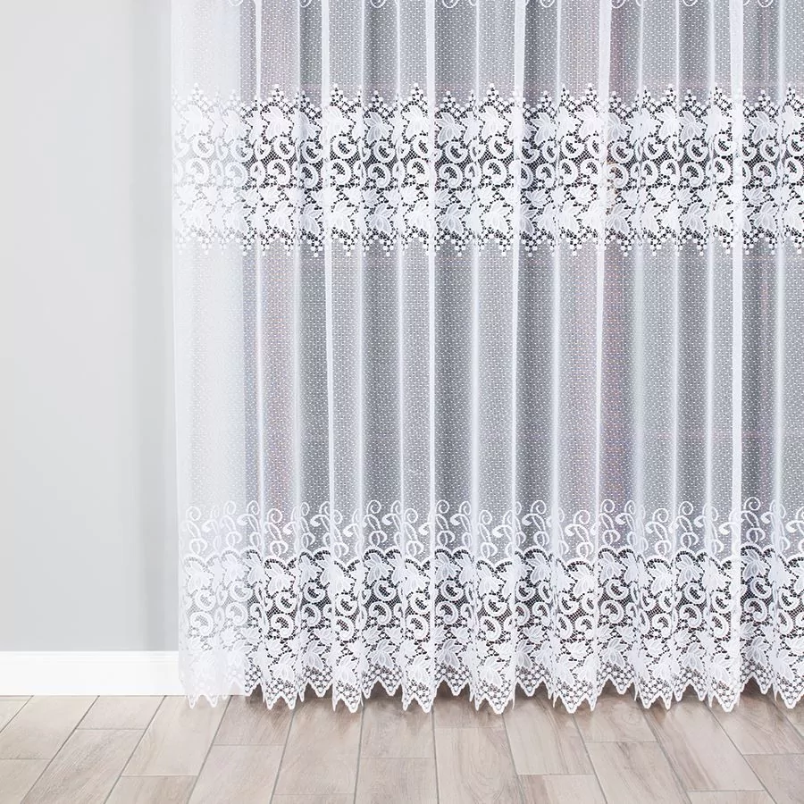 Firanka żakardowa dostępna w metrażu. Wiele wysokości o wyboru, szerokość dowolna, co daje możliwość dopasowania jej dokładnie do swojego okna. Firankę możesz zamówić z usługą szycia w naszej profesjonalnej szwalni - wybierz wykończenie, podaj wymiary, a otrzymasz uszytą i gotową do zawieszenia firankę. Najwyższa jakość przędzy żakardowej idealnie wkomponuje się w aranżację wnętrz nowoczesnych jak i tych urządzonych w klasycznym stylu. Firanka pięknie się układa, nie wymaga prasowania i można ją prać w pralce w niskiej temperaturze. Cechuje ją dobra przepuszczalność powietrza i promieni słonecznych.