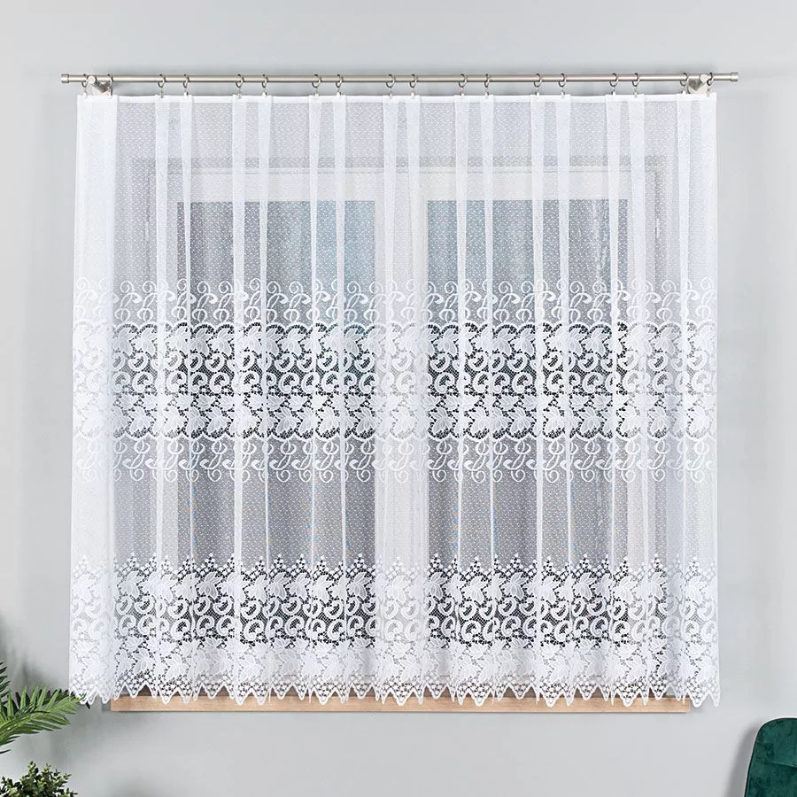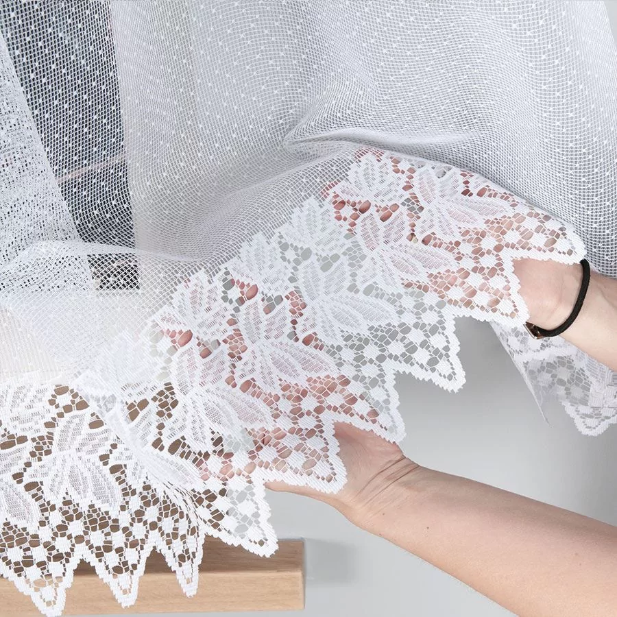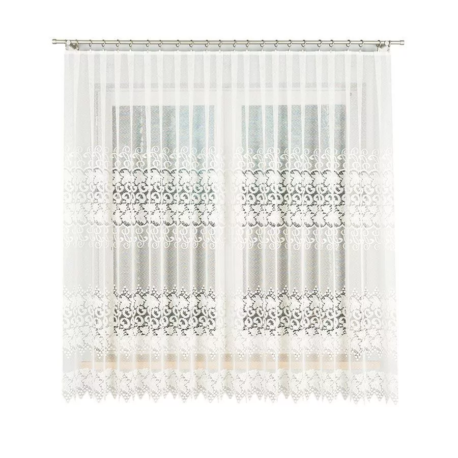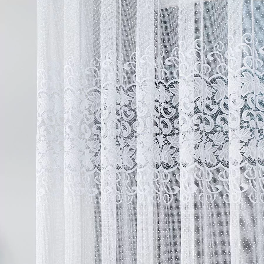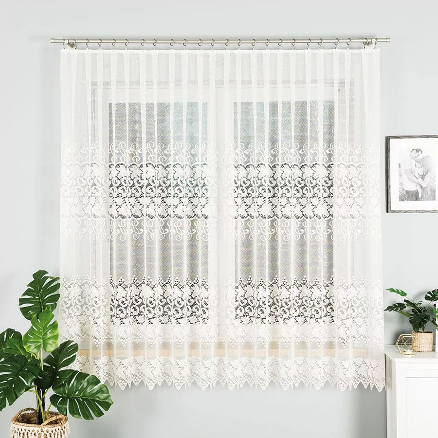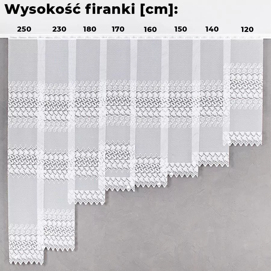 Firanka żakardowa dostępna w metrażu. Wiele wysokości o wyboru, szerokość dowolna, co daje możliwość dopasowania jej dokładnie do swojego okna. Firankę możesz zamówić z usługą szycia w naszej profesjonalnej szwalni - wybierz wykończenie, podaj wymiary, a otrzymasz uszytą i gotową do zawieszenia firankę. Najwyższa jakość przędzy żakardowej idealnie wkomponuje się w aranżację wnętrz nowoczesnych jak i tych urządzonych w klasycznym stylu. Firanka pięknie się układa, nie wymaga prasowania i można ją prać w pralce w niskiej temperaturze. Cechuje ją dobra przepuszczalność powietrza i promieni słonecznych.