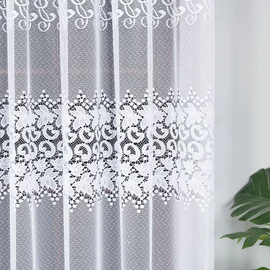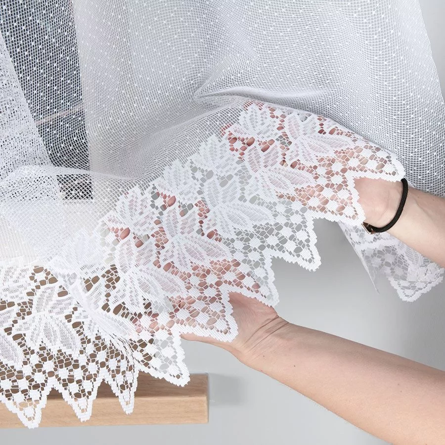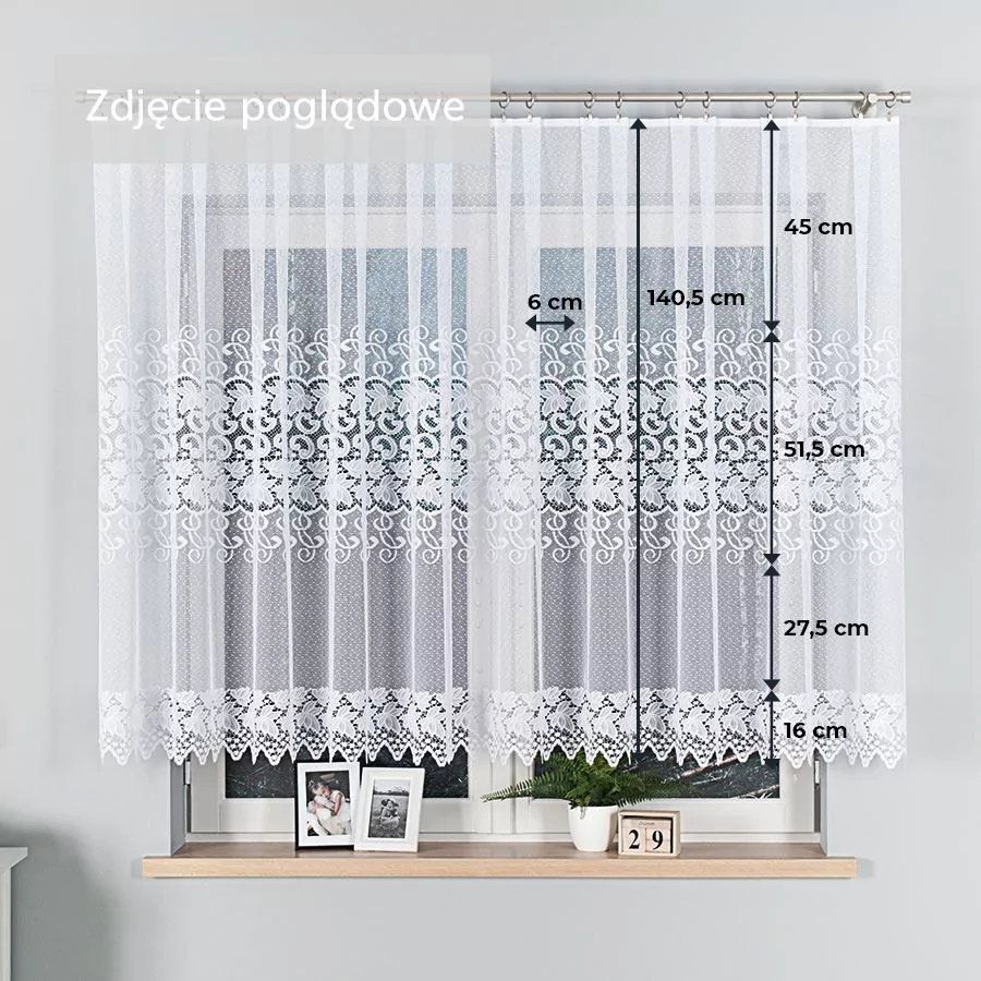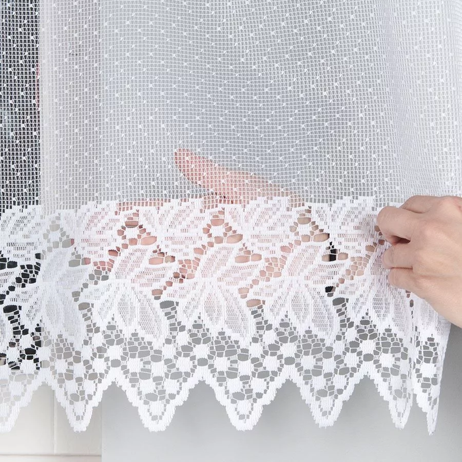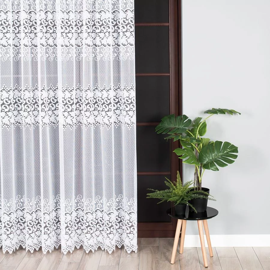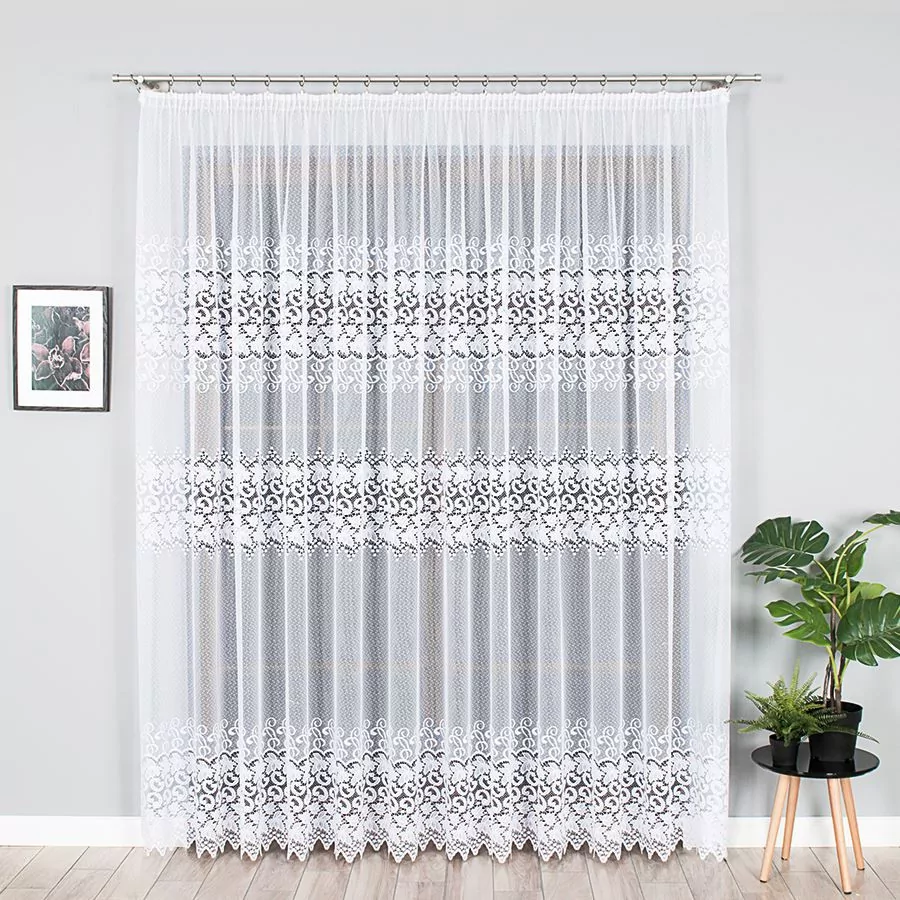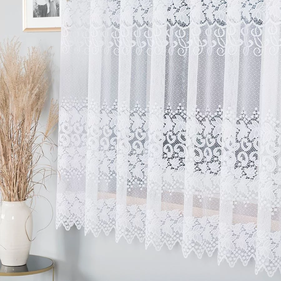 Firanka żakardowa dostępna w metrażu. Wiele wysokości o wyboru, szerokość dowolna, co daje możliwość dopasowania jej dokładnie do swojego okna. Firankę możesz zamówić z usługą szycia w naszej profesjonalnej szwalni - wybierz wykończenie, podaj wymiary, a otrzymasz uszytą i gotową do zawieszenia firankę. Najwyższa jakość przędzy żakardowej idealnie wkomponuje się w aranżację wnętrz nowoczesnych jak i tych urządzonych w klasycznym stylu. Firanka pięknie się układa, nie wymaga prasowania i można ją prać w pralce w niskiej temperaturze. Cechuje ją dobra przepuszczalność powietrza i promieni słonecznych.