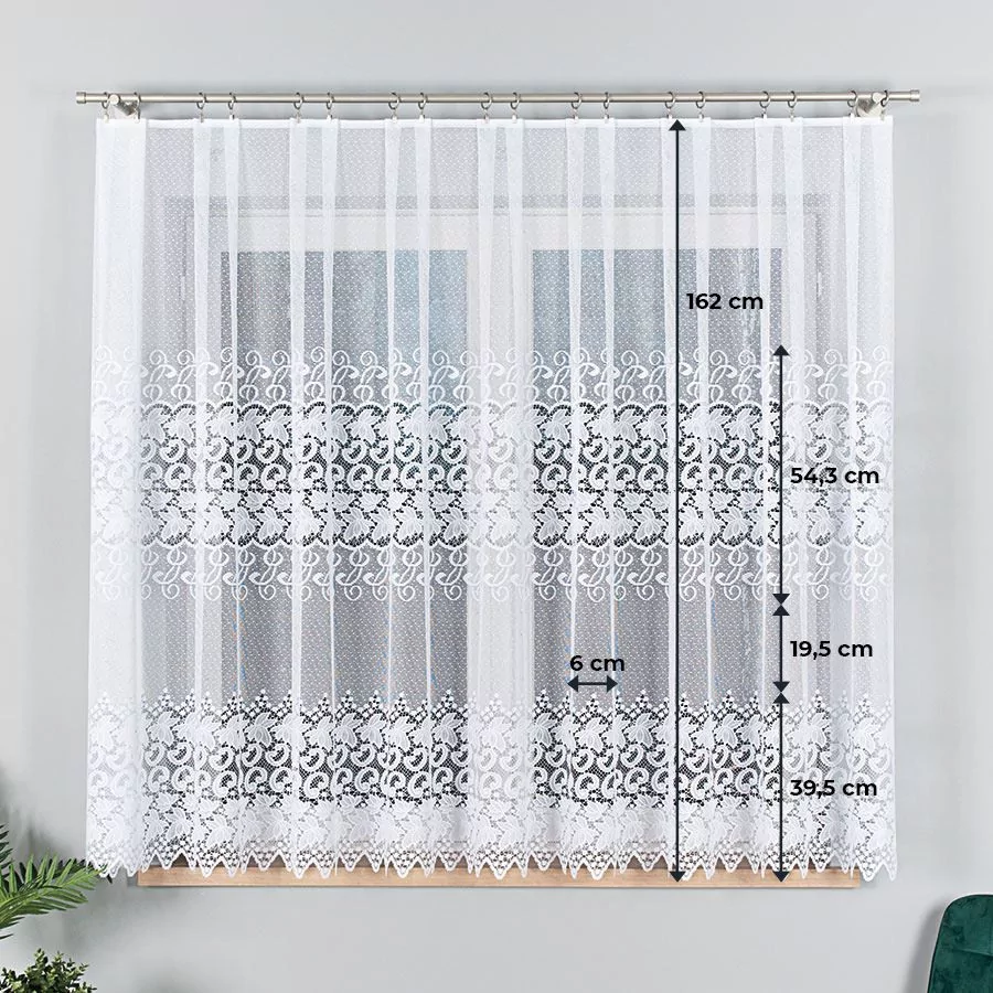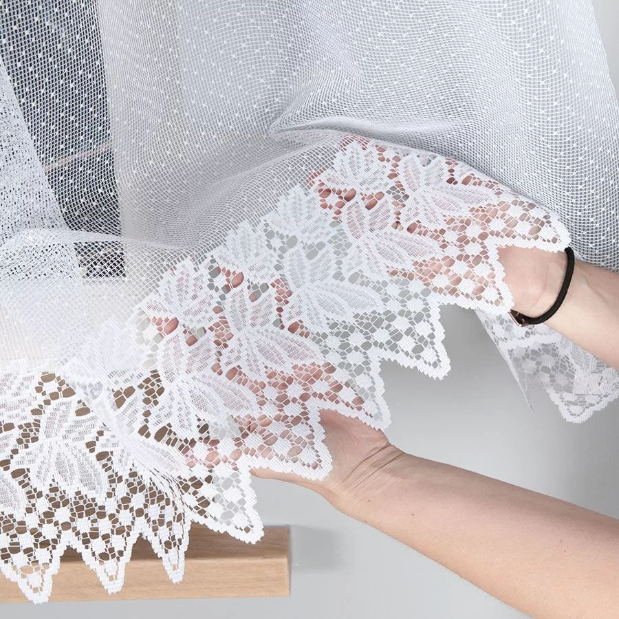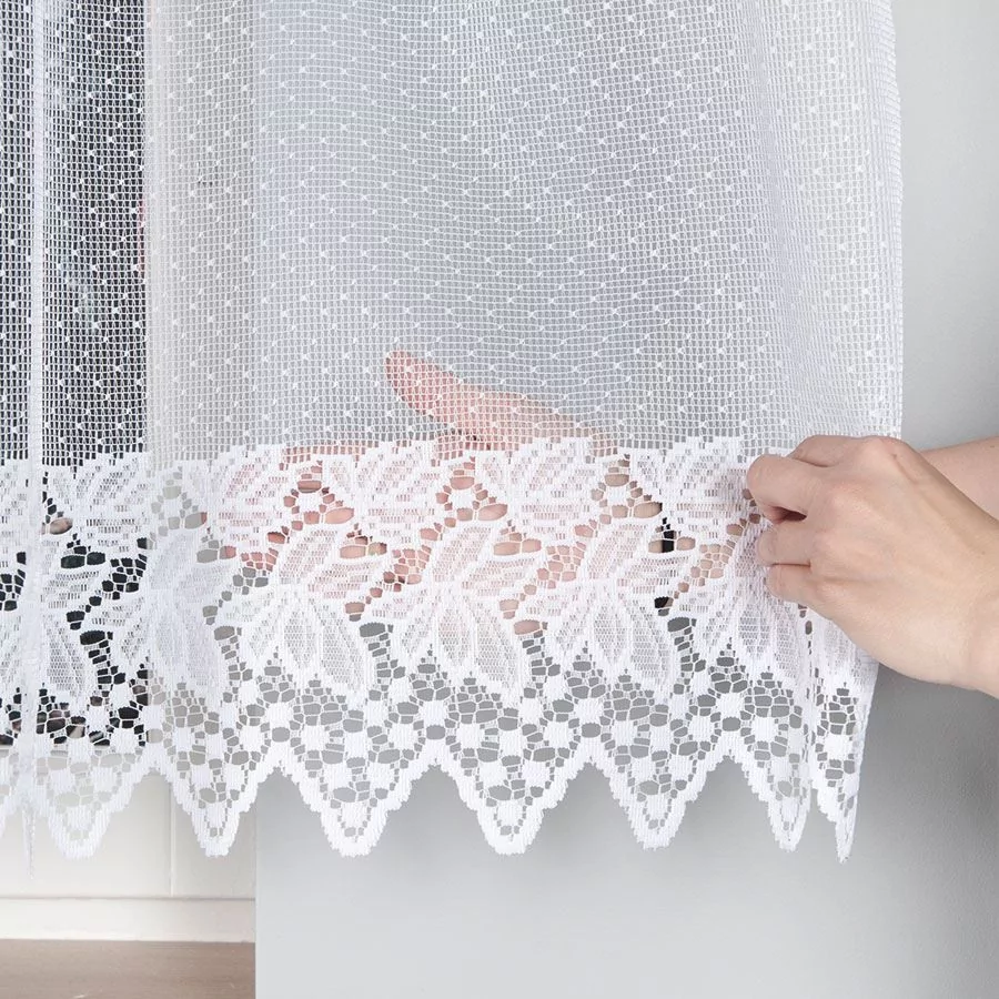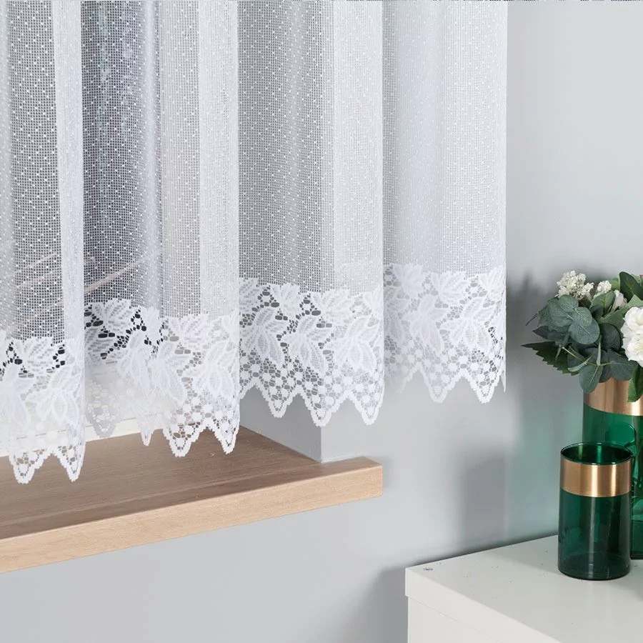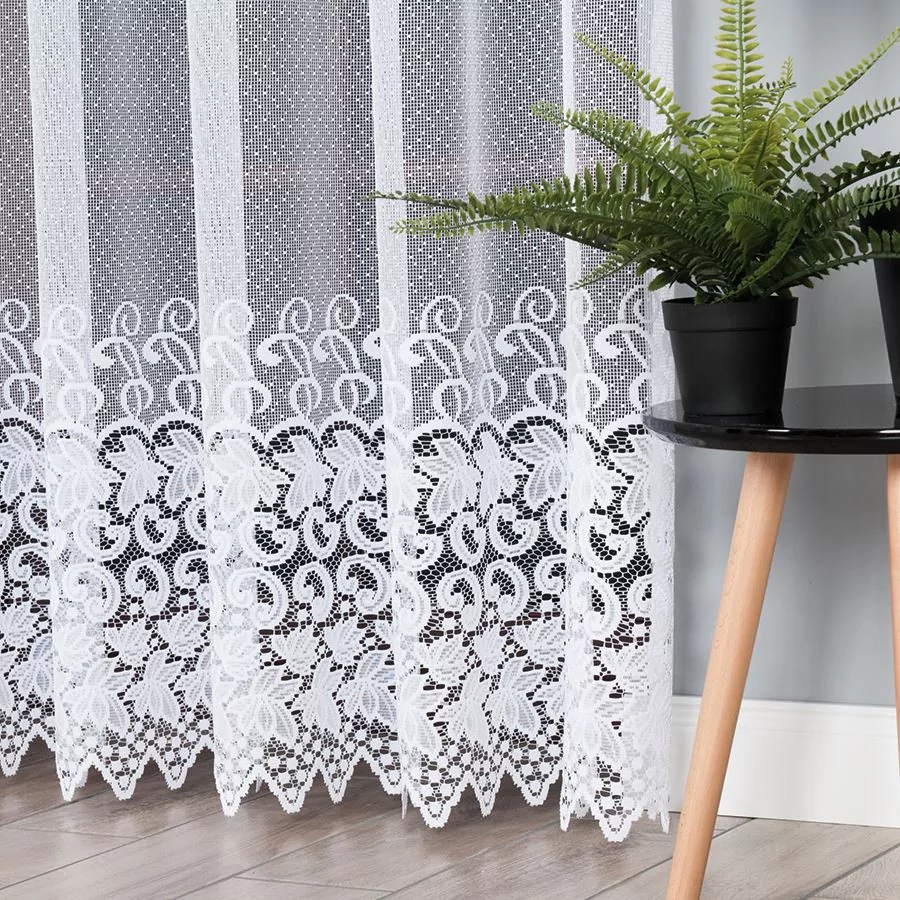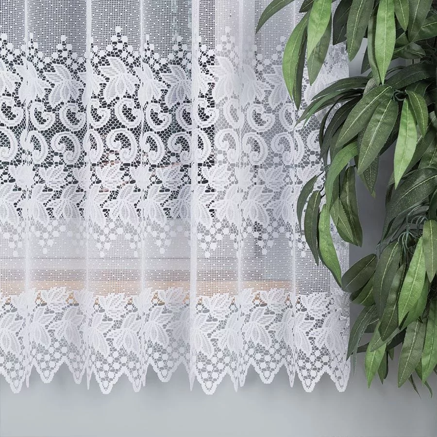 Firanka żakardowa dostępna w metrażu. Wiele wysokości o wyboru, szerokość dowolna, co daje możliwość dopasowania jej dokładnie do swojego okna. Firankę możesz zamówić z usługą szycia w naszej profesjonalnej szwalni - wybierz wykończenie, podaj wymiary, a otrzymasz uszytą i gotową do zawieszenia firankę. Najwyższa jakość przędzy żakardowej idealnie wkomponuje się w aranżację wnętrz nowoczesnych jak i tych urządzonych w klasycznym stylu. Firanka pięknie się układa, nie wymaga prasowania i można ją prać w pralce w niskiej temperaturze. Cechuje ją dobra przepuszczalność powietrza i promieni słonecznych.
