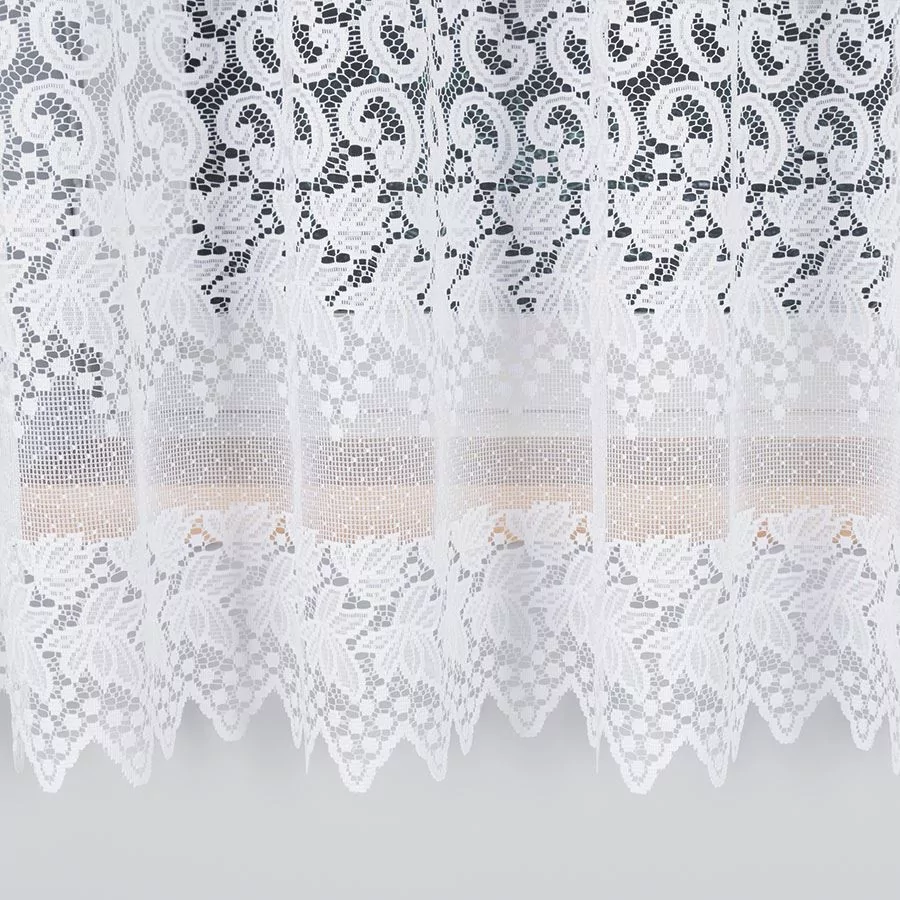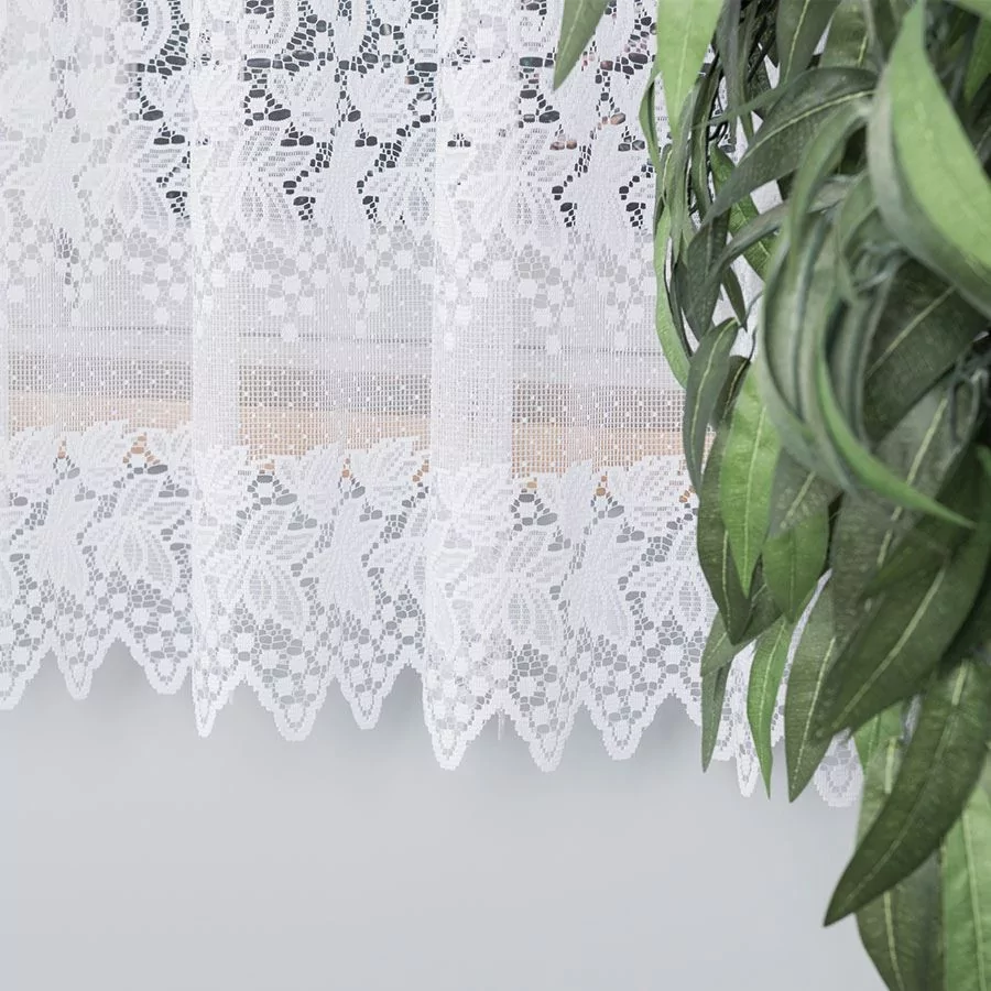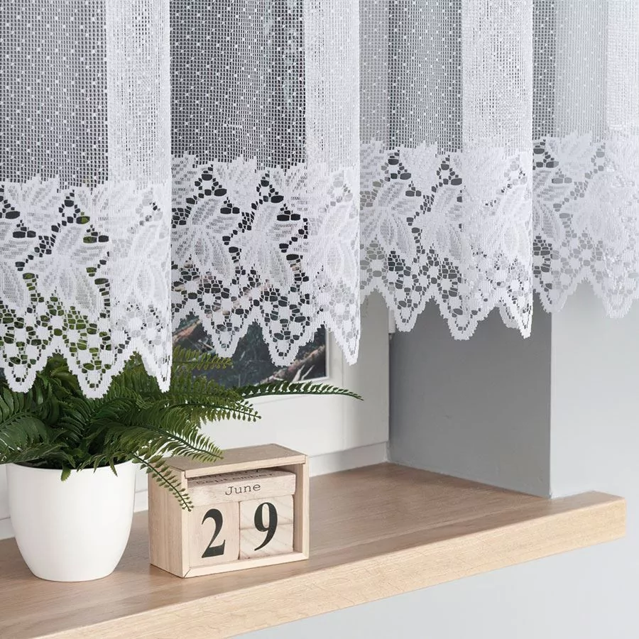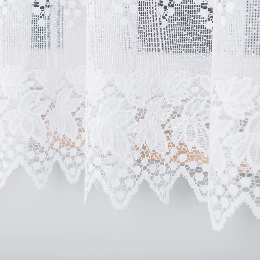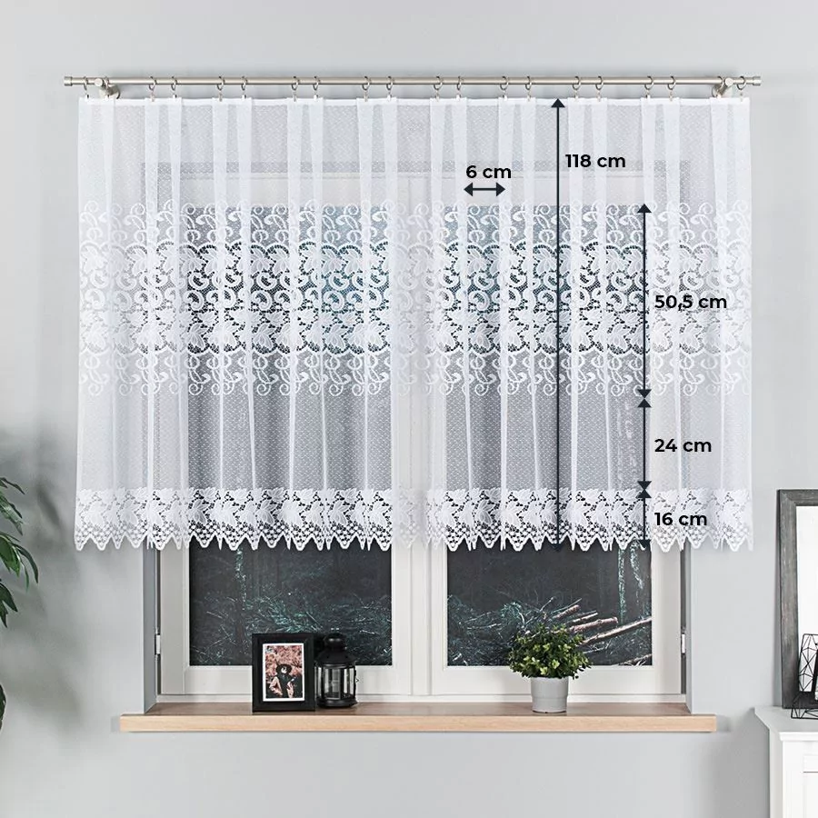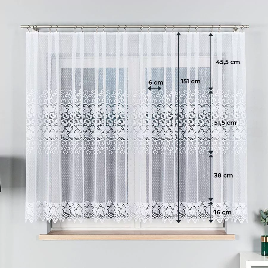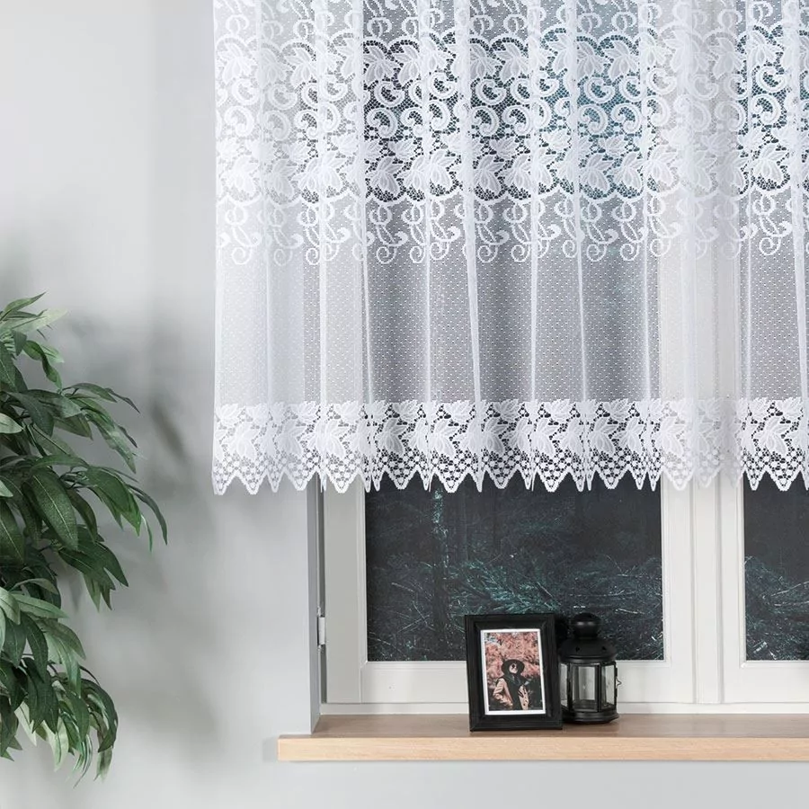 Firanka żakardowa dostępna w metrażu. Wiele wysokości o wyboru, szerokość dowolna, co daje możliwość dopasowania jej dokładnie do swojego okna. Firankę możesz zamówić z usługą szycia w naszej profesjonalnej szwalni - wybierz wykończenie, podaj wymiary, a otrzymasz uszytą i gotową do zawieszenia firankę. Najwyższa jakość przędzy żakardowej idealnie wkomponuje się w aranżację wnętrz nowoczesnych jak i tych urządzonych w klasycznym stylu. Firanka pięknie się układa, nie wymaga prasowania i można ją prać w pralce w niskiej temperaturze. Cechuje ją dobra przepuszczalność powietrza i promieni słonecznych.