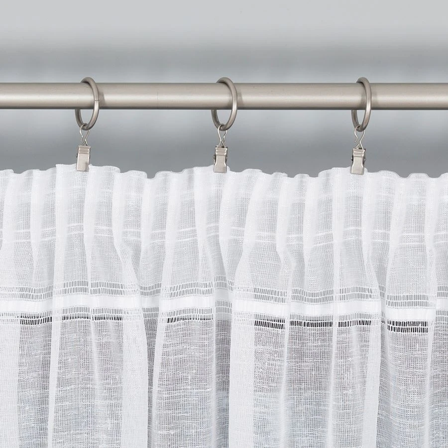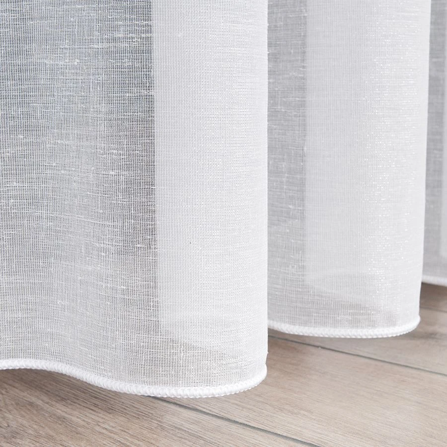 Pięknie układająca się firanka metrażowa zdobiona poziomymi pasami. Umiarkowanie przepuszcza powietrze i promienie słoneczne. Idealna propozycja na zwieńczenie procesów aranżacyjnych w pokojach dziennych i salonach. Zagęszczony splot fantazyjnej dzianiny błyszczącej ozdobiony jest poziomymi pasami. Tak prosty i minimalistyczny wzór doda subtelności i przytulności wnętrzom. Firankę możesz zamówić z usługą szycia w naszej profesjonalnej szwalni - wybierz wykończenie, podaj wymiary, a otrzymasz uszytą i gotową do zawieszenia firankę.